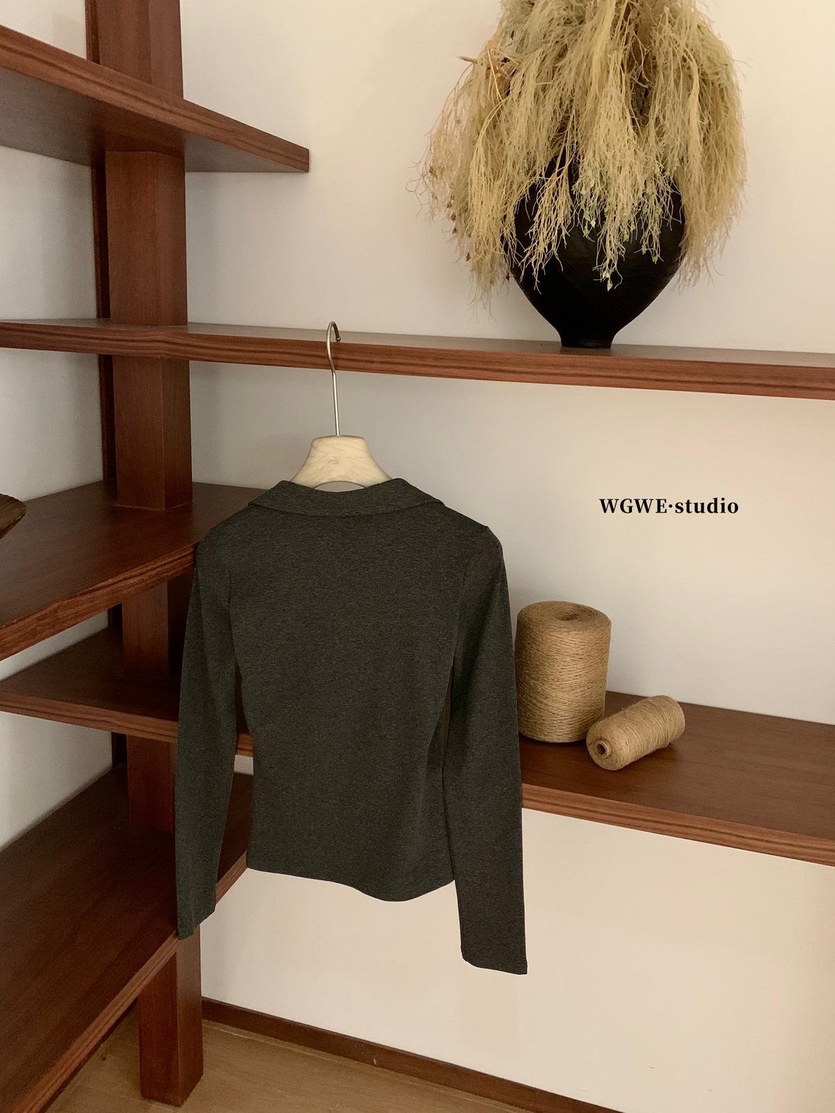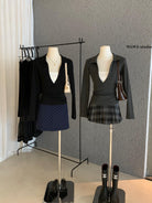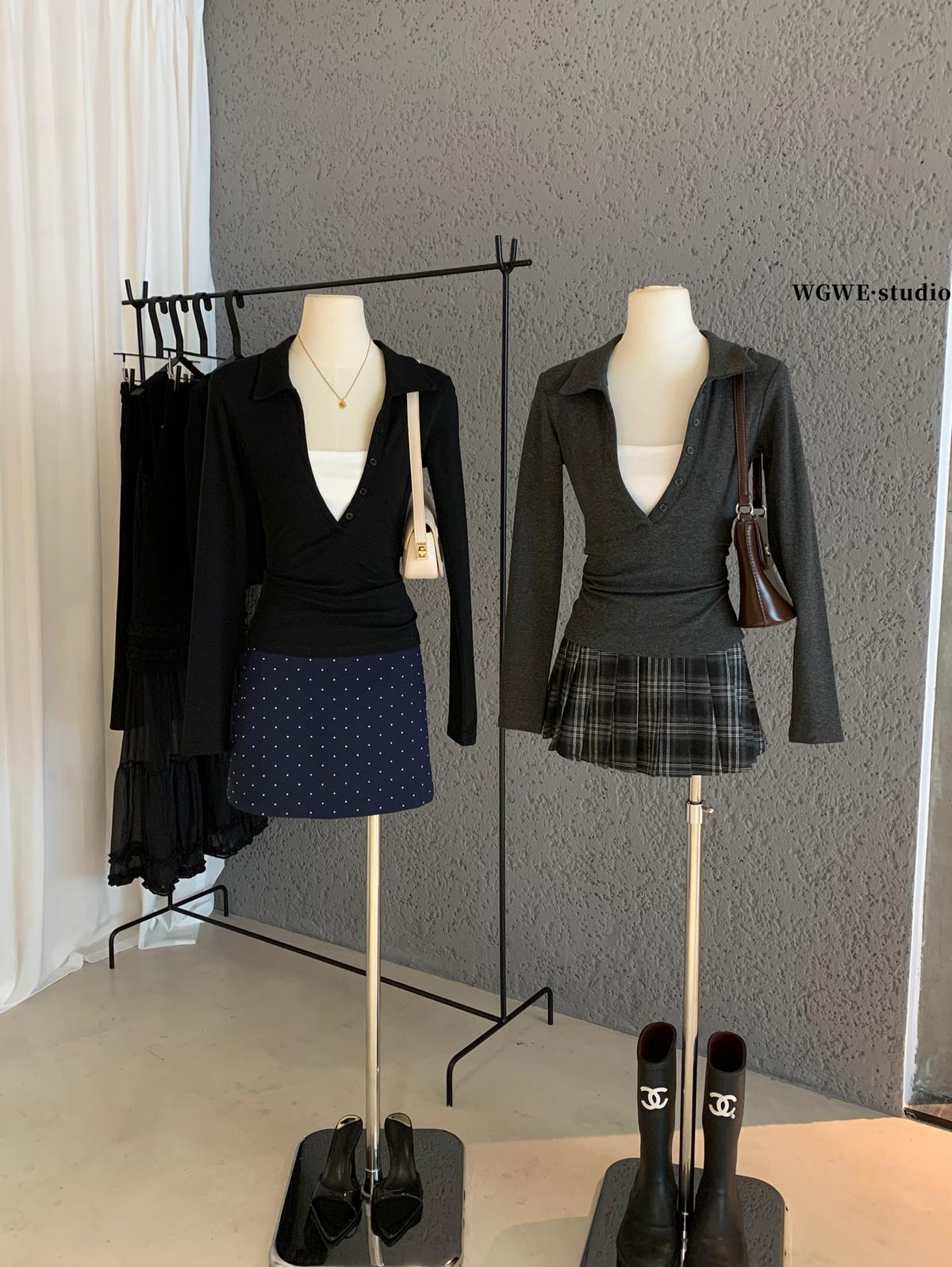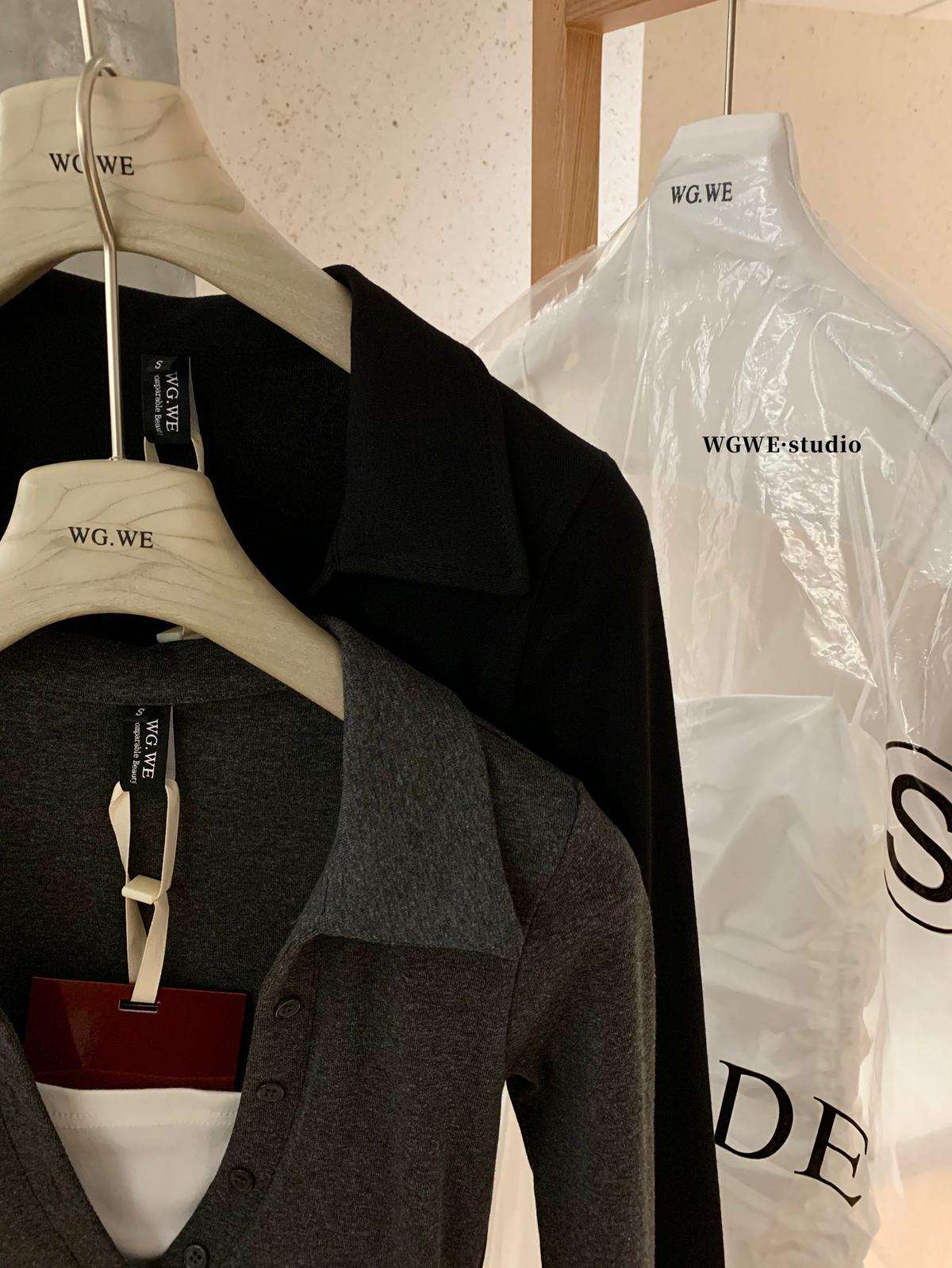 【C7573】假兩件撞色V領內搭針織打底衫小衫