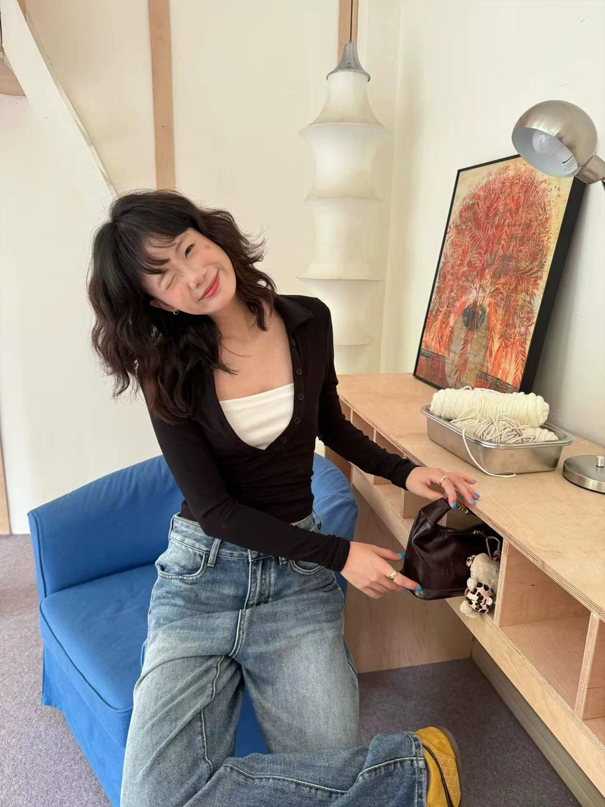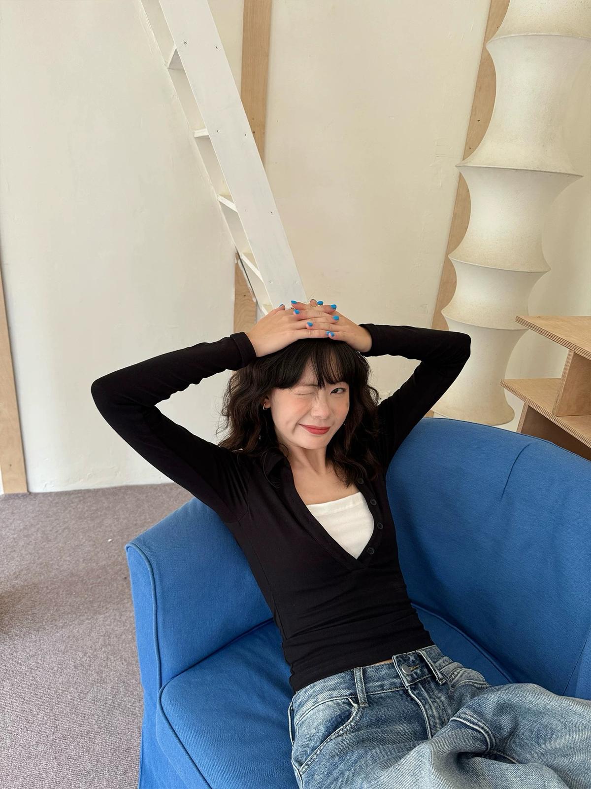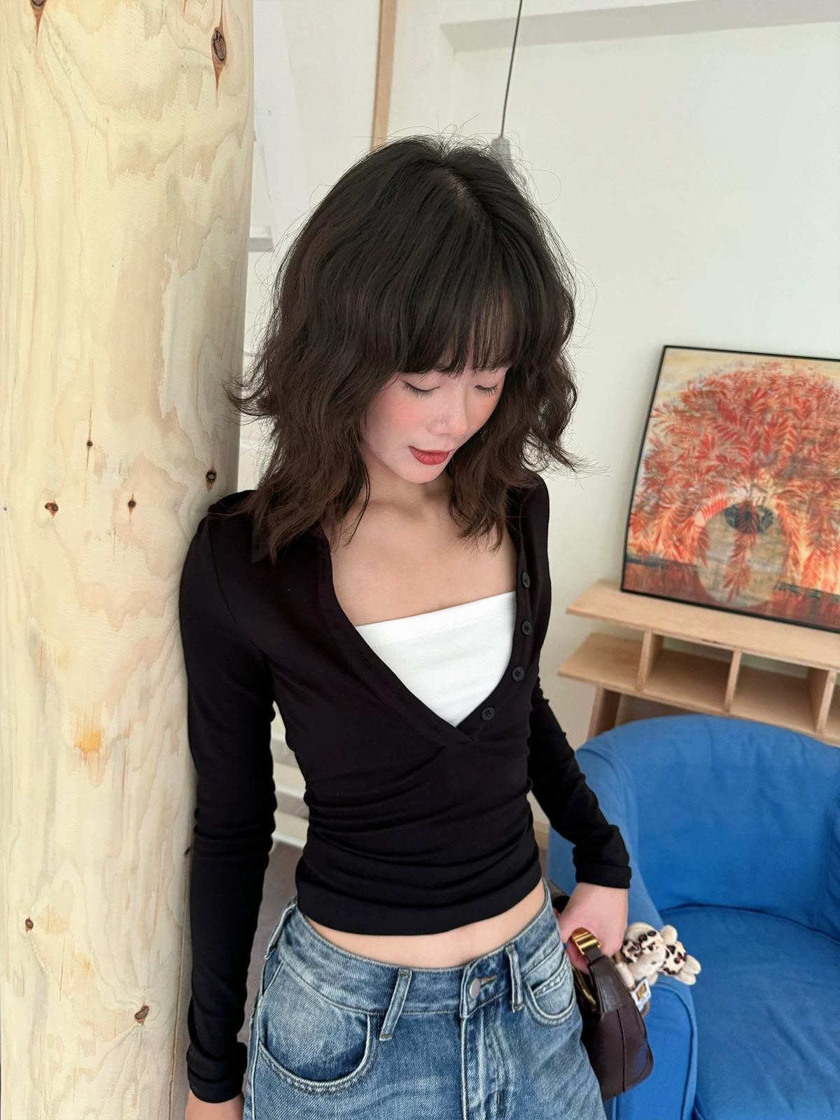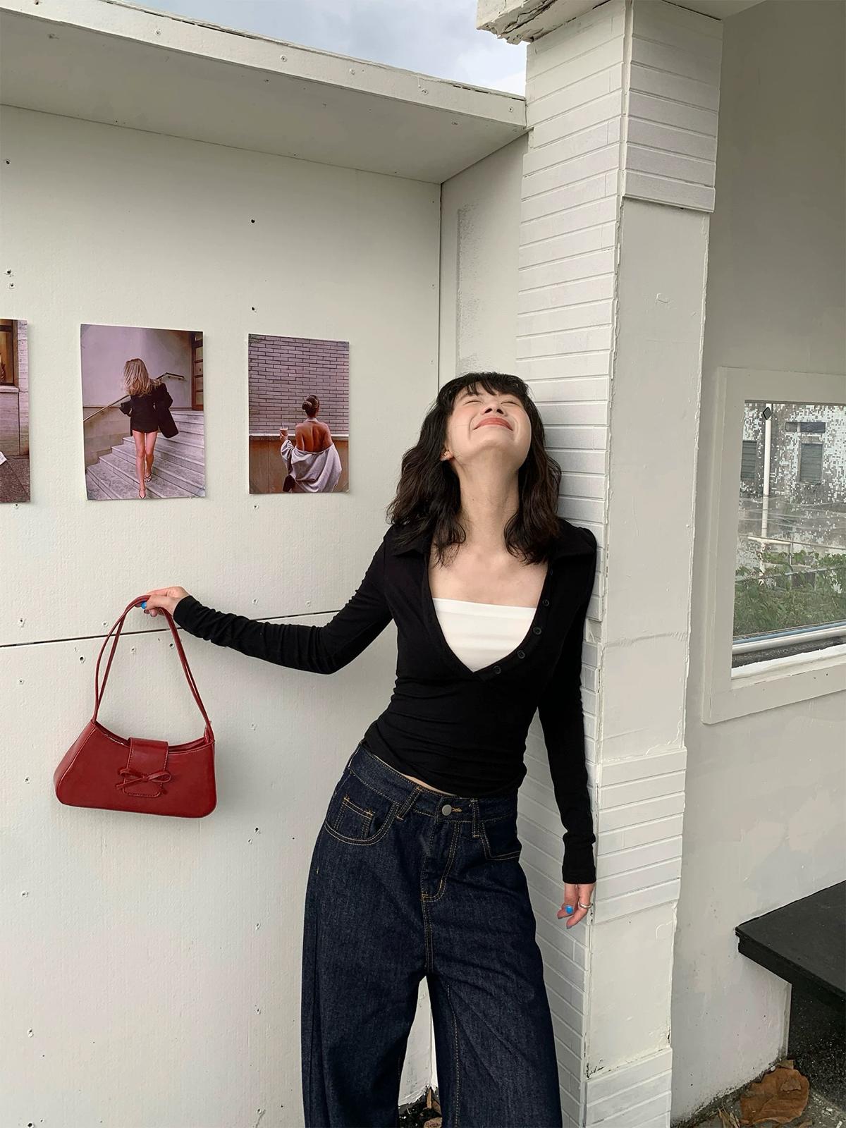 【C7573】假兩件撞色V領內搭針織打底衫小衫
