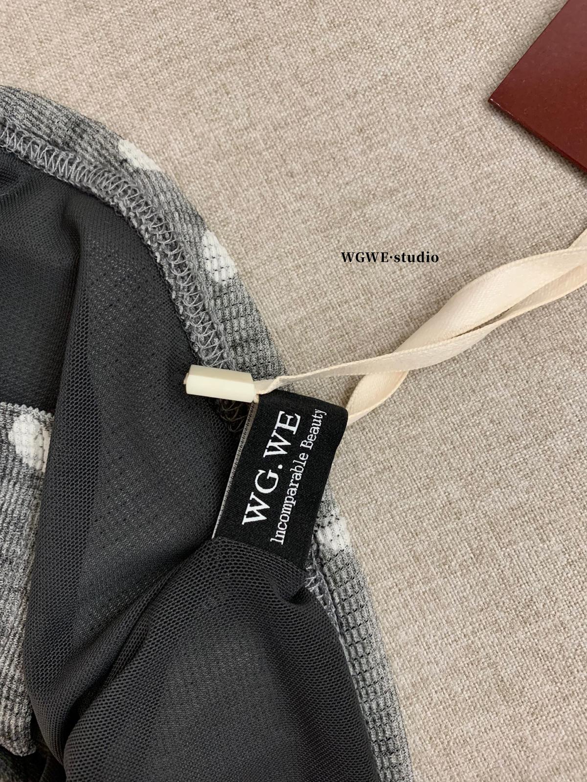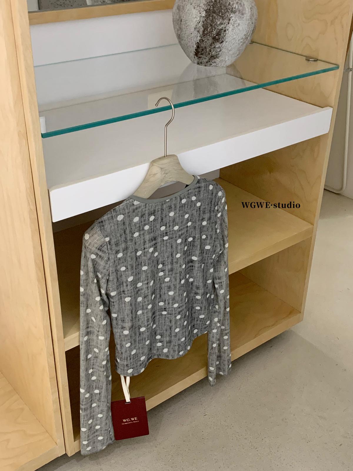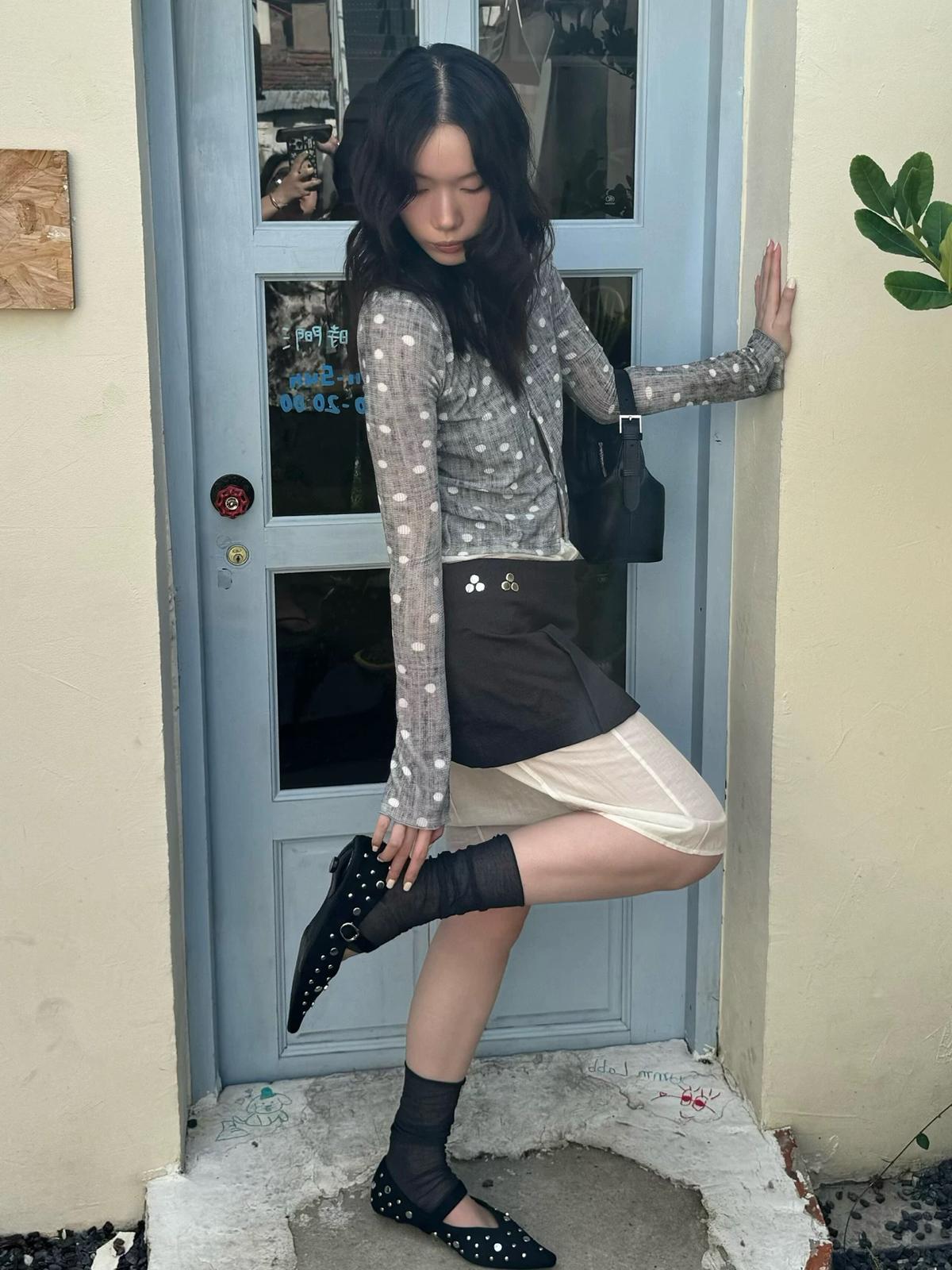 3. 【C7582】復古辣妹設計感短款露臍波點印花長袖修身收腰小衫