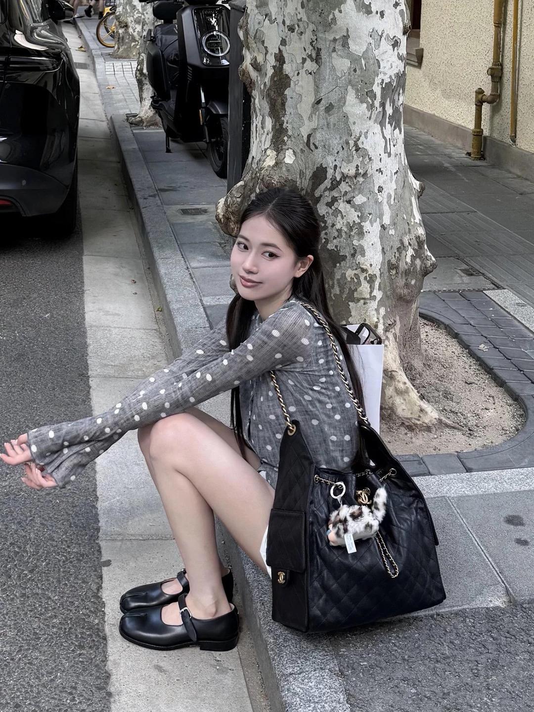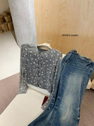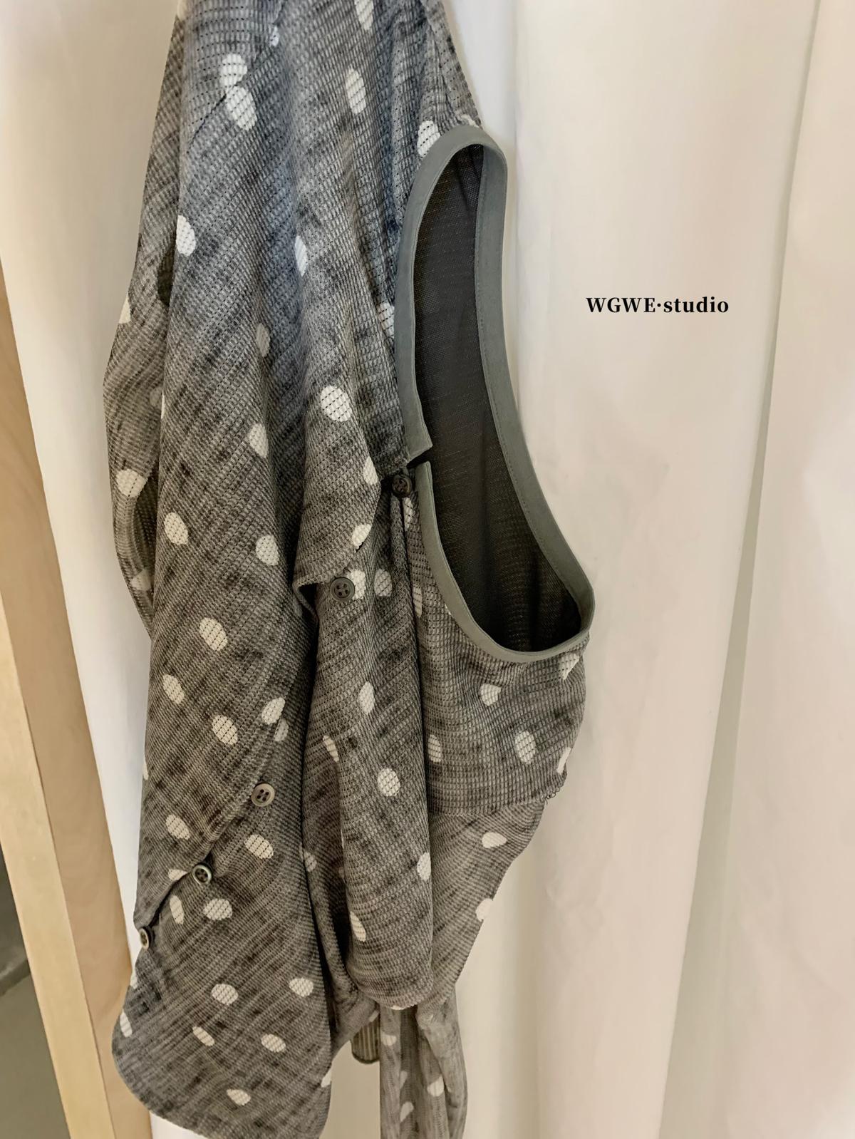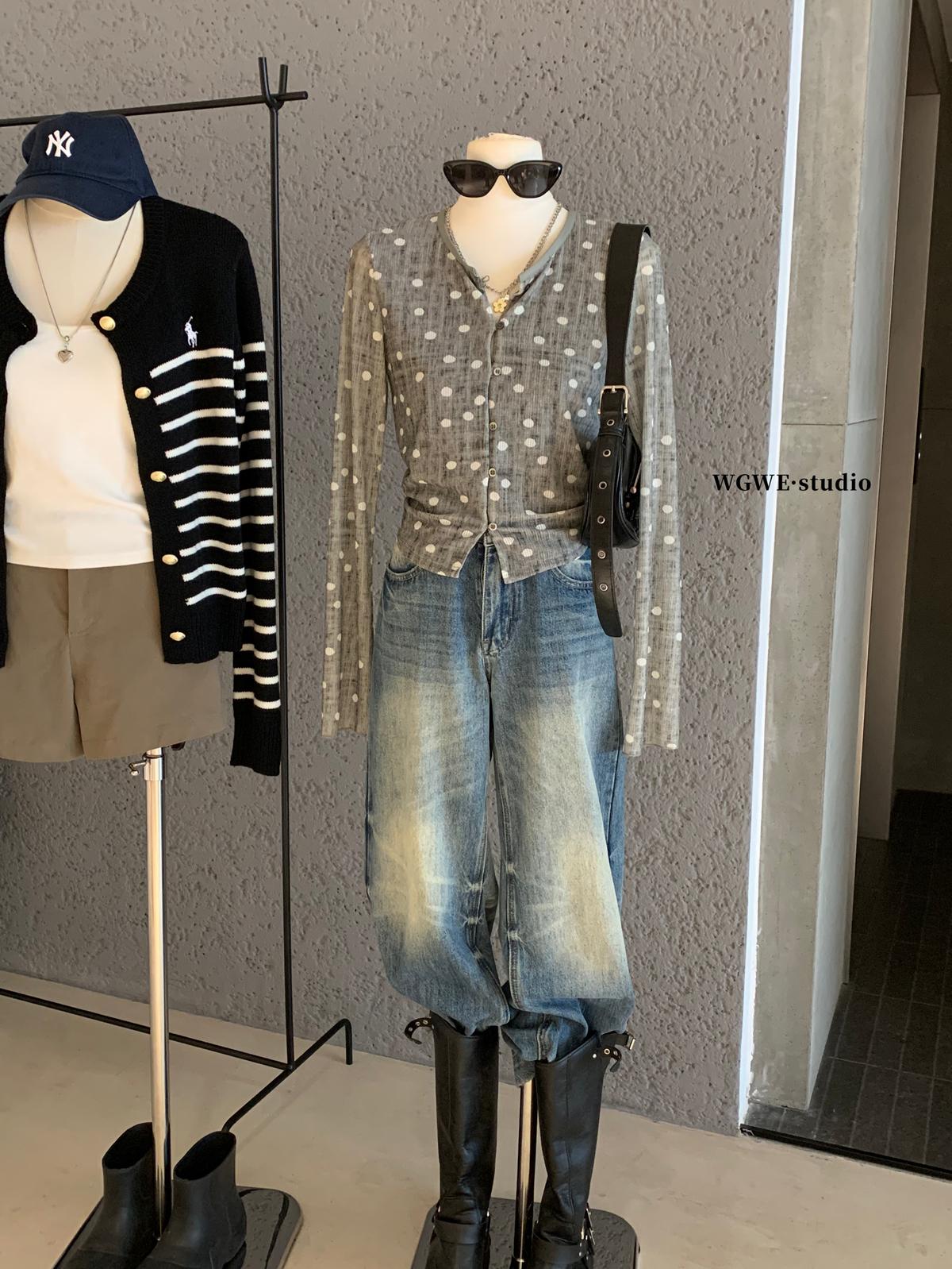 【C7582】復古辣妹設計感短款露臍波點印花長袖修身收腰小衫