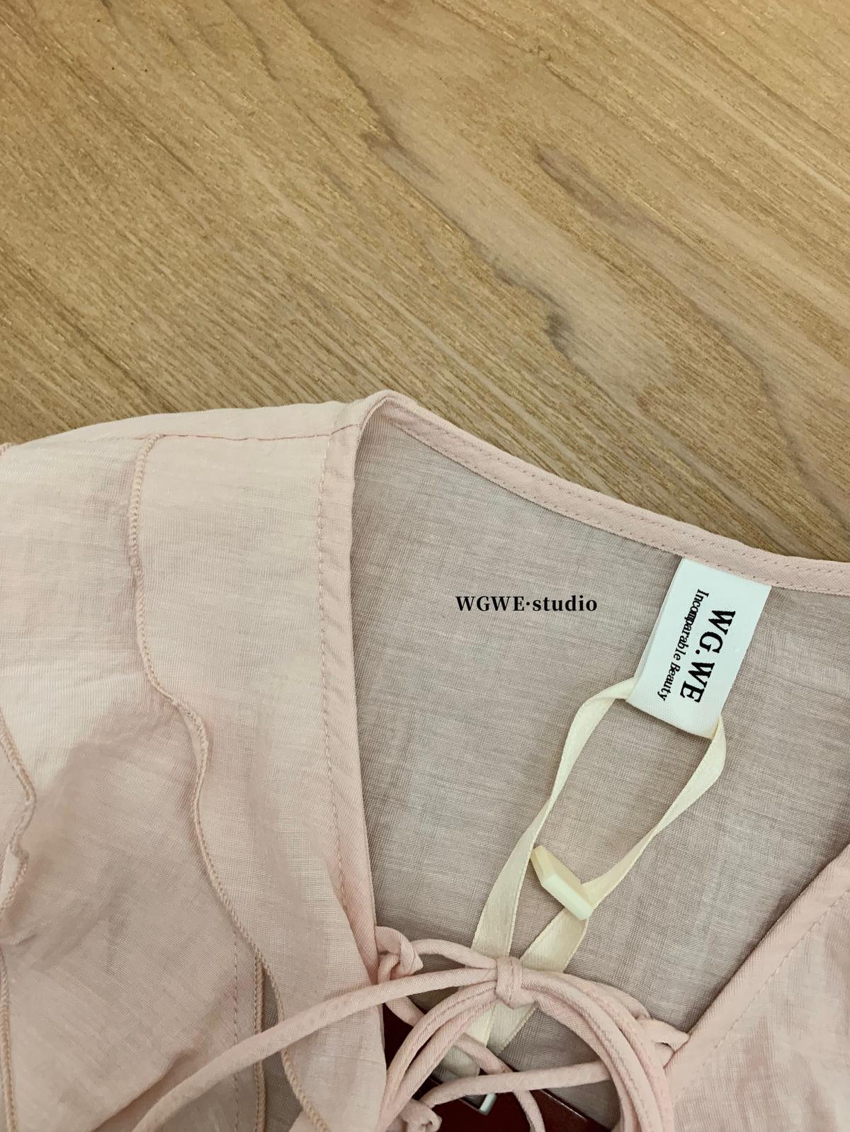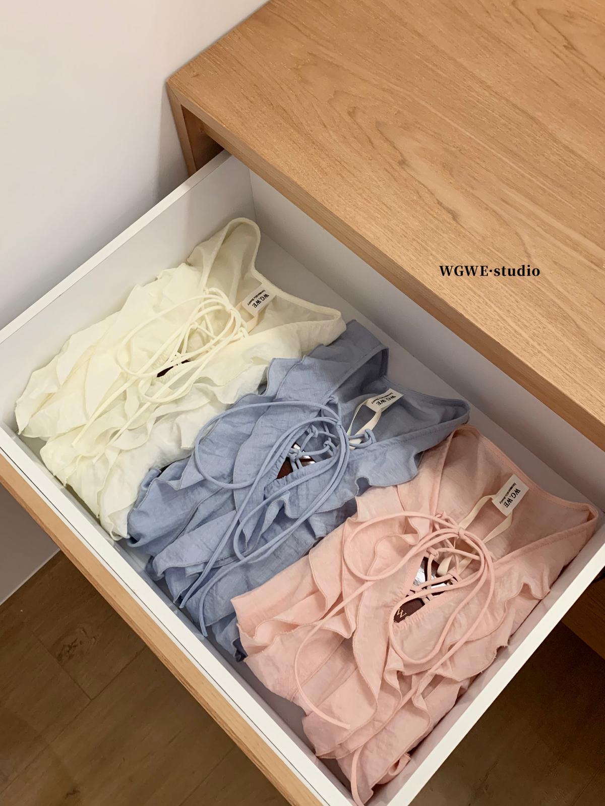 3. 【C7584】氛圍感荷葉邊襯衣上衣法式高級感長袖V領襯衫