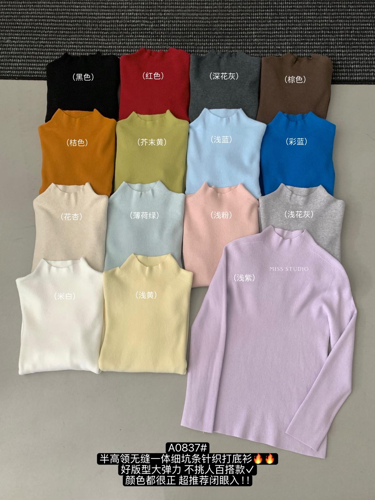3. 【C7595】無縫一體軟糯彈力厚實保暖針織打底衫