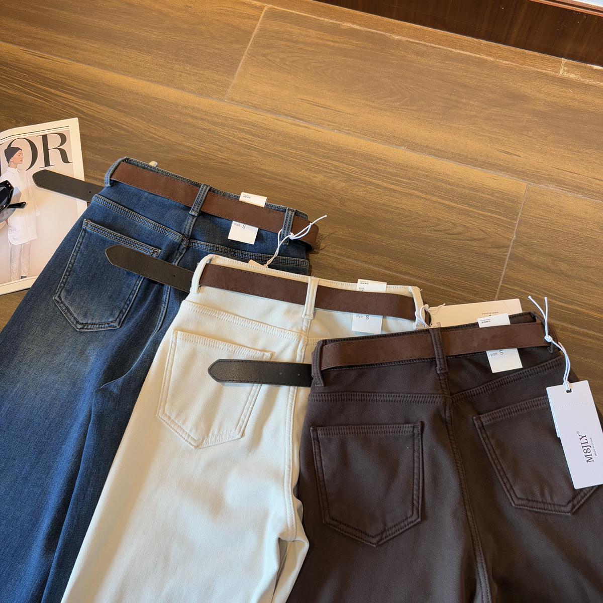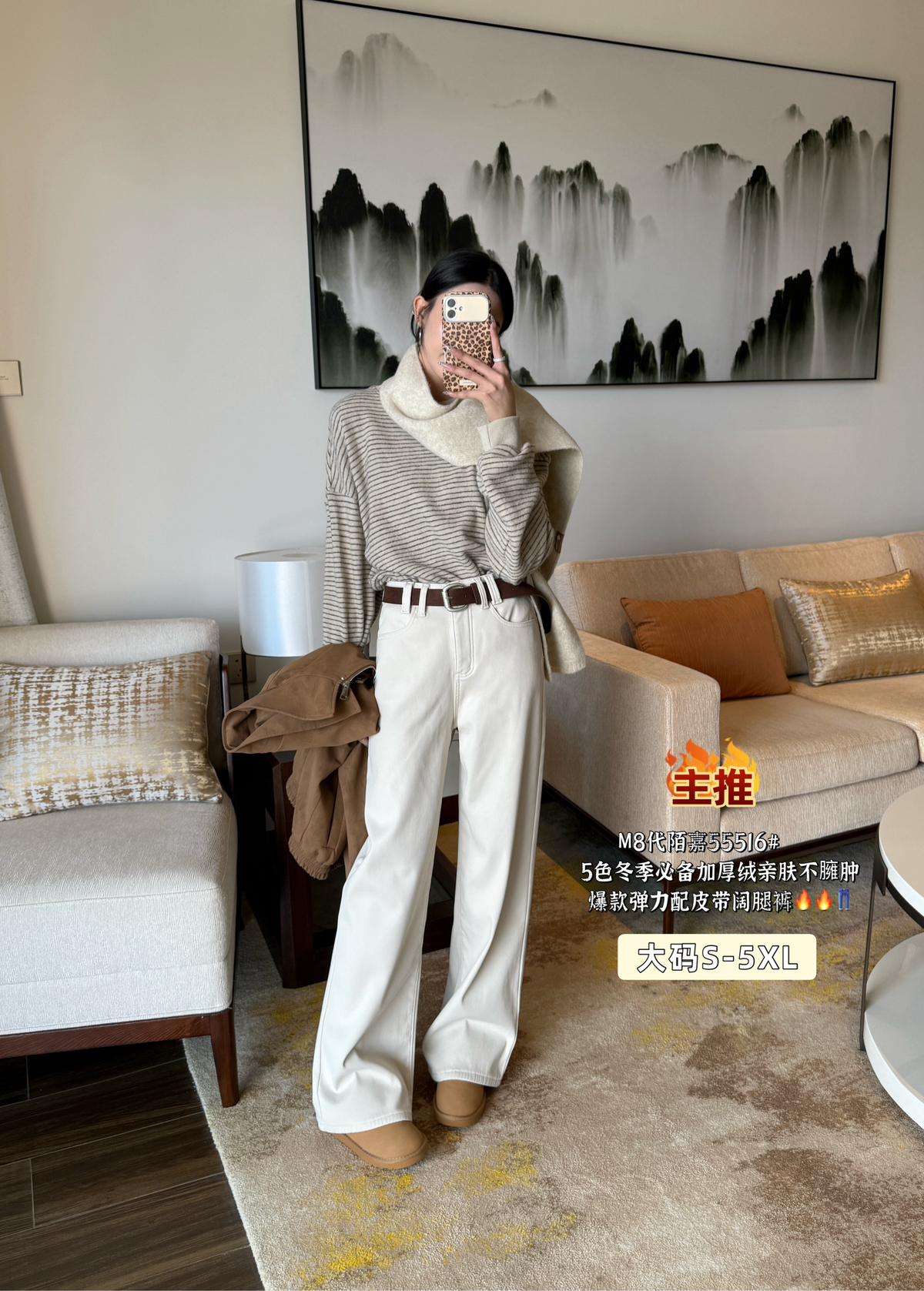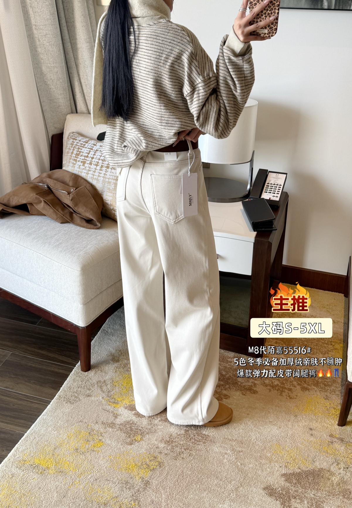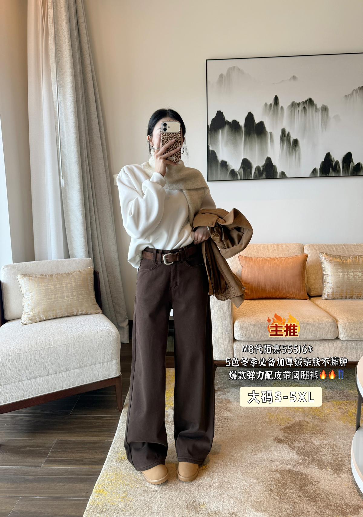 【C7614】冬季加厚保暖複合密密絨大碼簡約百搭五色彈力闊腿拖地褲牛仔褲(配腰帶)(大碼可穿200斤)