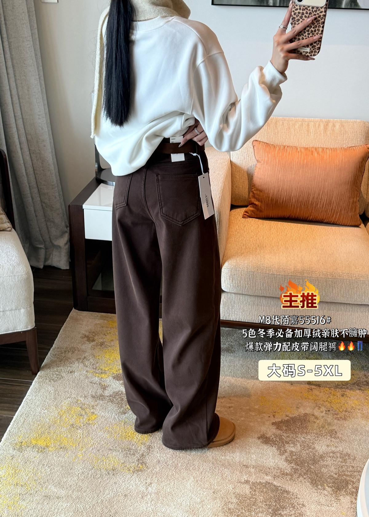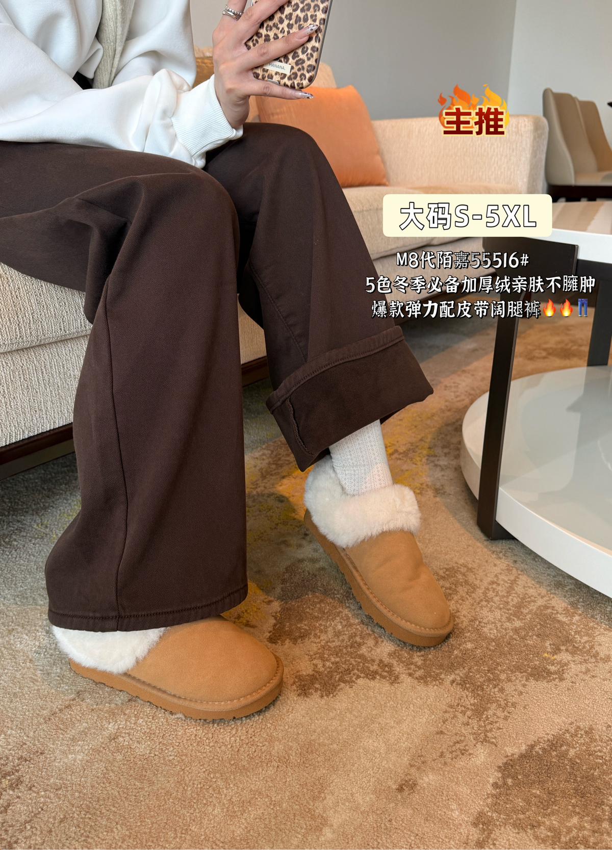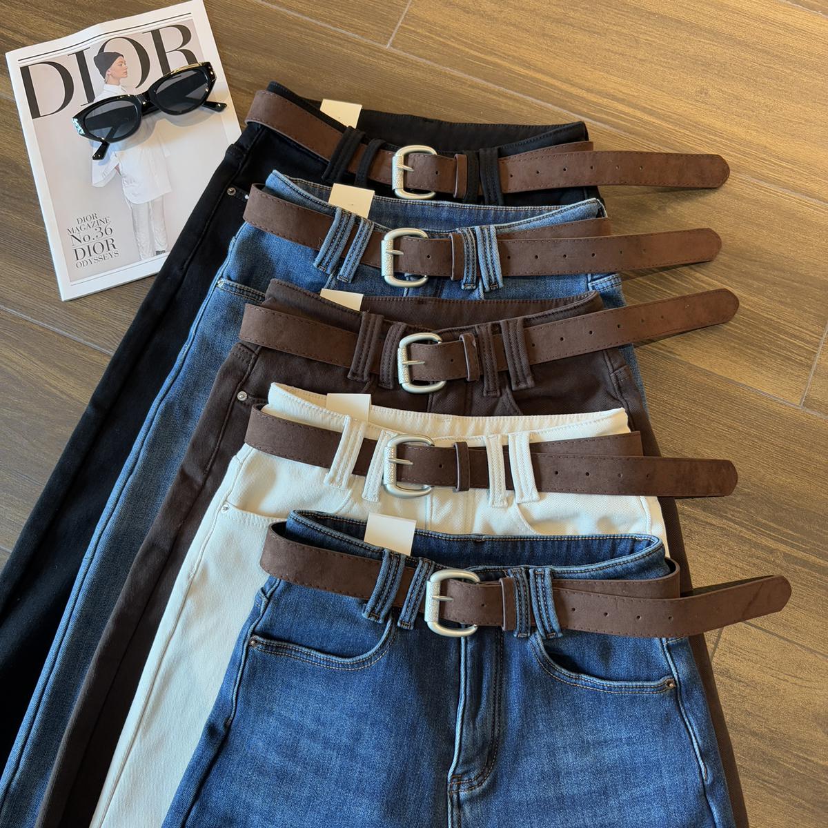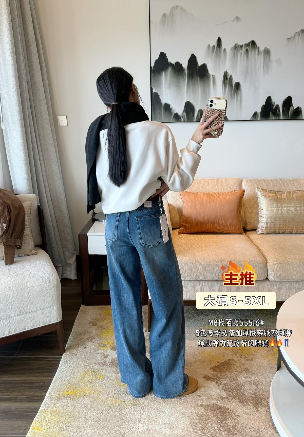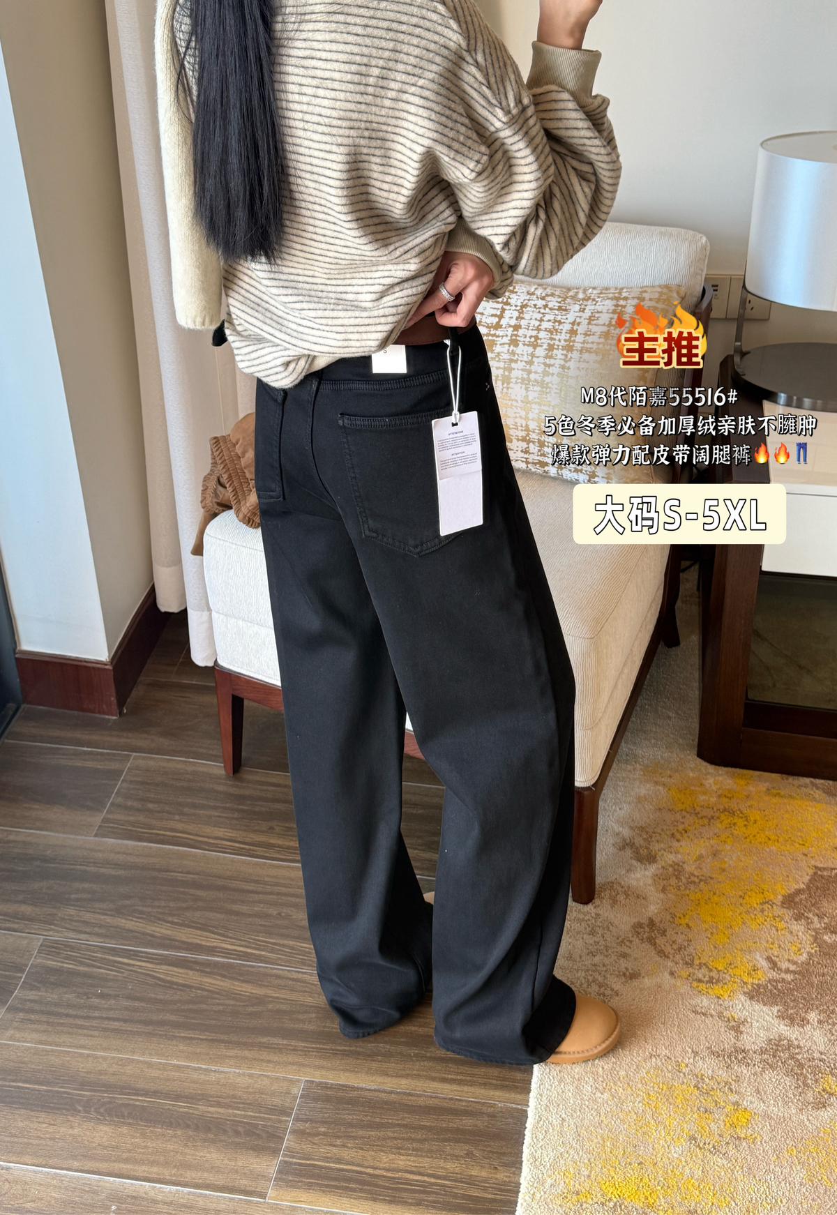 【C7614】冬季加厚保暖複合密密絨大碼簡約百搭五色彈力闊腿拖地褲牛仔褲(配腰帶)(大碼可穿200斤)