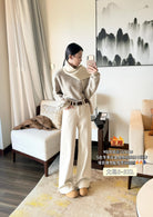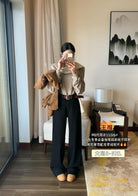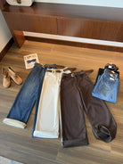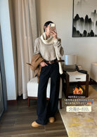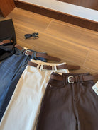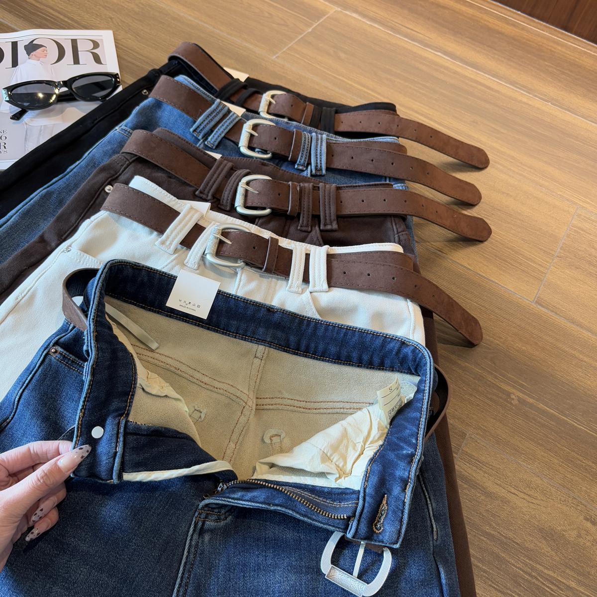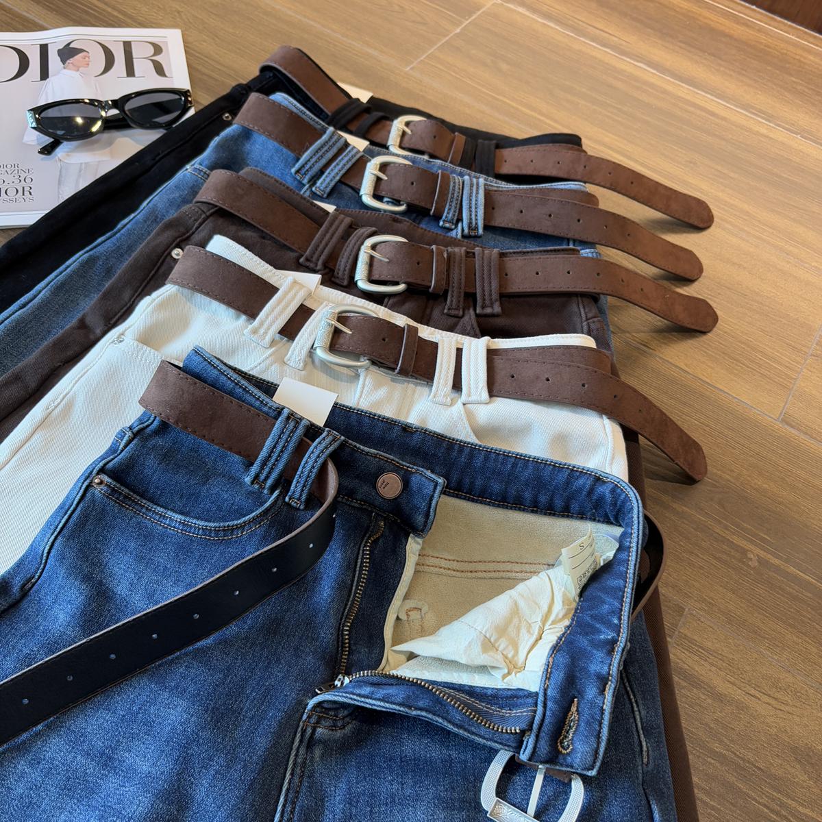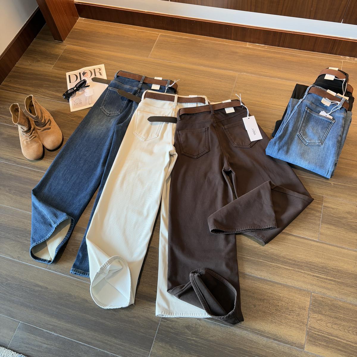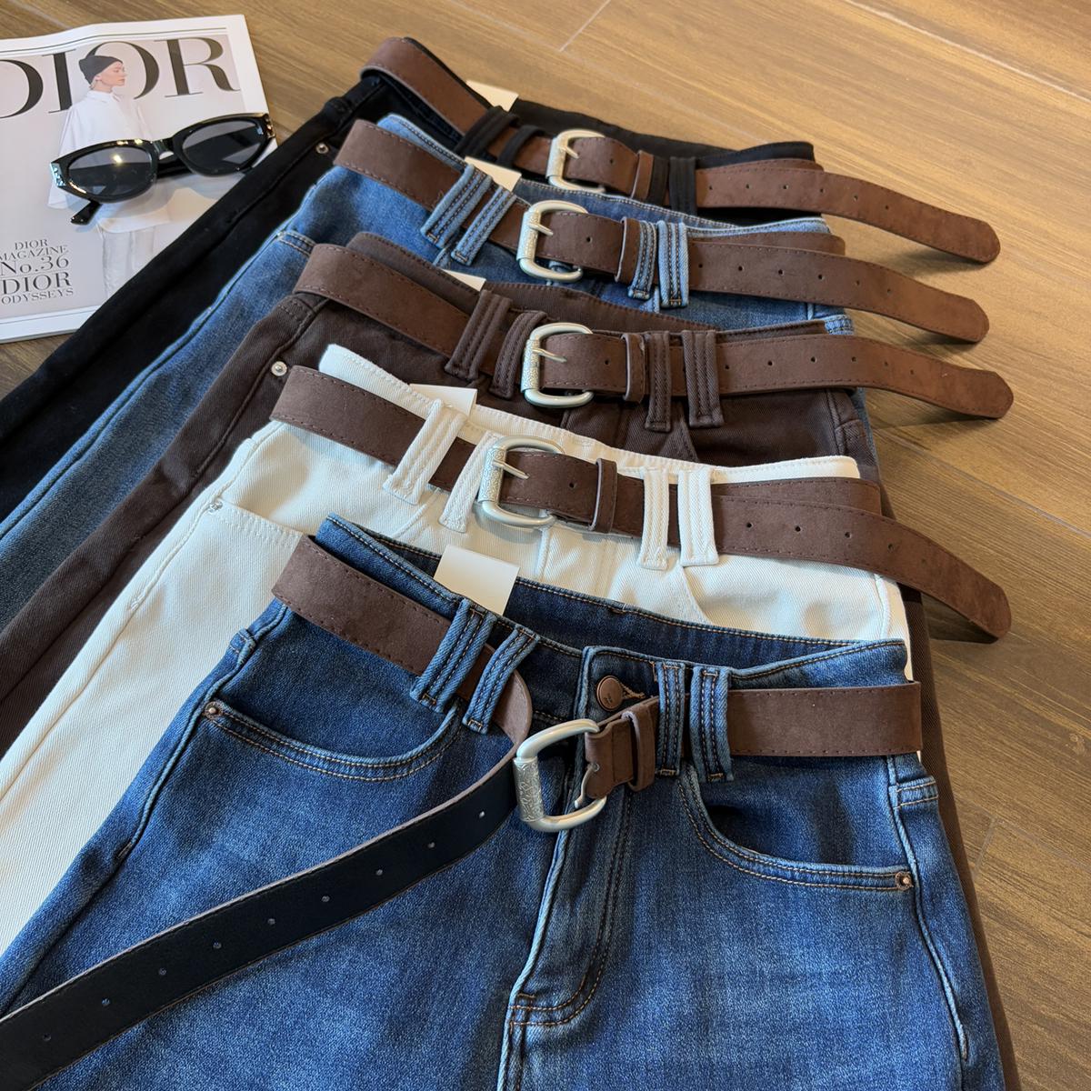 【C7614】冬季加厚保暖複合密密絨大碼簡約百搭五色彈力闊腿拖地褲牛仔褲(配腰帶)(大碼可穿200斤)