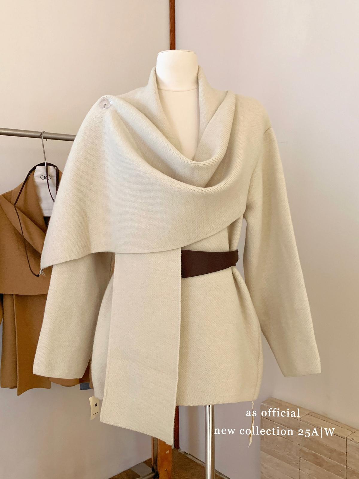 3. 【C7617】經濟上行的美 深秋至簡輕奢感” 腰帶款披肩圍巾領開衫短外套(配腰帶)(回頭率%)