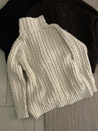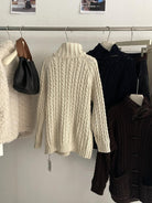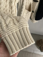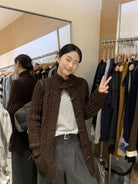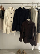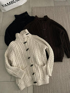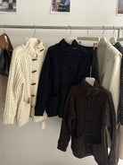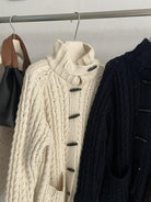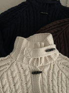 【C7623】復古老錢風絞花牛角扣加厚中長款保暖毛衣