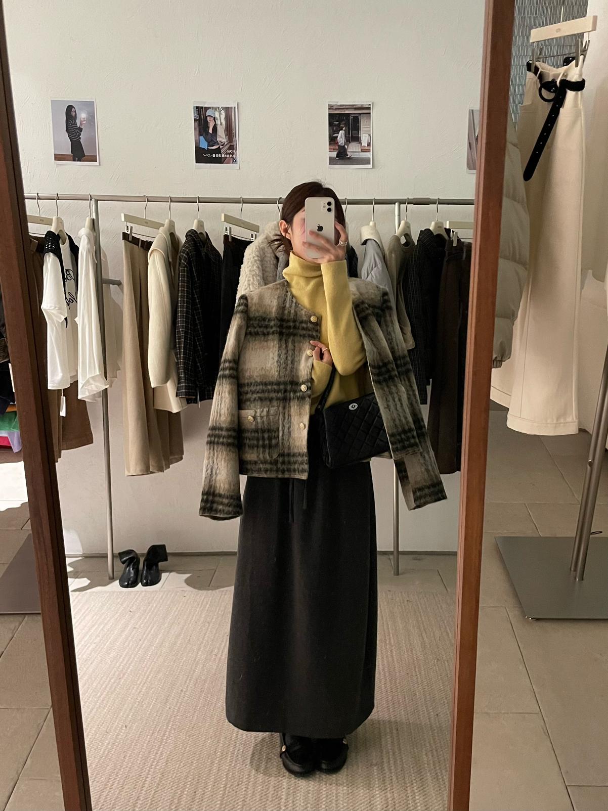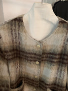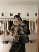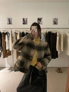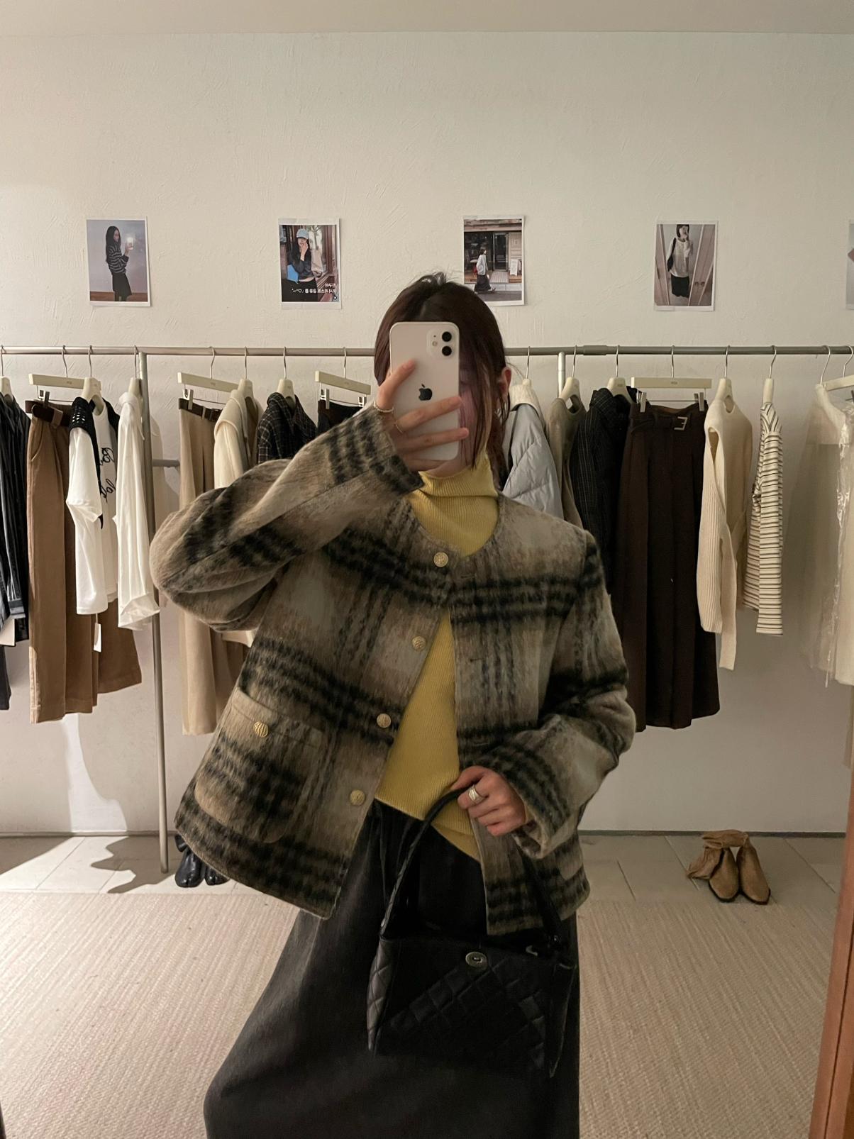 【C7624】復古氣質格紋毛呢夾棉加厚小香風圓領短外套