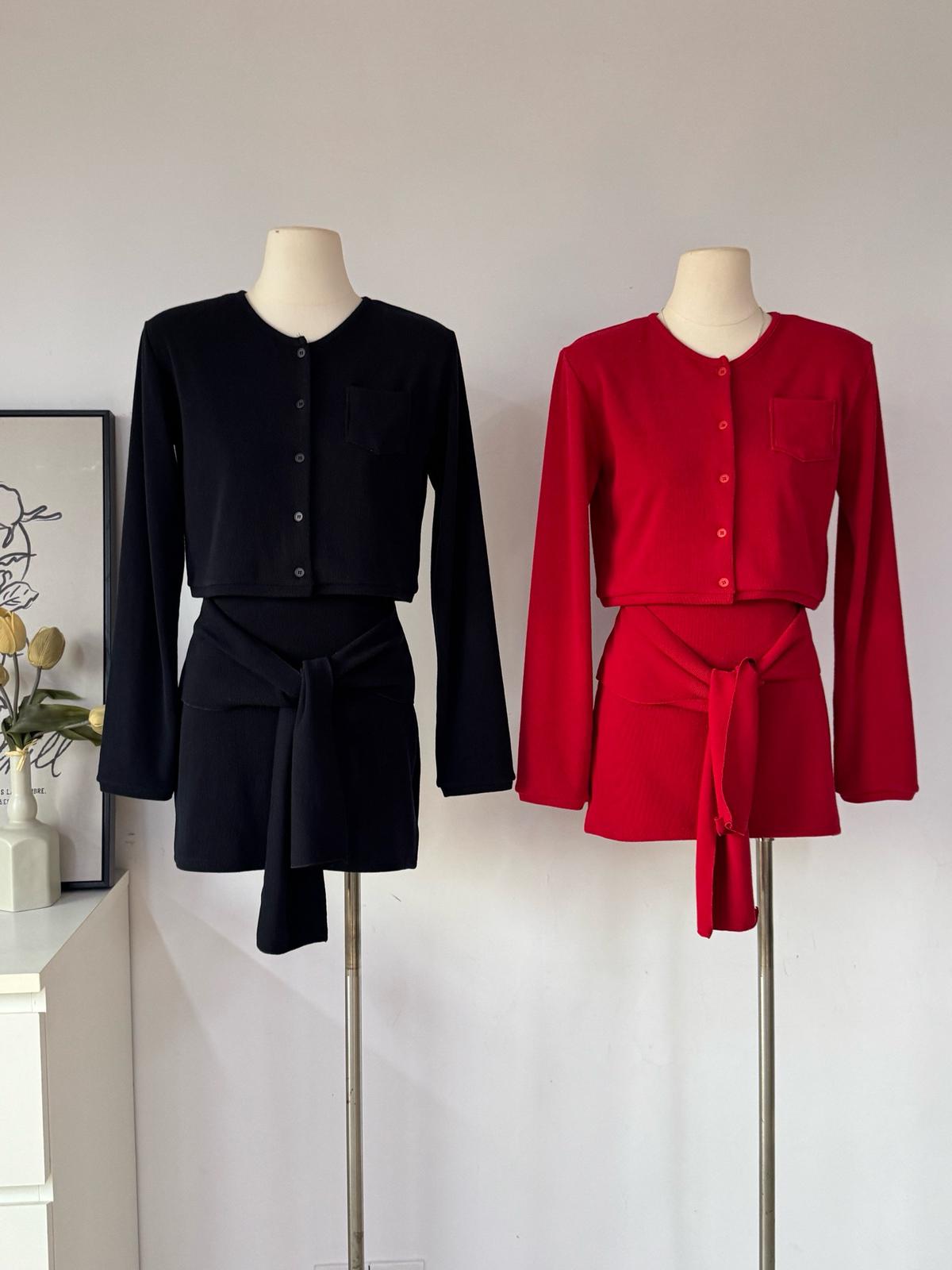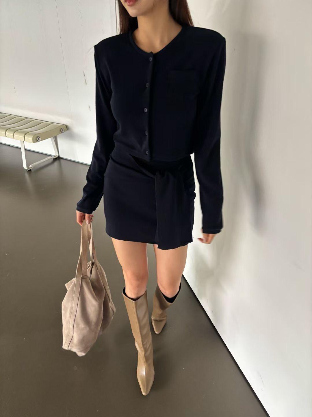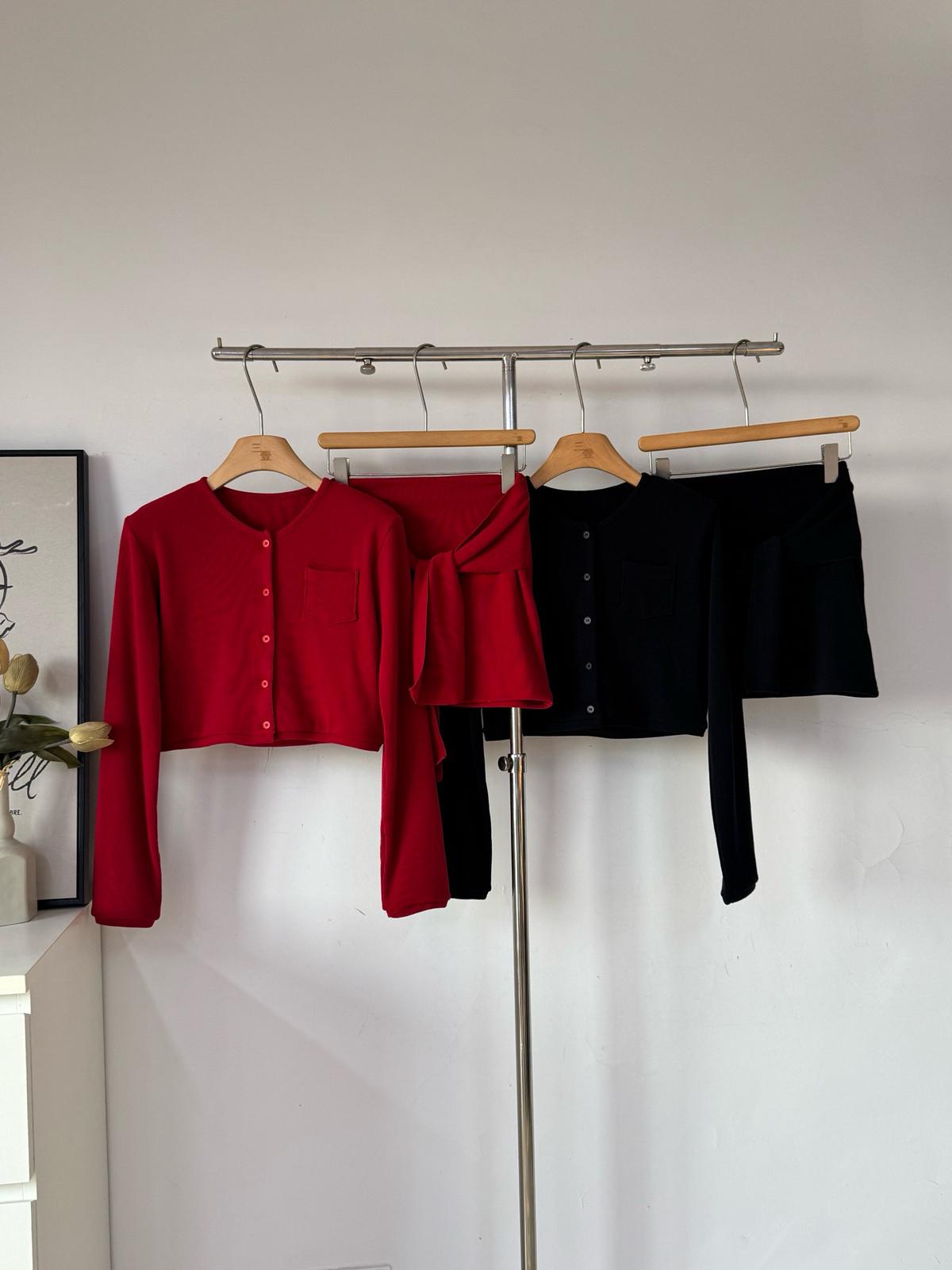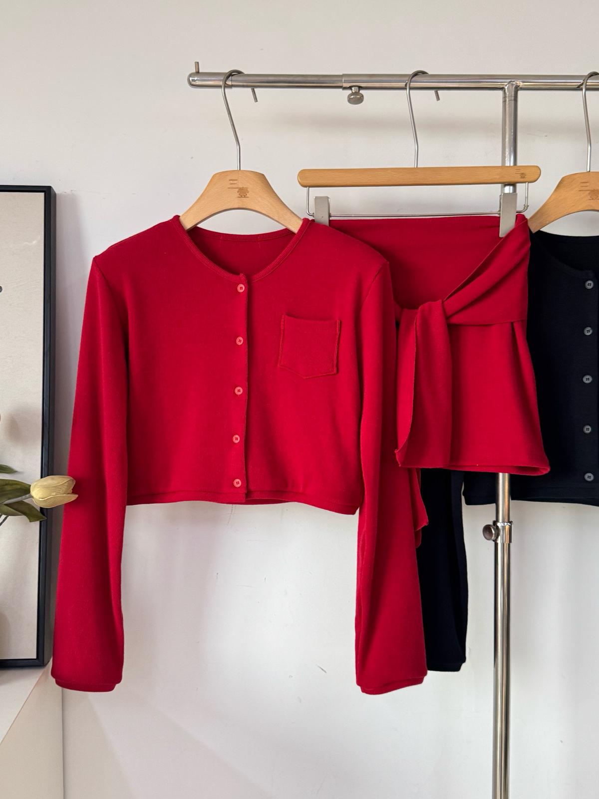 3. 【C7634】韓系休閒係扣口袋開衫➕不規則半身裙套裝