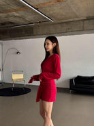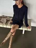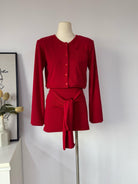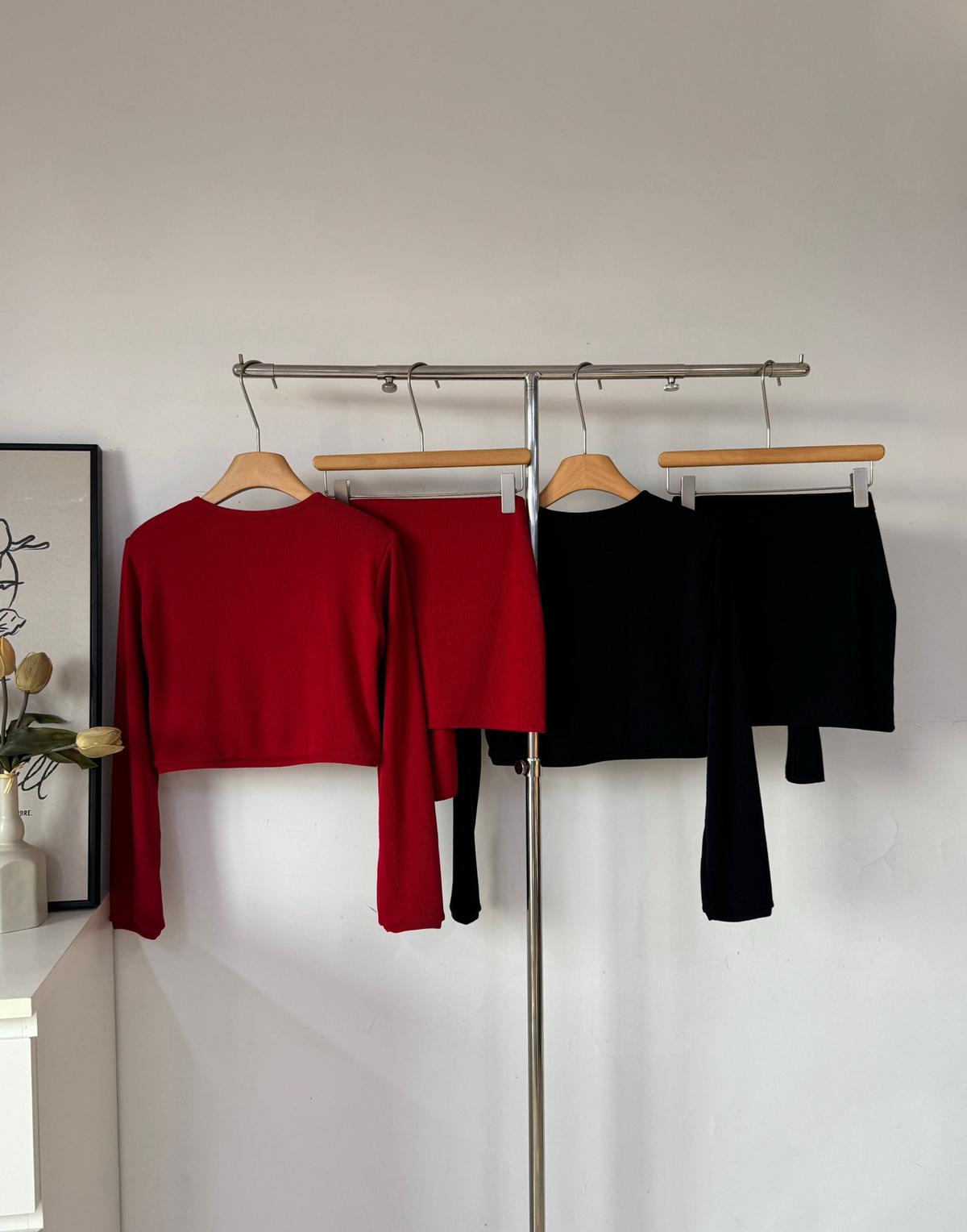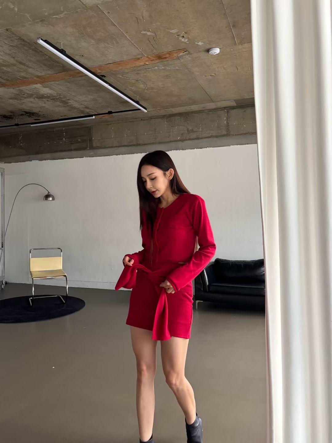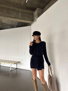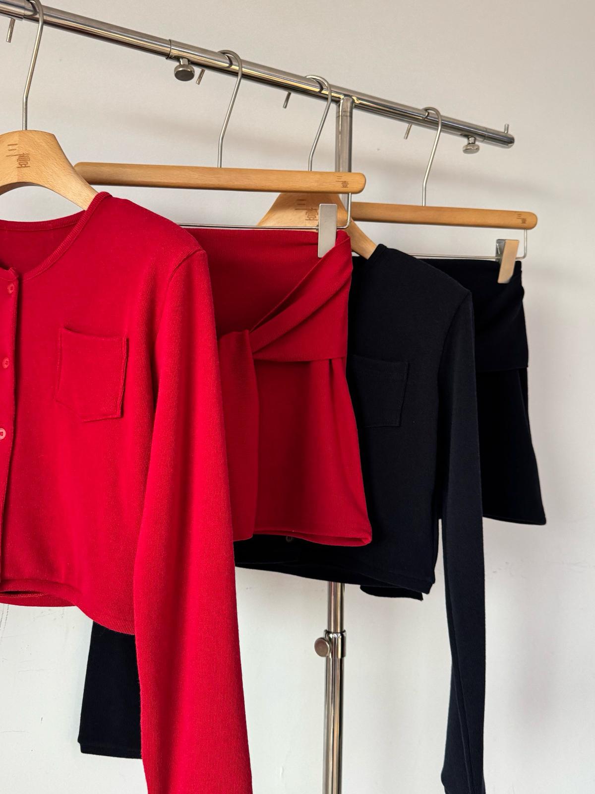 3. 【C7634】韓系休閒係扣口袋開衫➕不規則半身裙套裝