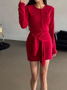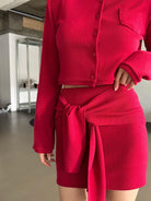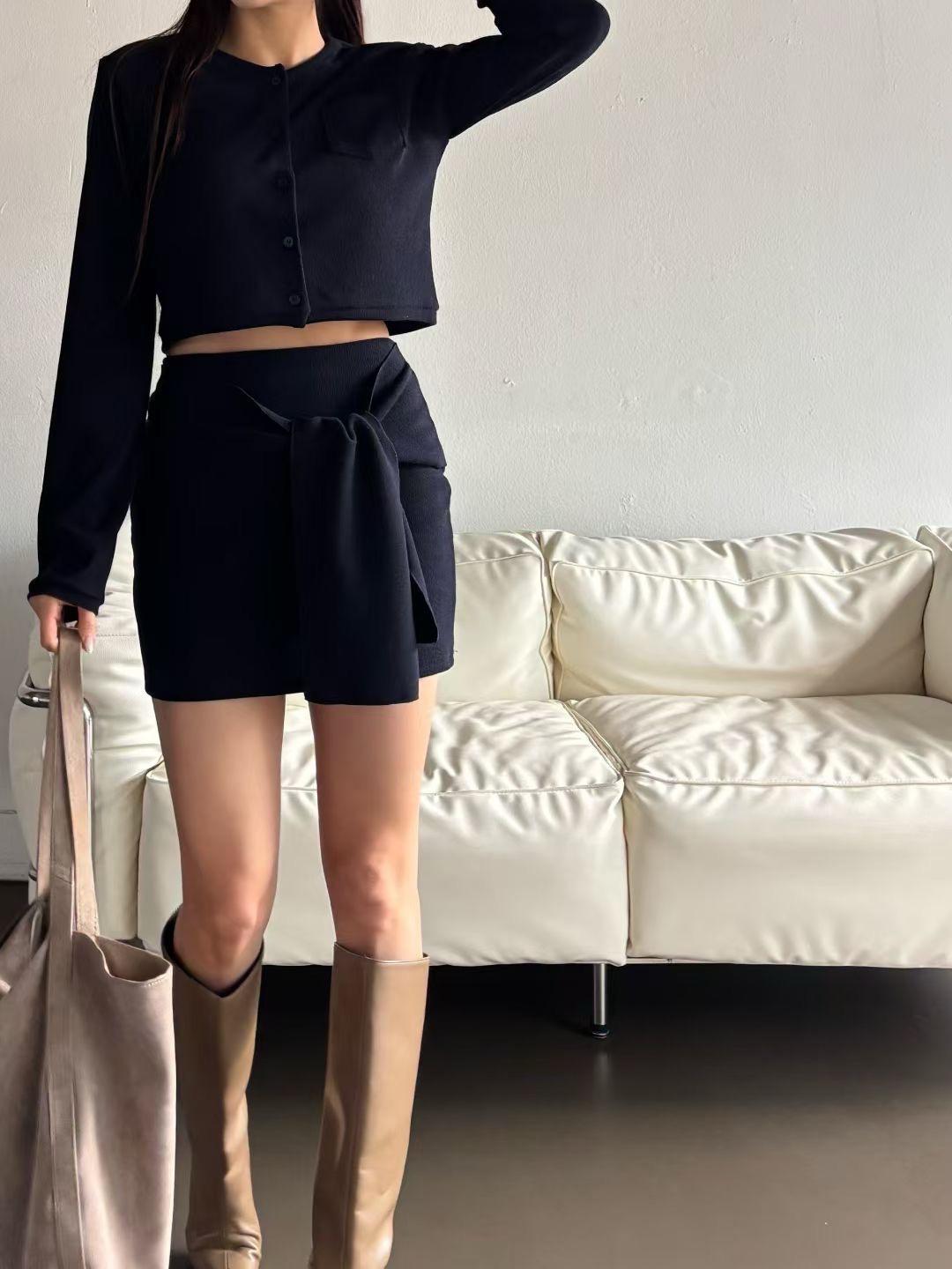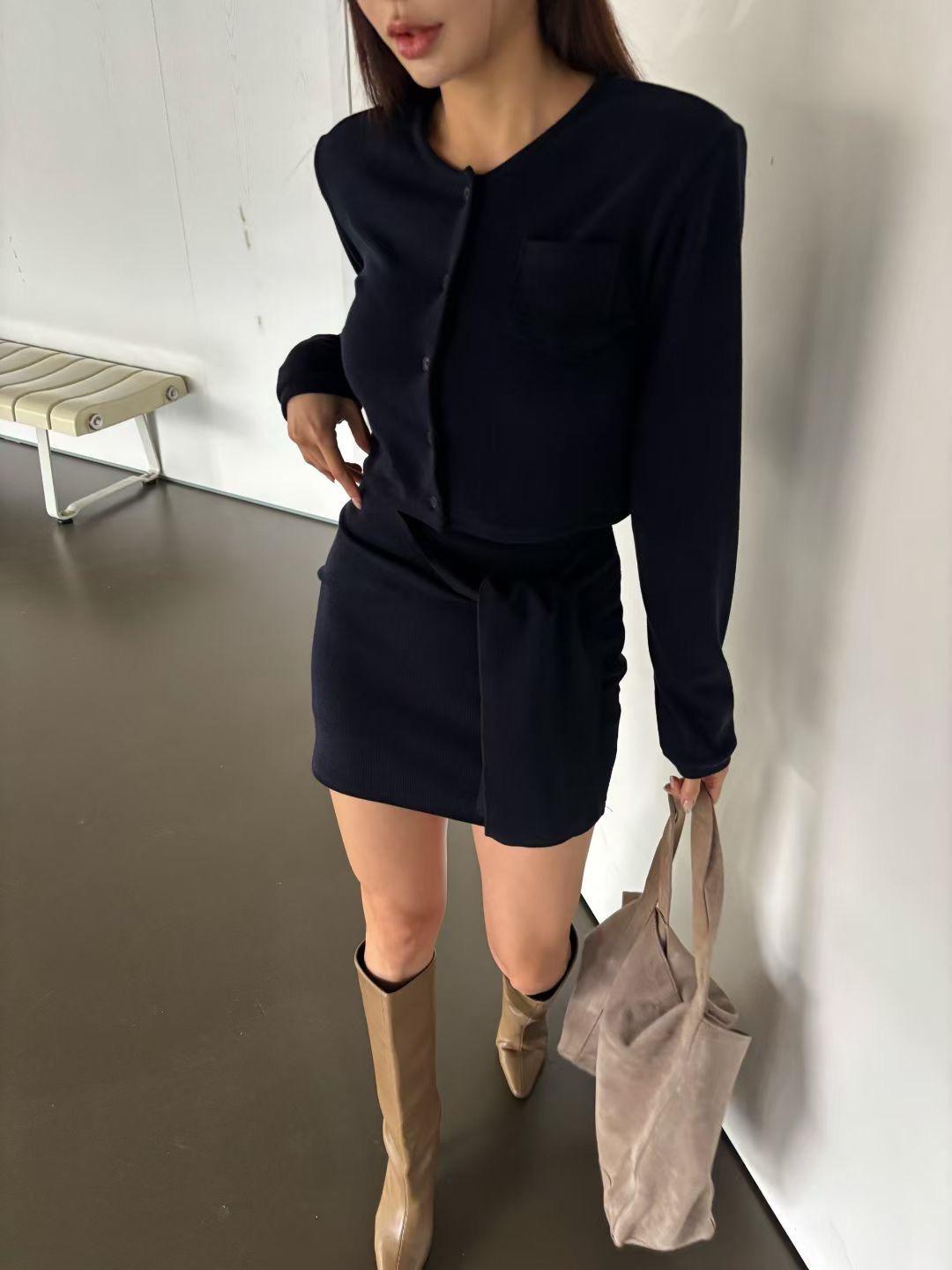 【C7634】韓系休閒係扣口袋開衫➕不規則半身裙套裝