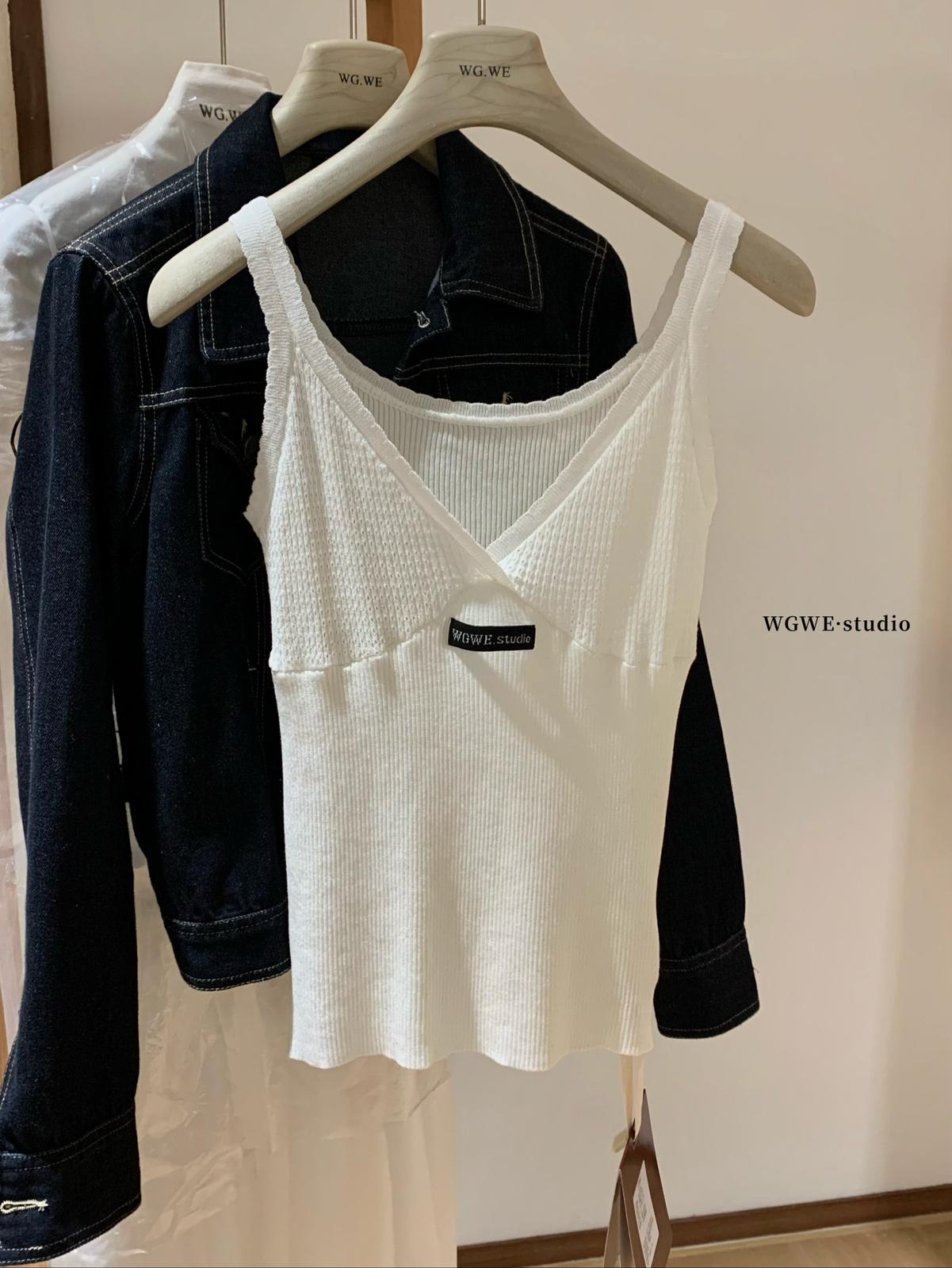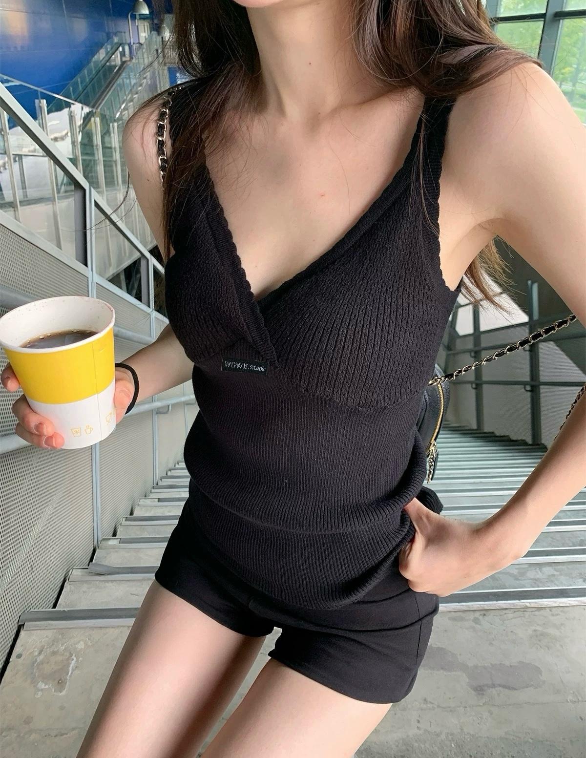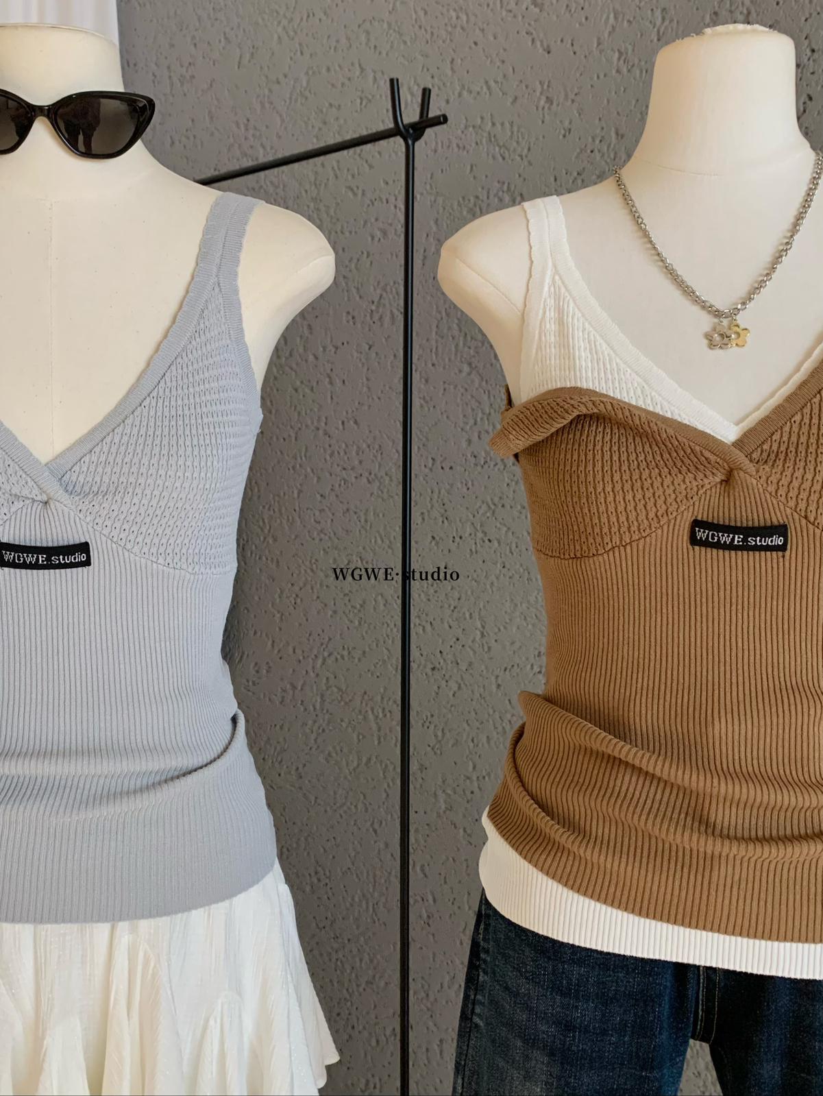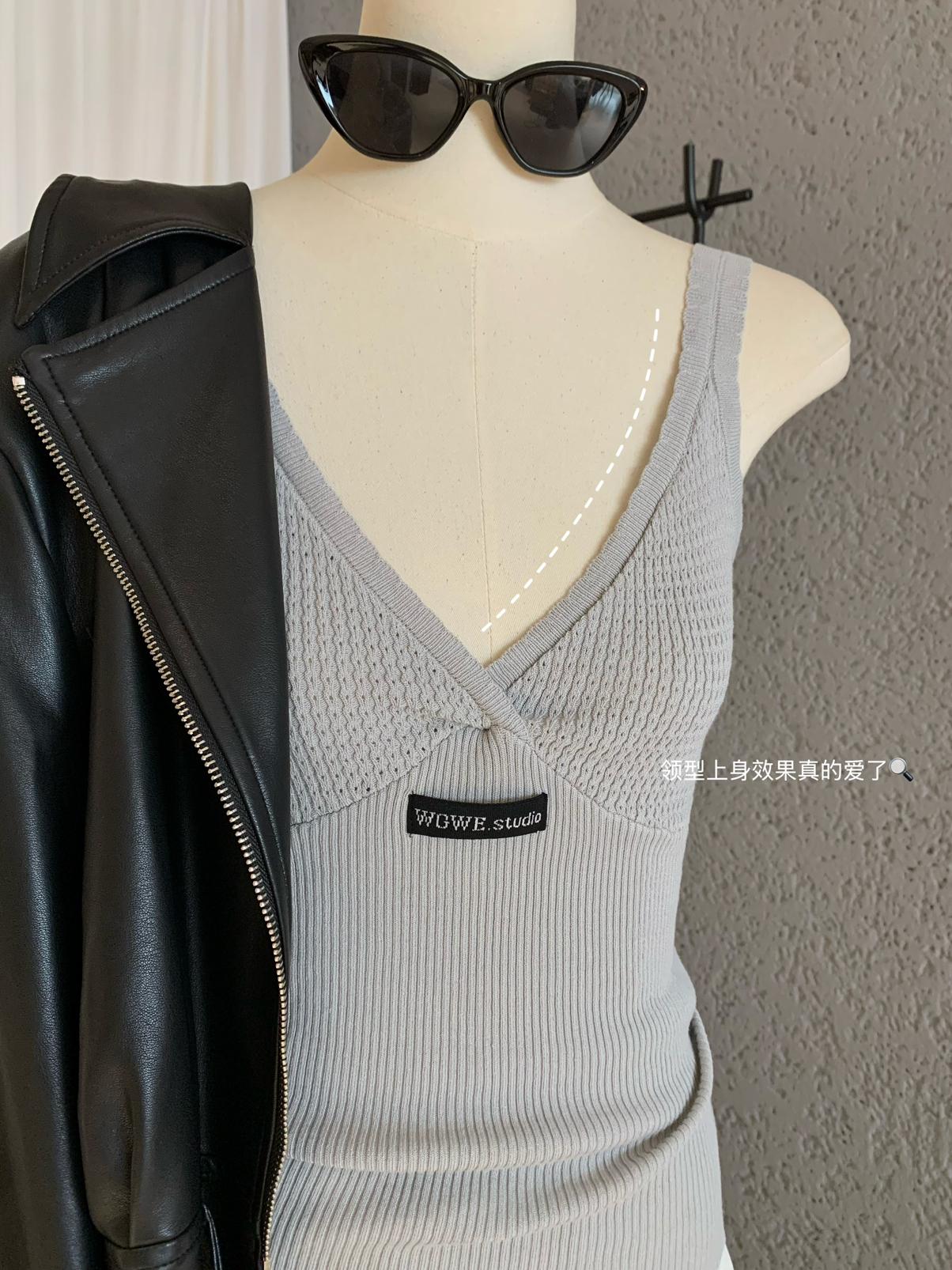 【C7642】miu系鉤花鏤空針織抹胸吊帶百搭修身背心