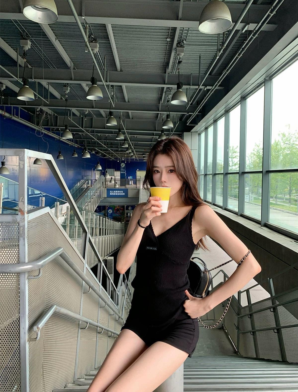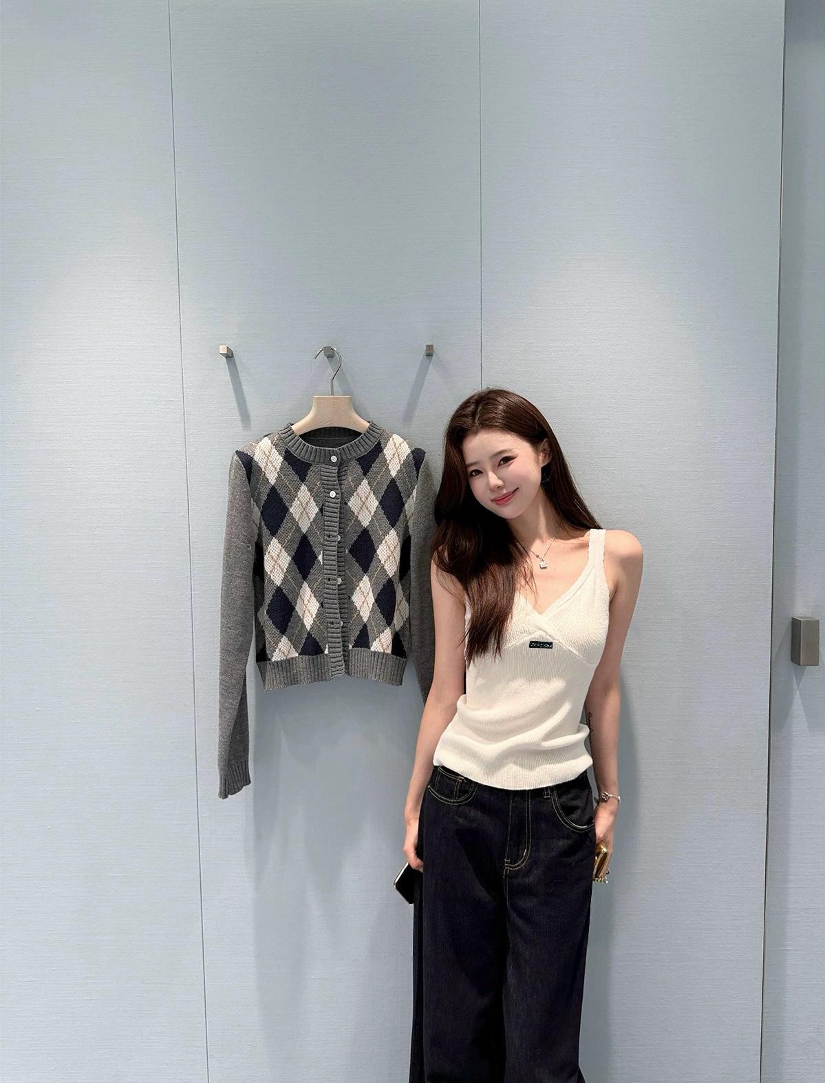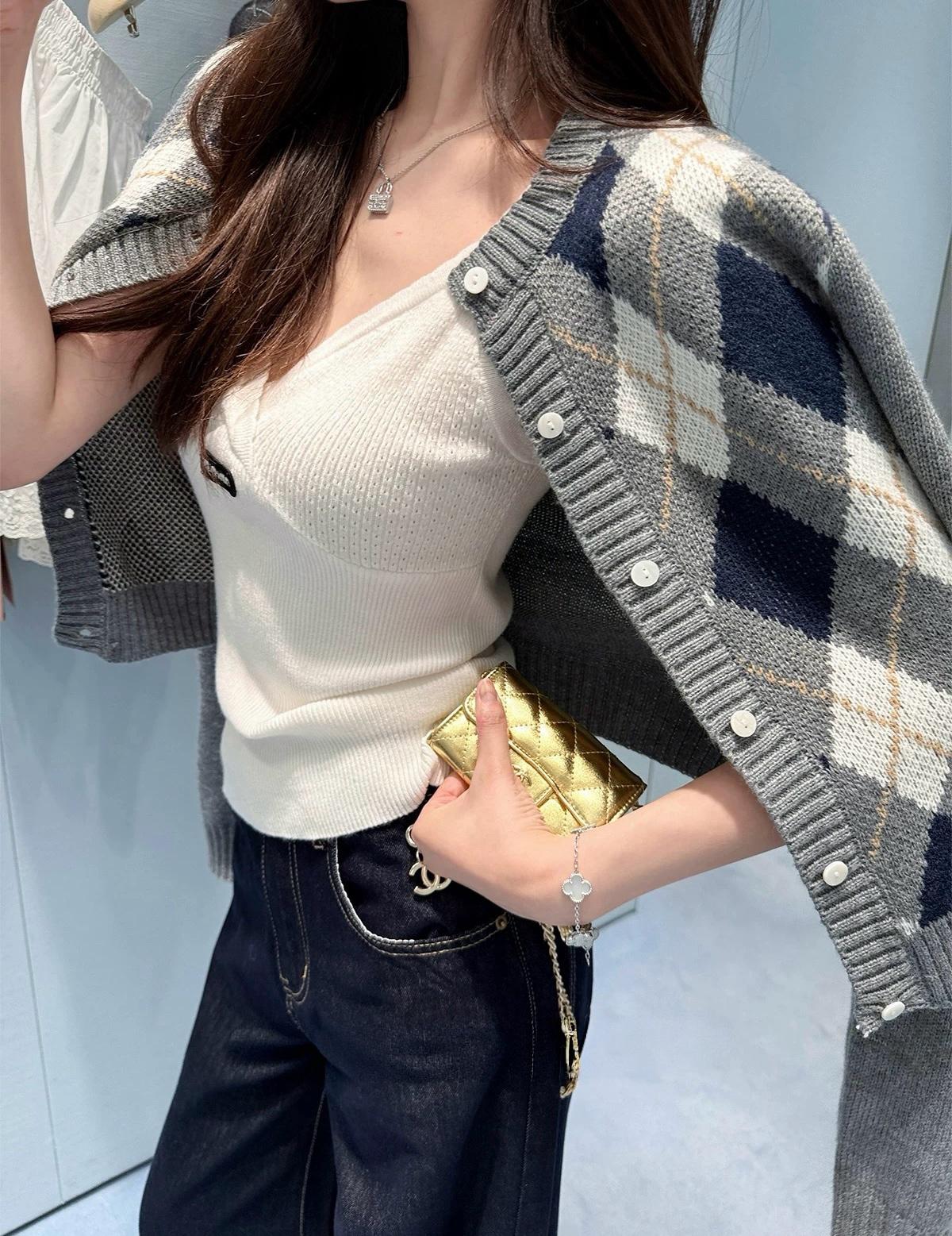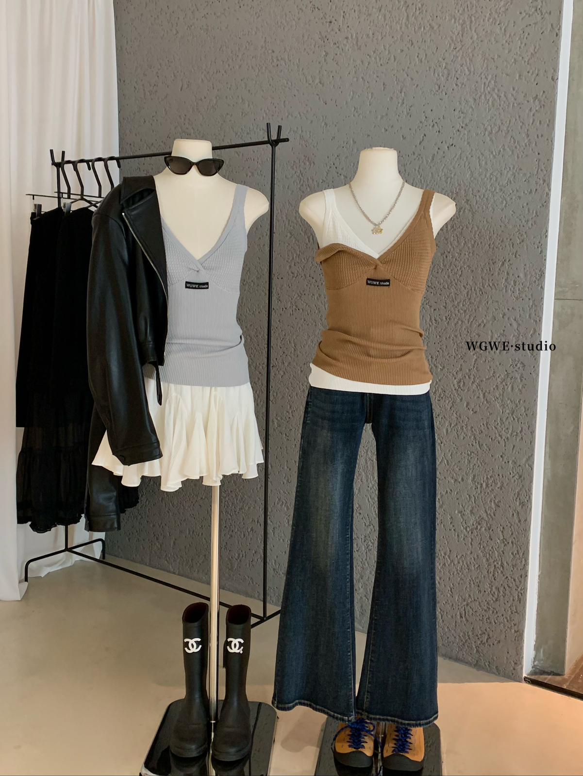 【C7642】miu系鉤花鏤空針織抹胸吊帶百搭修身背心