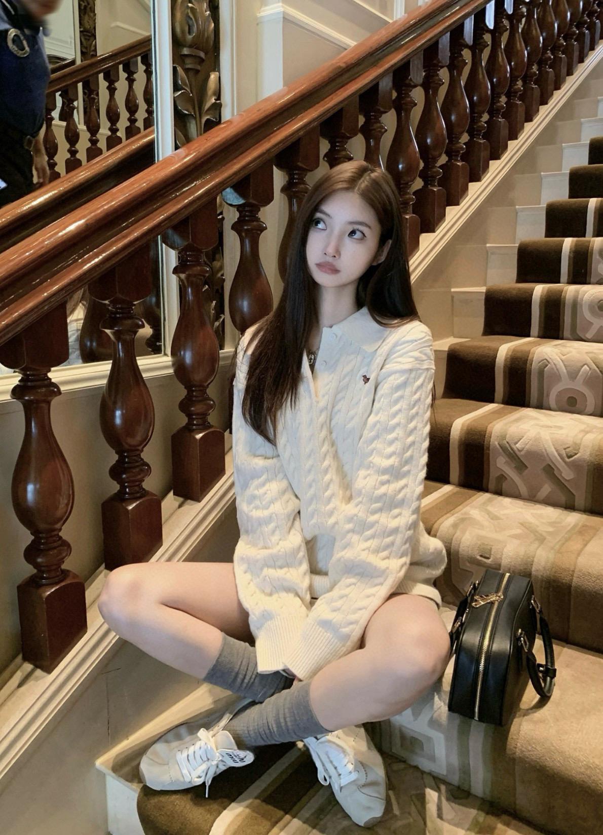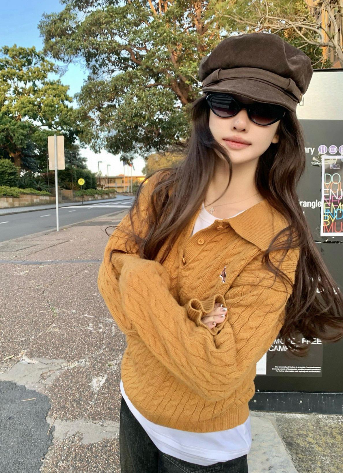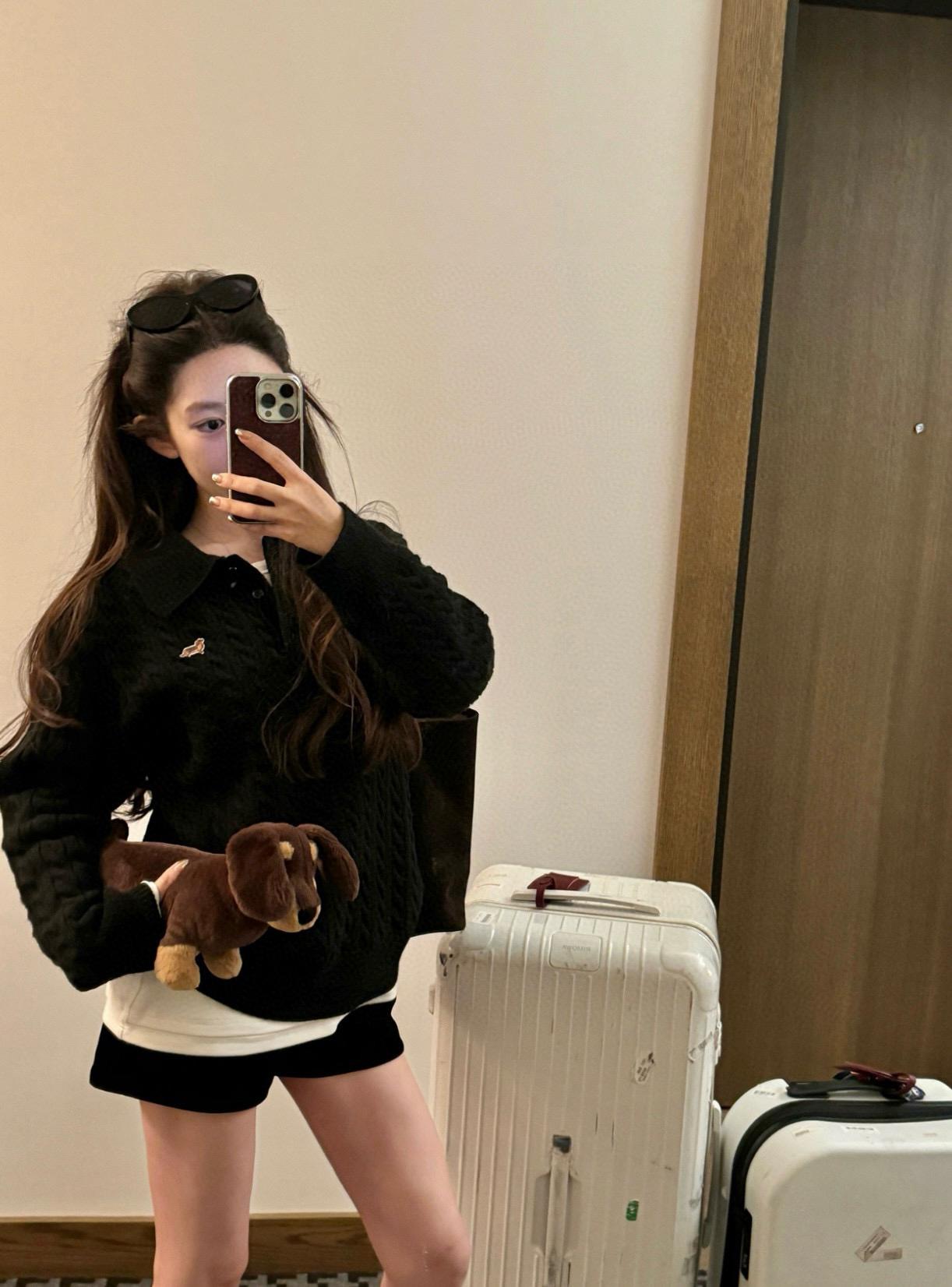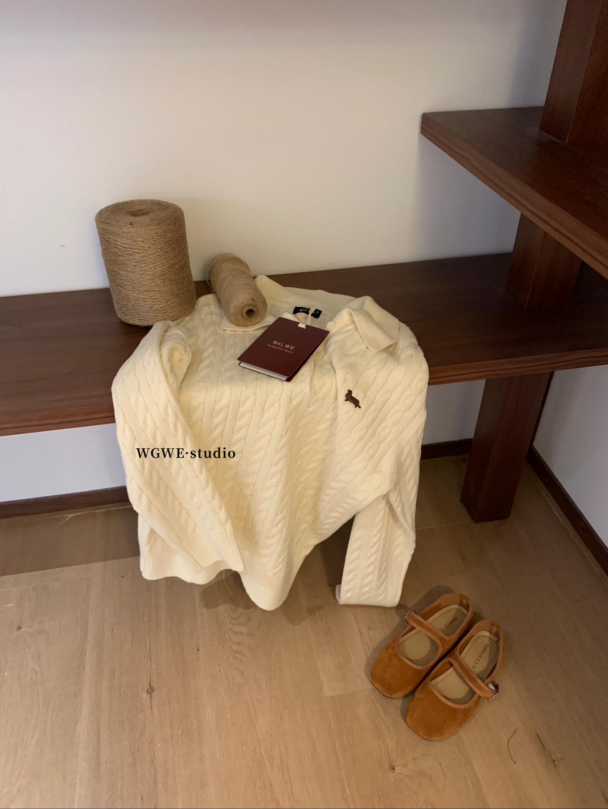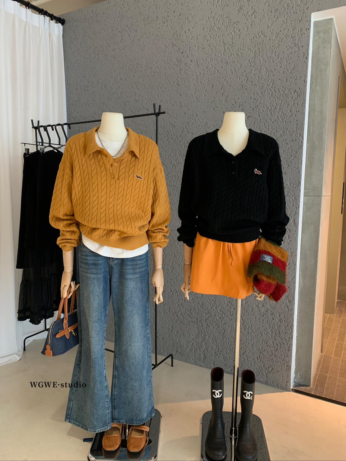 3. 【C7643】(小狗日記)臘腸狗刺繡粗麻花polo領女翻領針織衫保暖毛衣