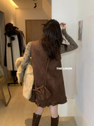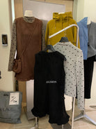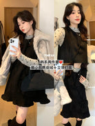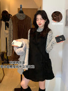 【C7648】千金感立領打底衫+麂皮絨花邊連衣裙套裝(配小包包)