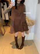 3. 【C7648】千金感立領打底衫+麂皮絨花邊連衣裙套裝(配小包包)