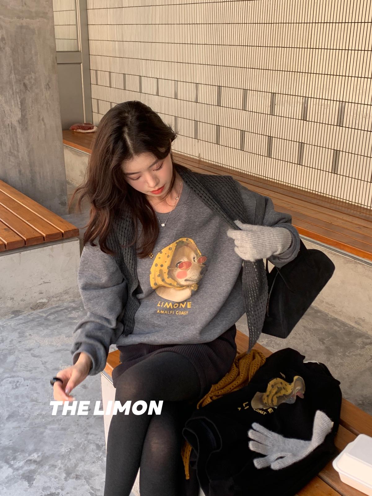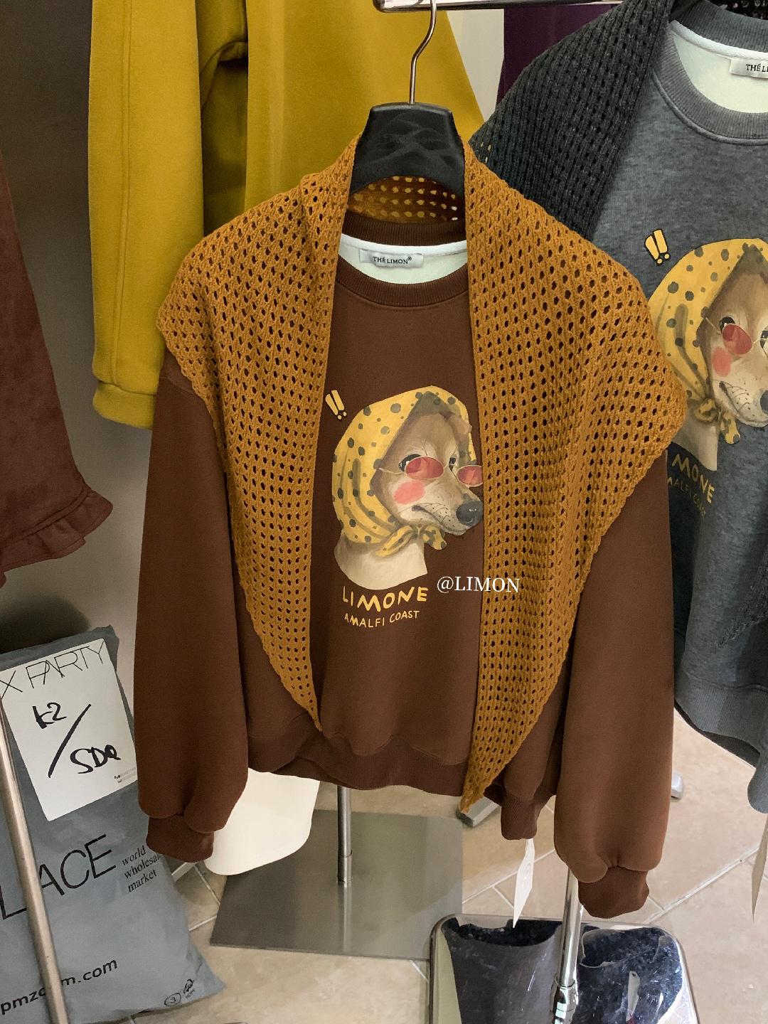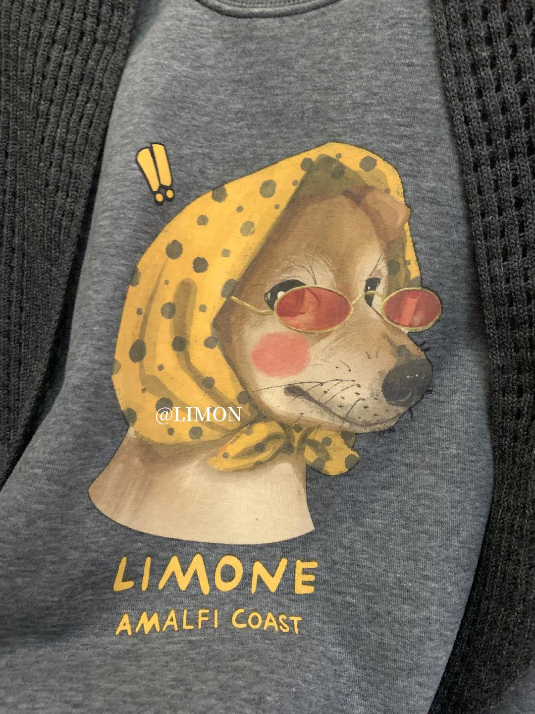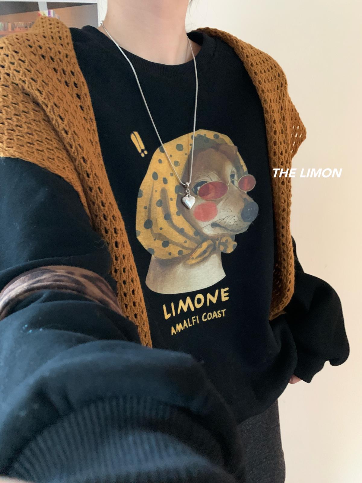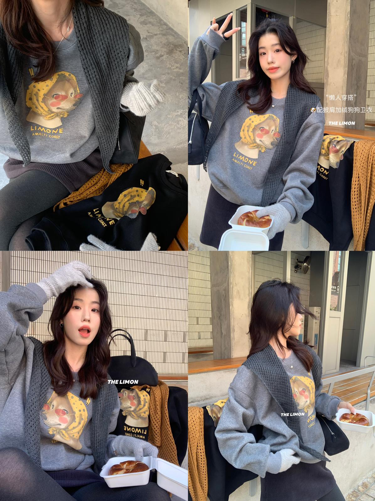 【C7652】美式復古減齡臘波點狗狗印花加絨衛衣(配披肩)