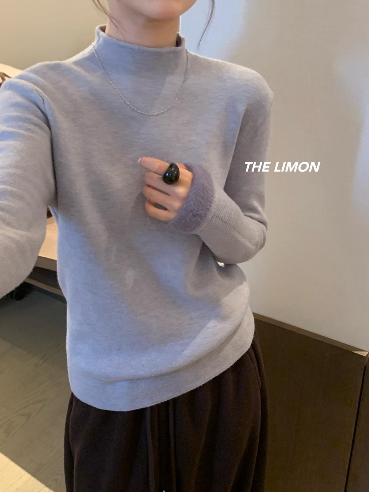 【C7653】自留款!半高領加厚修身保暖百搭一體絨針織衫