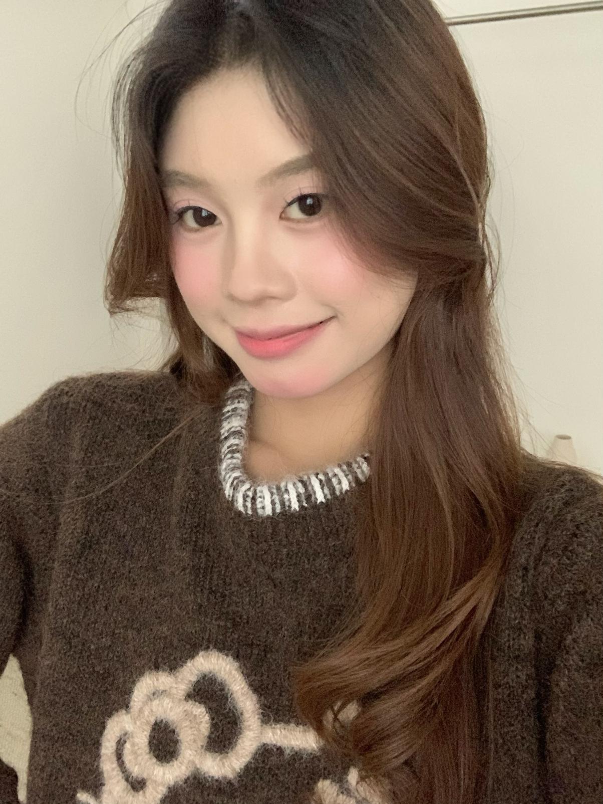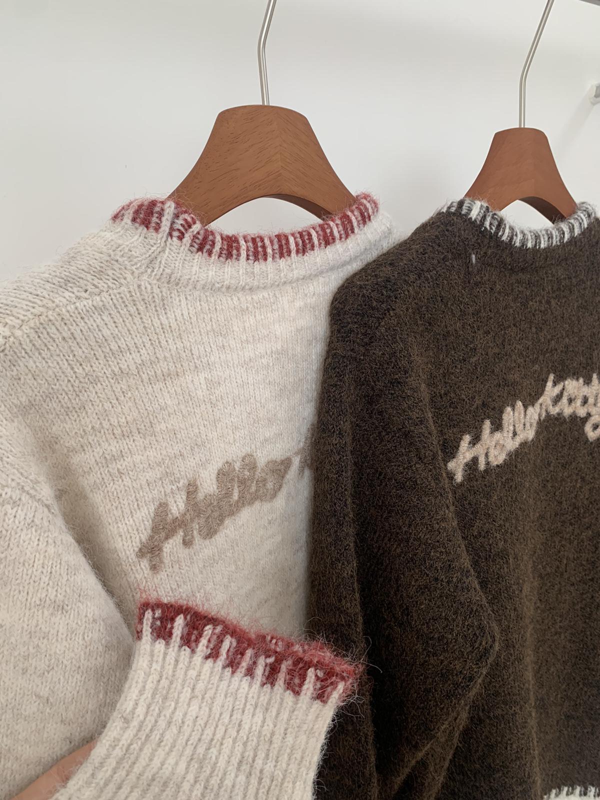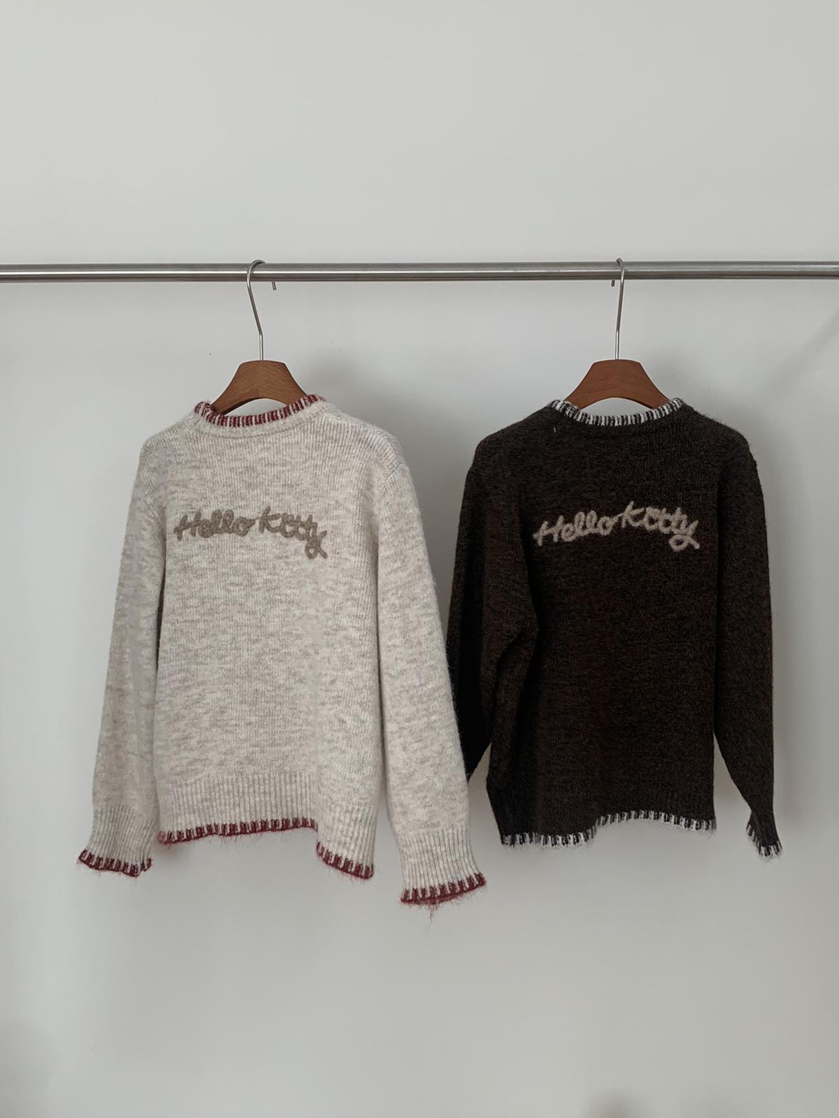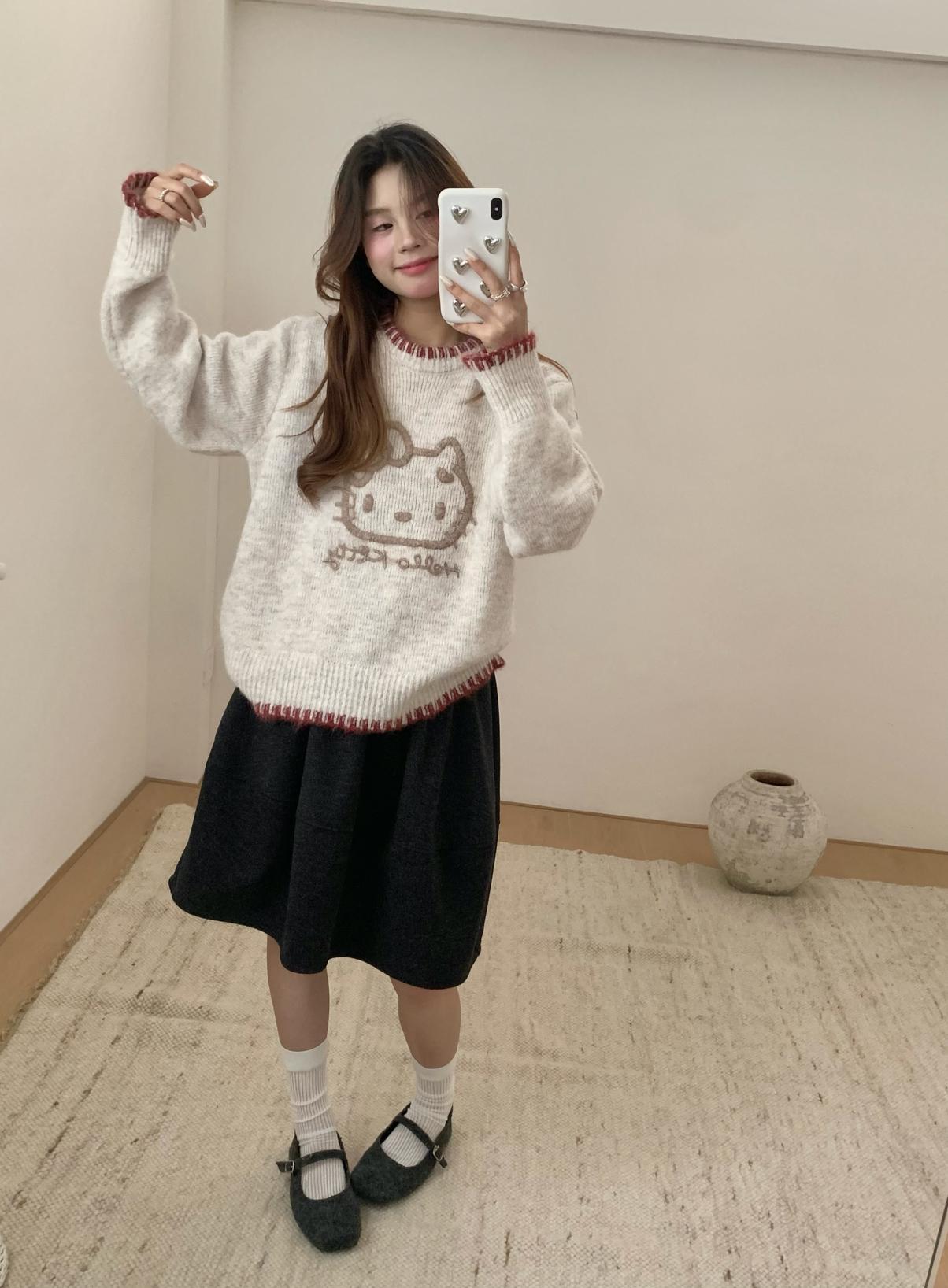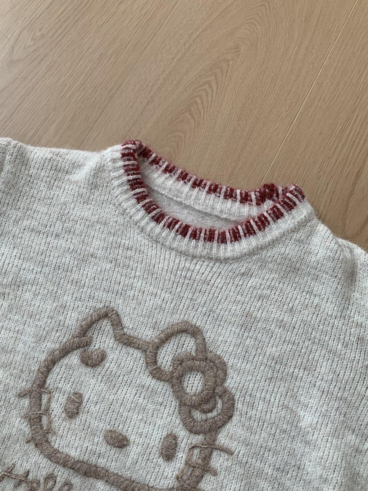 【C7655】可愛kitty貓圓領刺繡女冬季新款慵懶風寬鬆設計感保暖毛衣