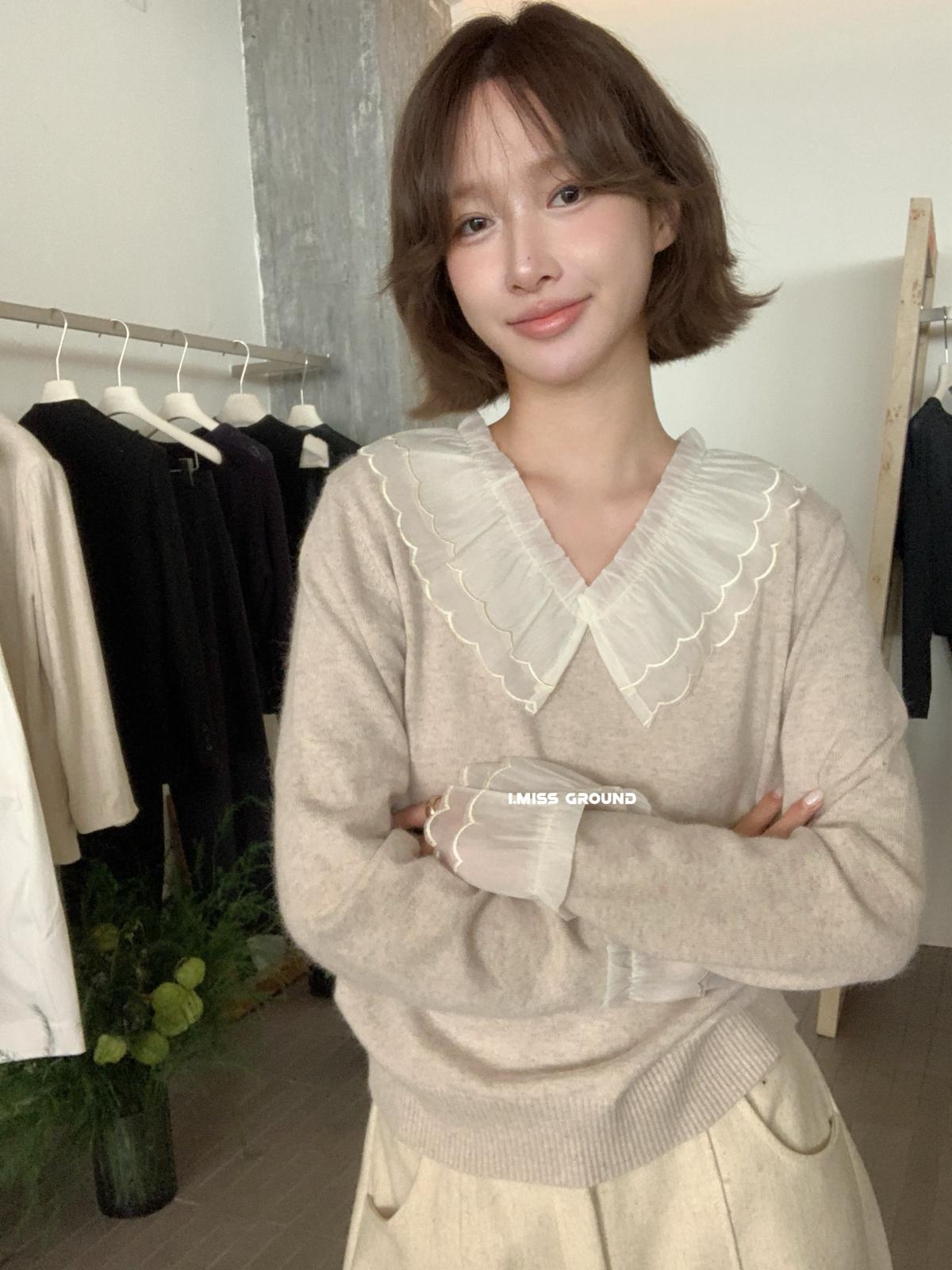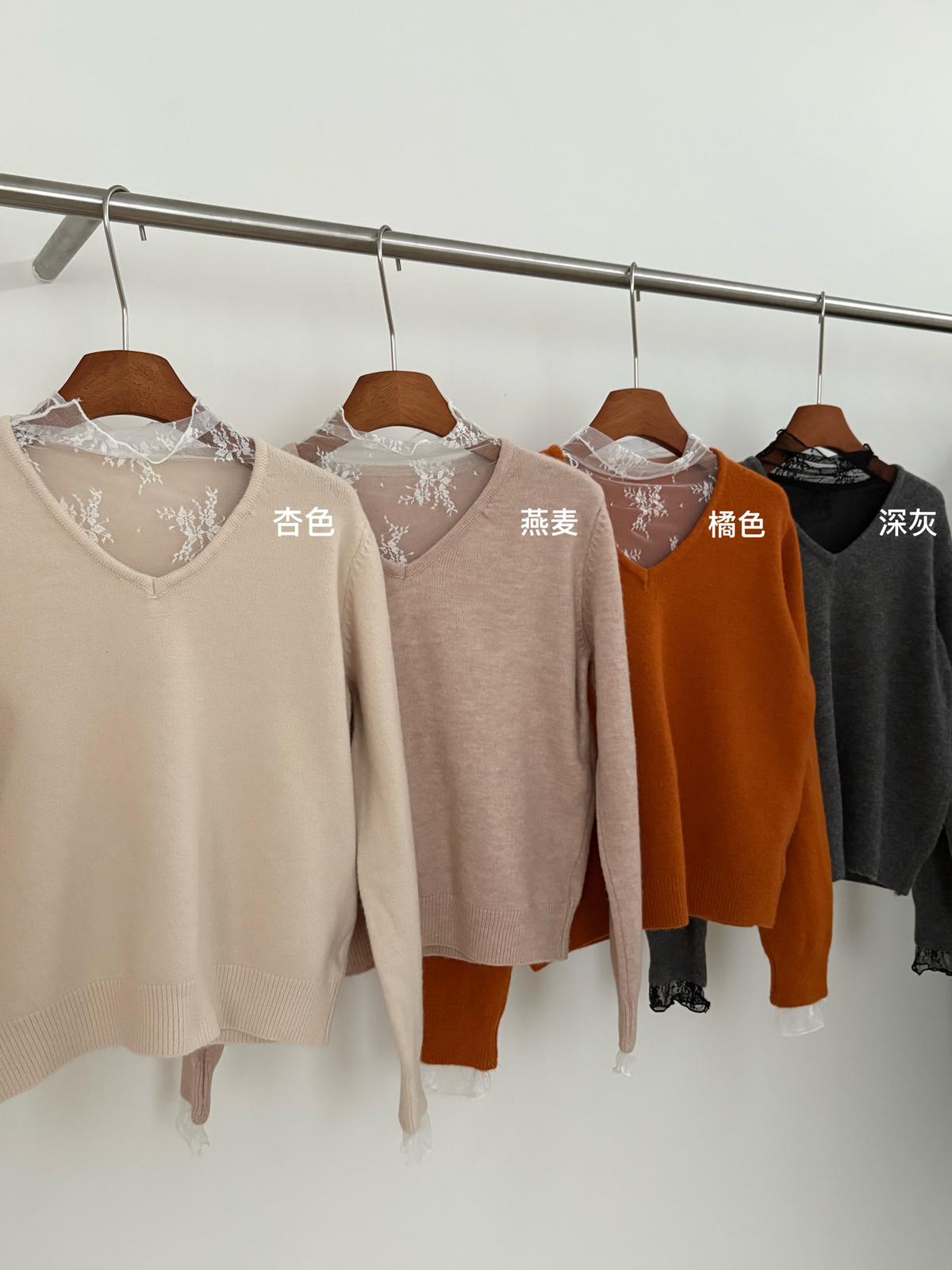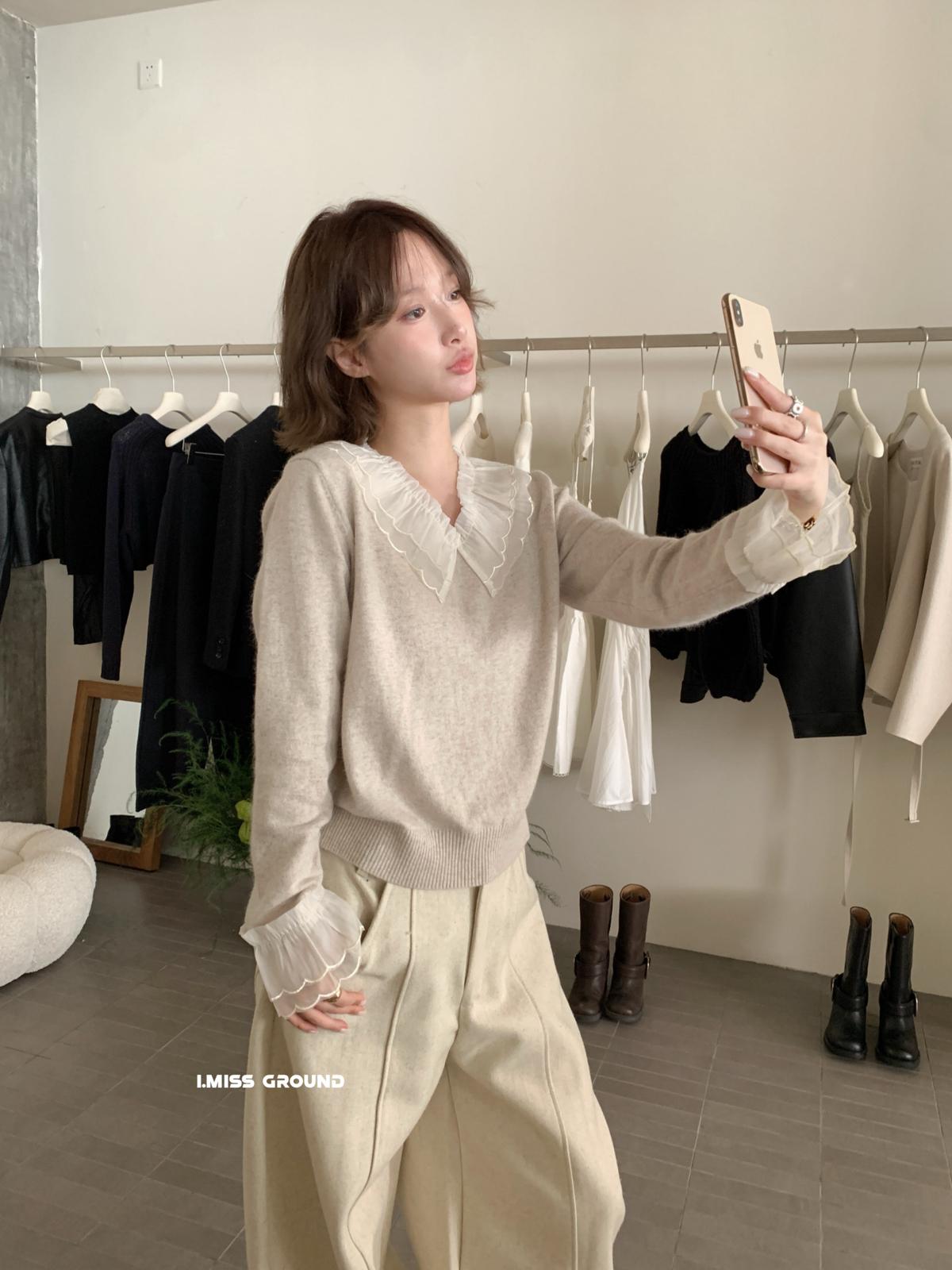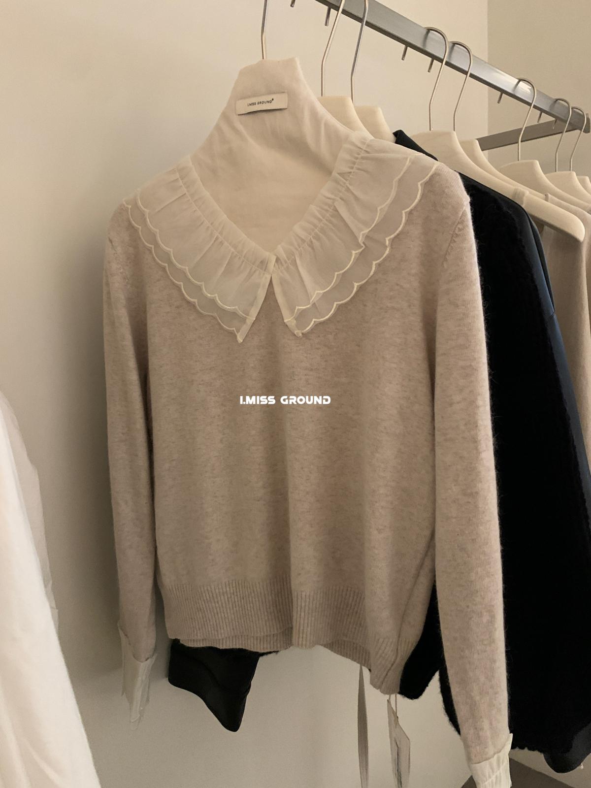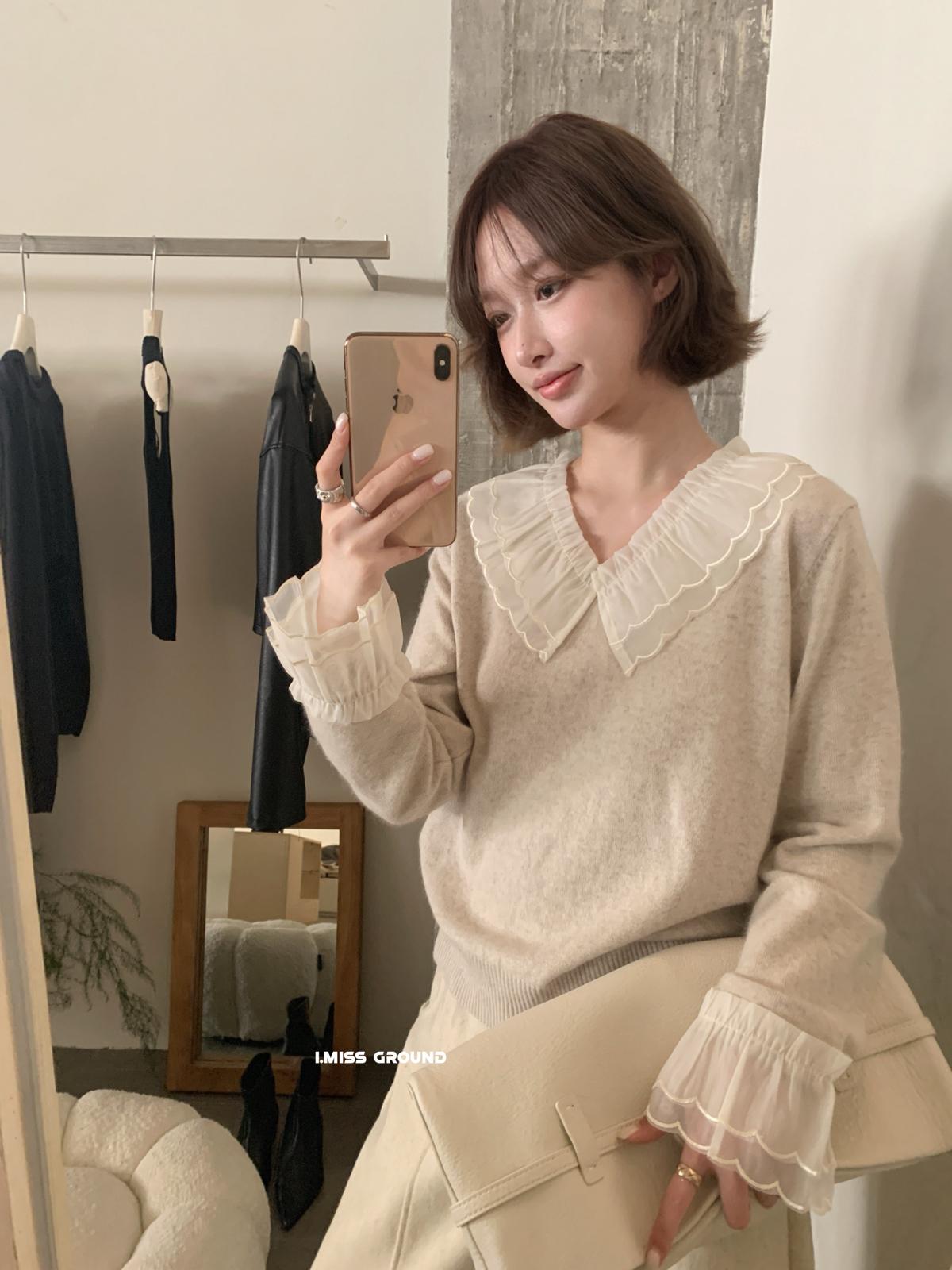 【C7663】氣質簡約花邊領針織衫(含4%羊羔毛)