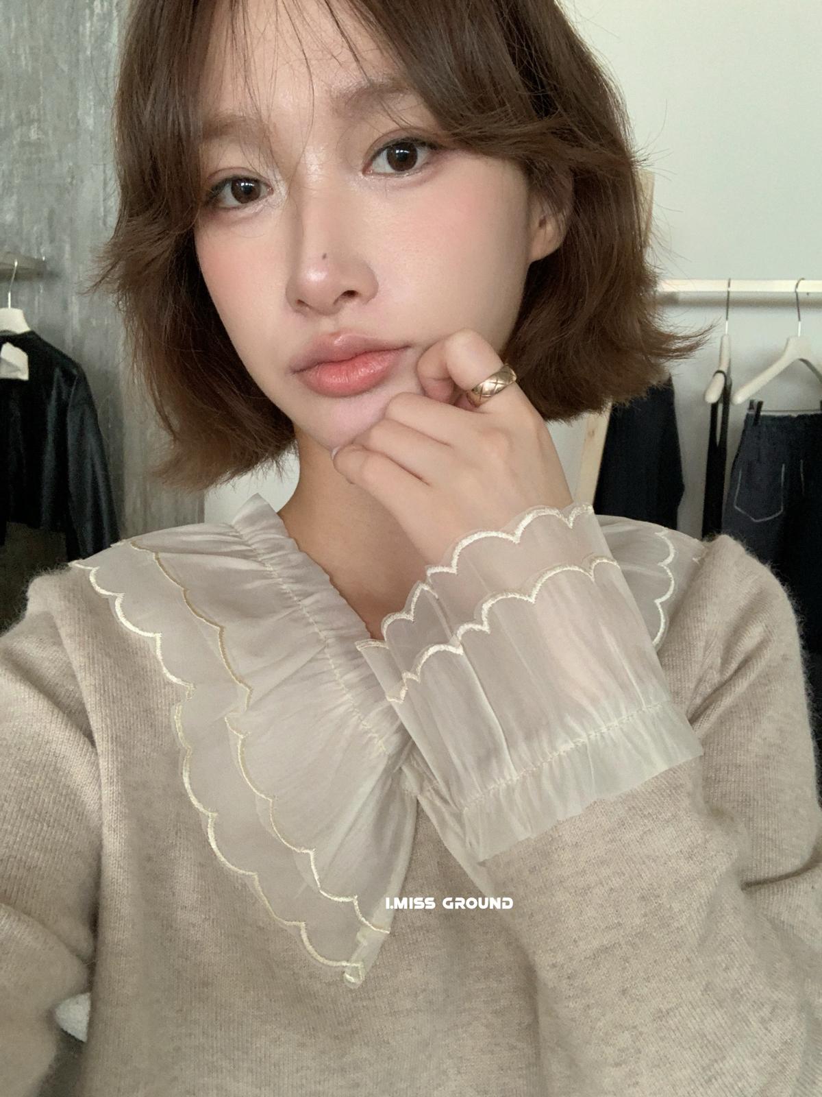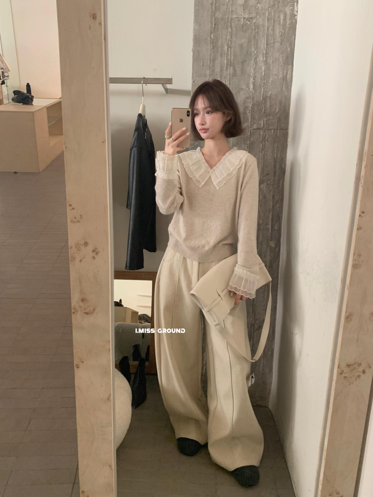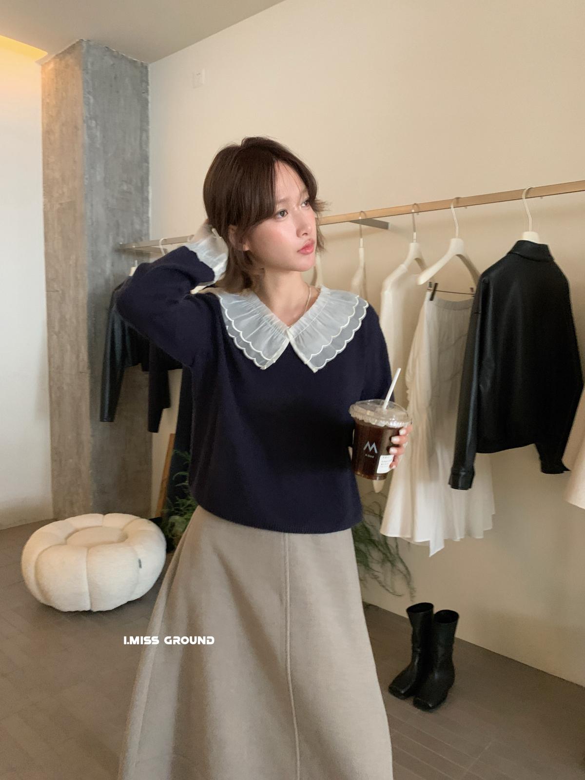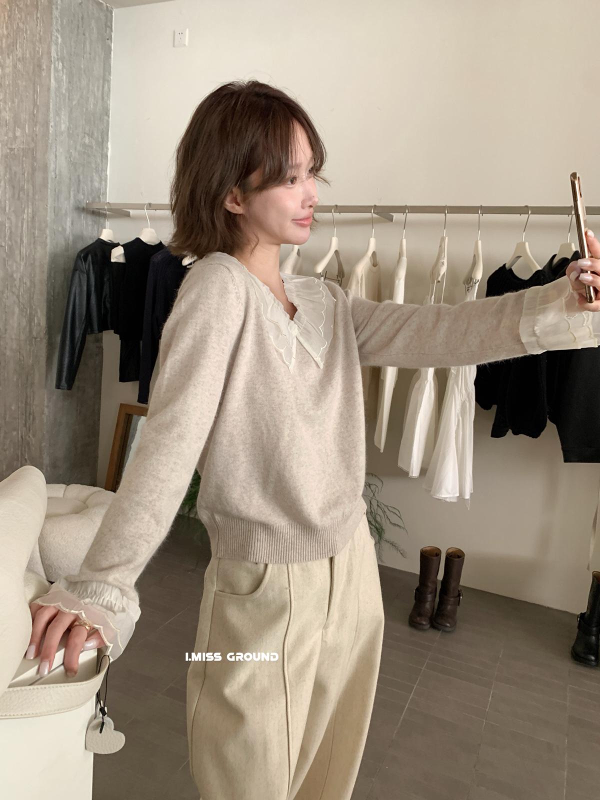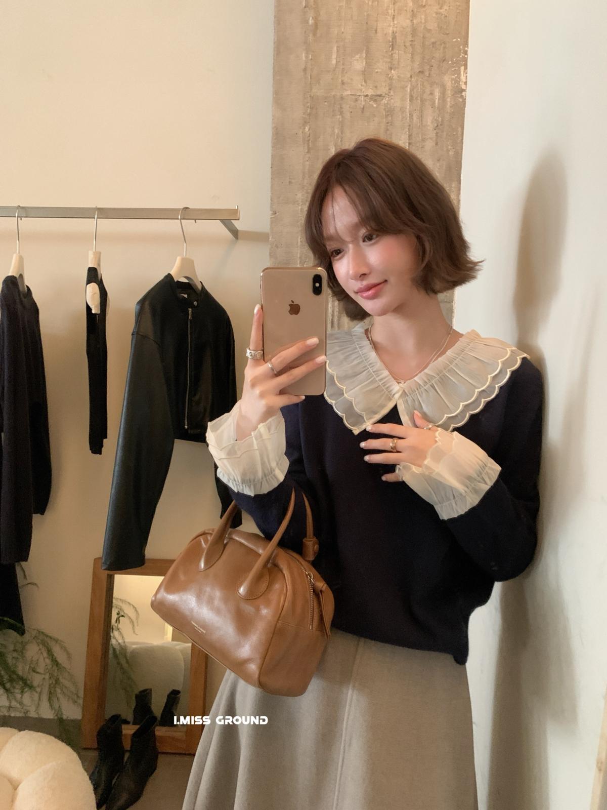 【C7663】氣質簡約花邊領針織衫(含4%羊羔毛)