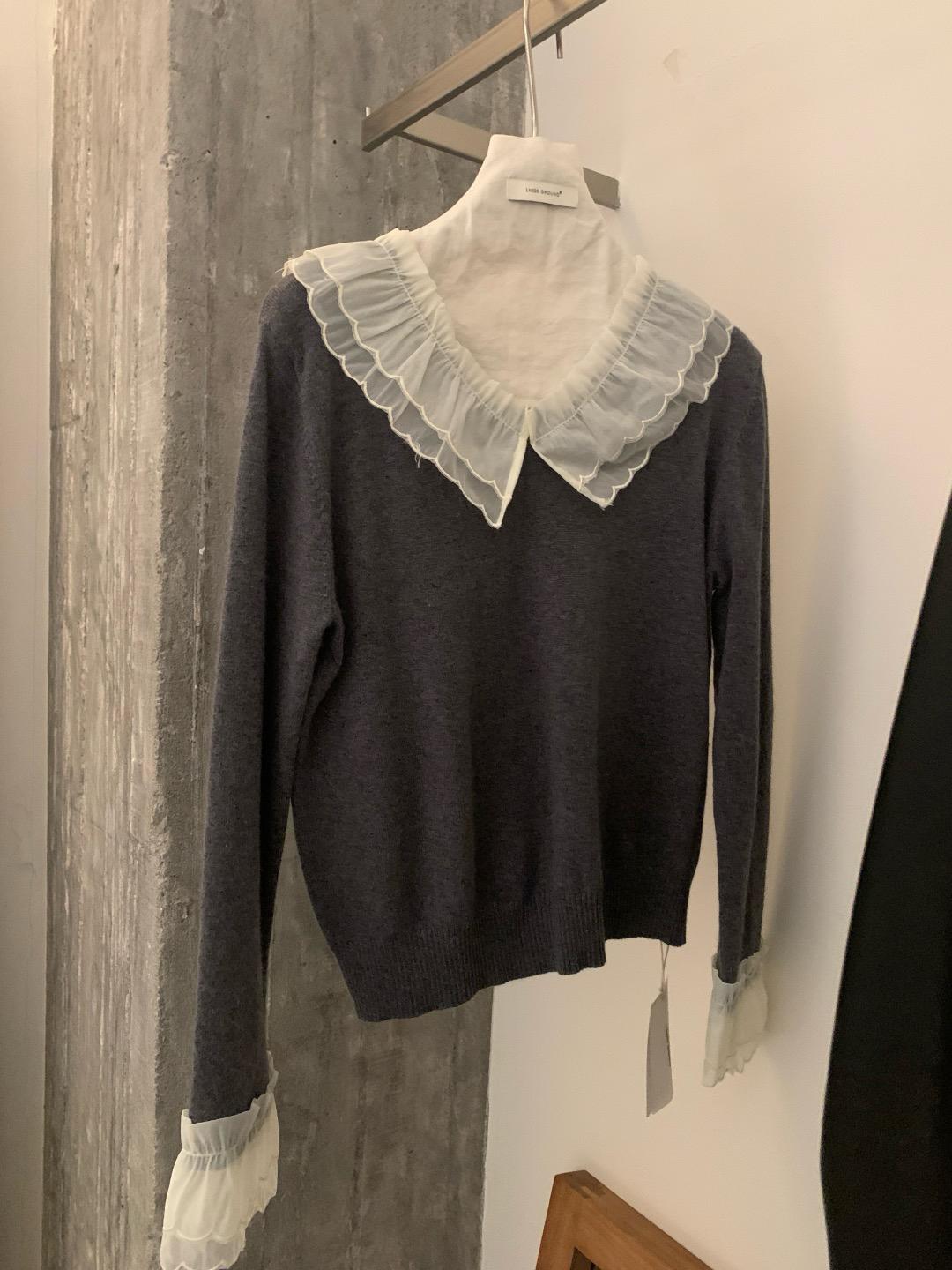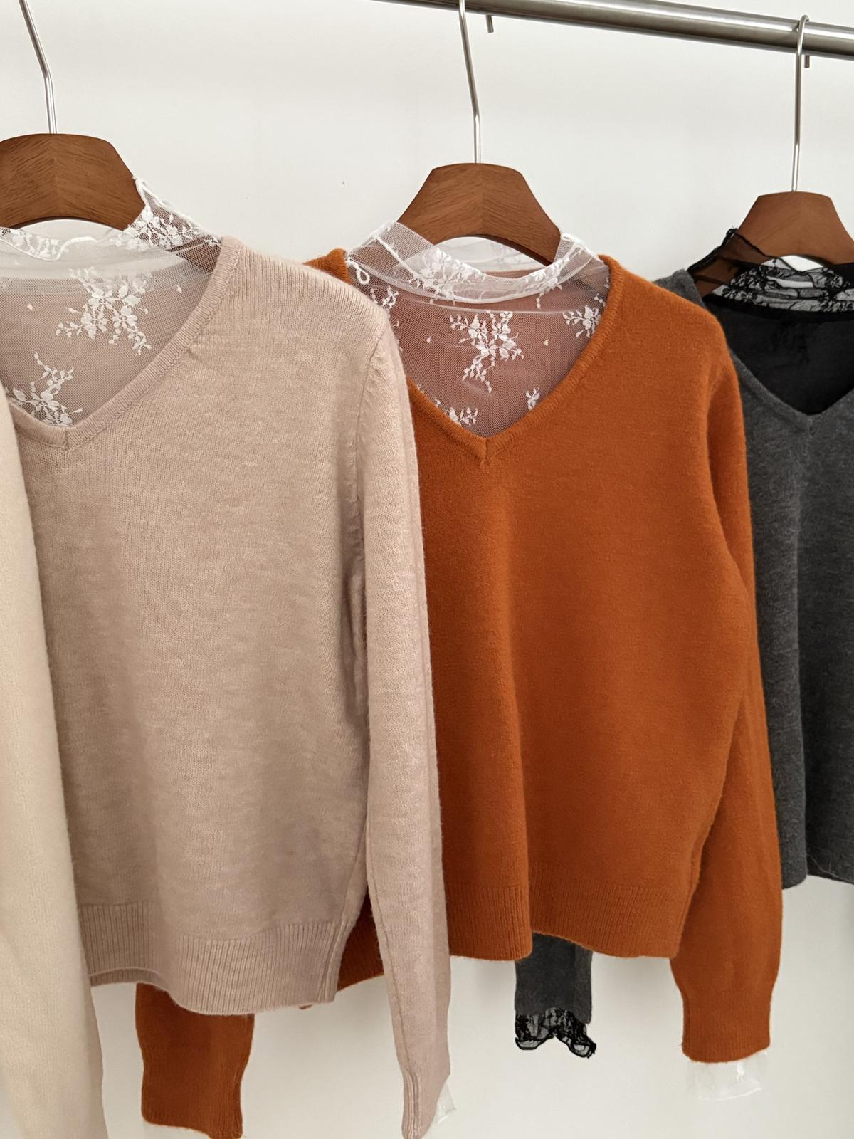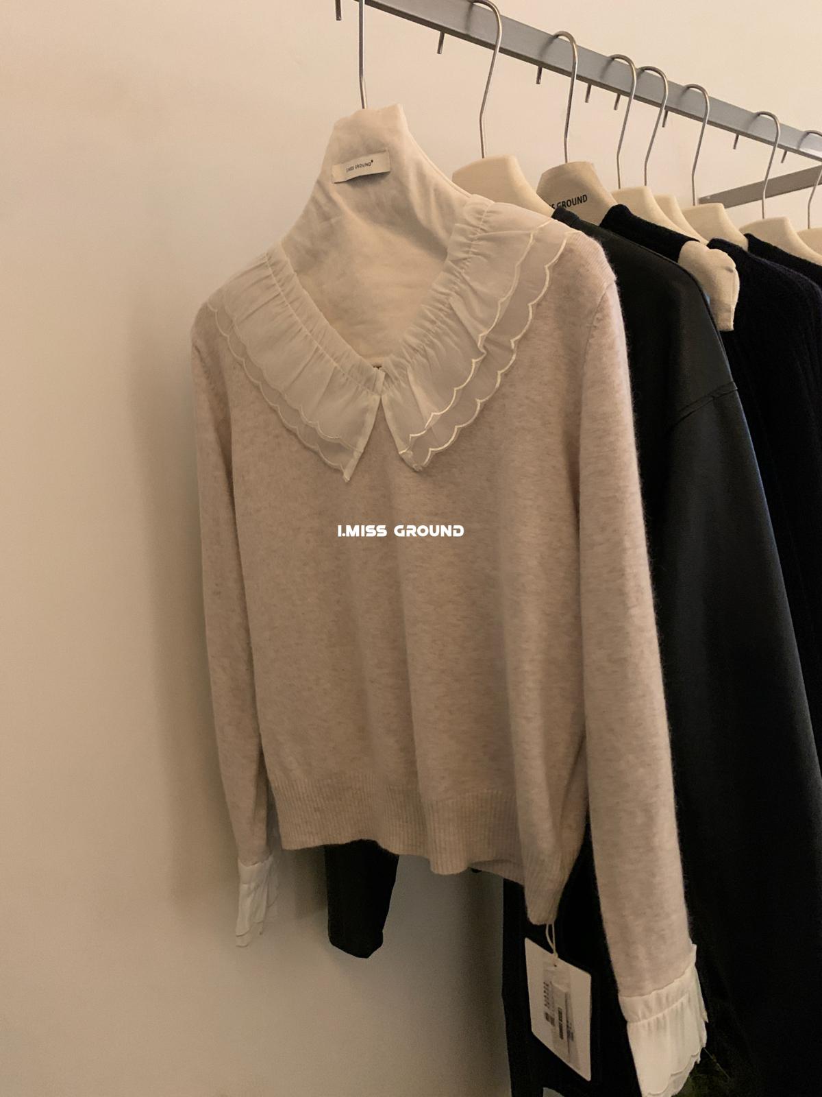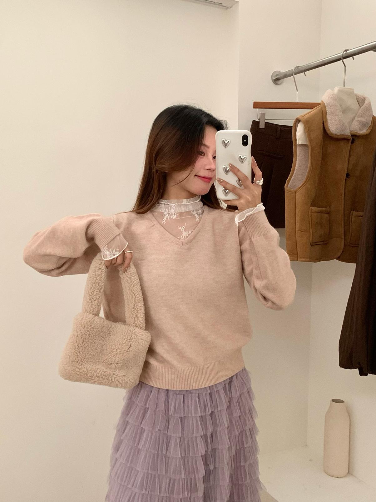【C7663】氣質簡約花邊領針織衫(含4%羊羔毛)