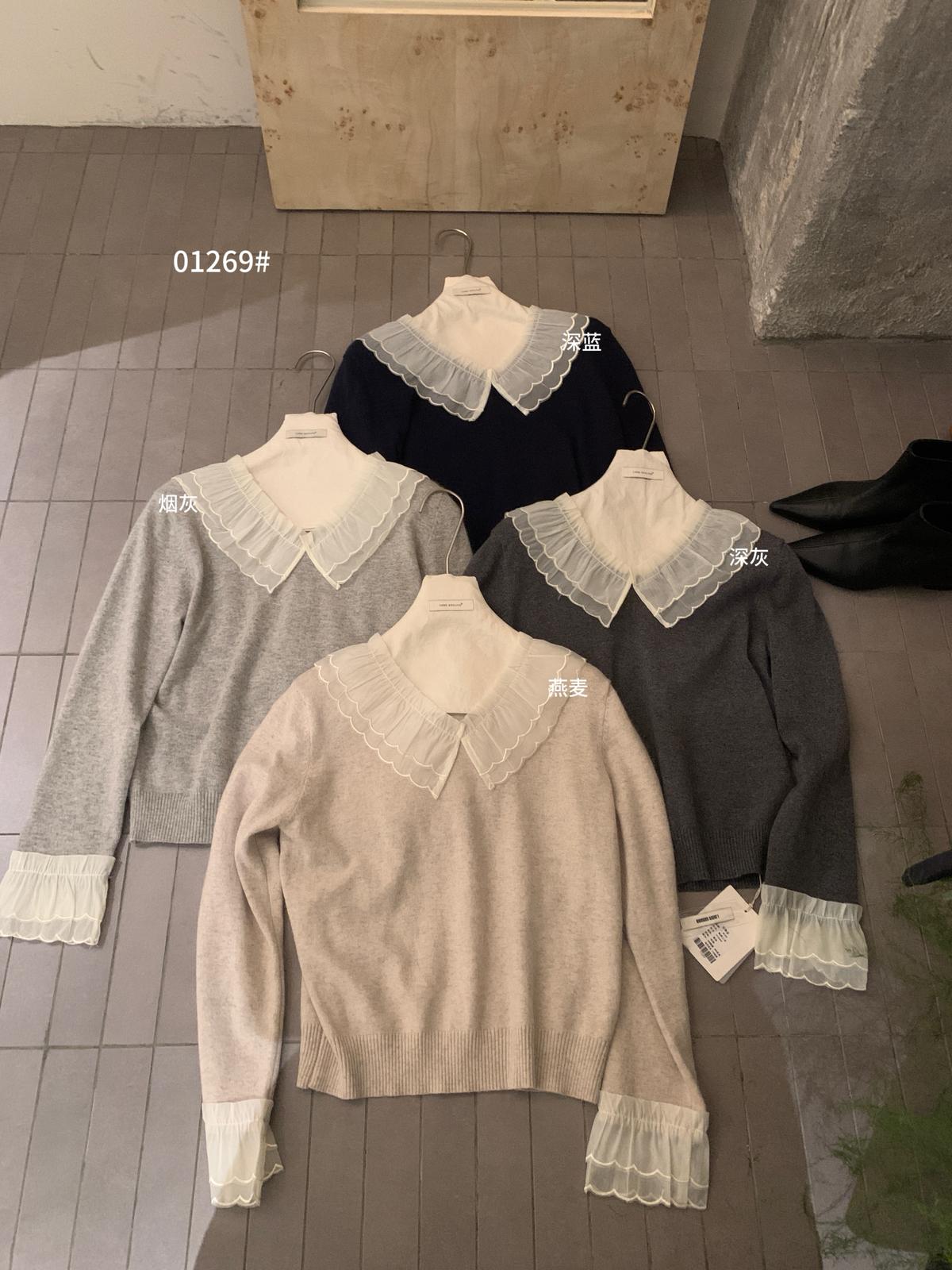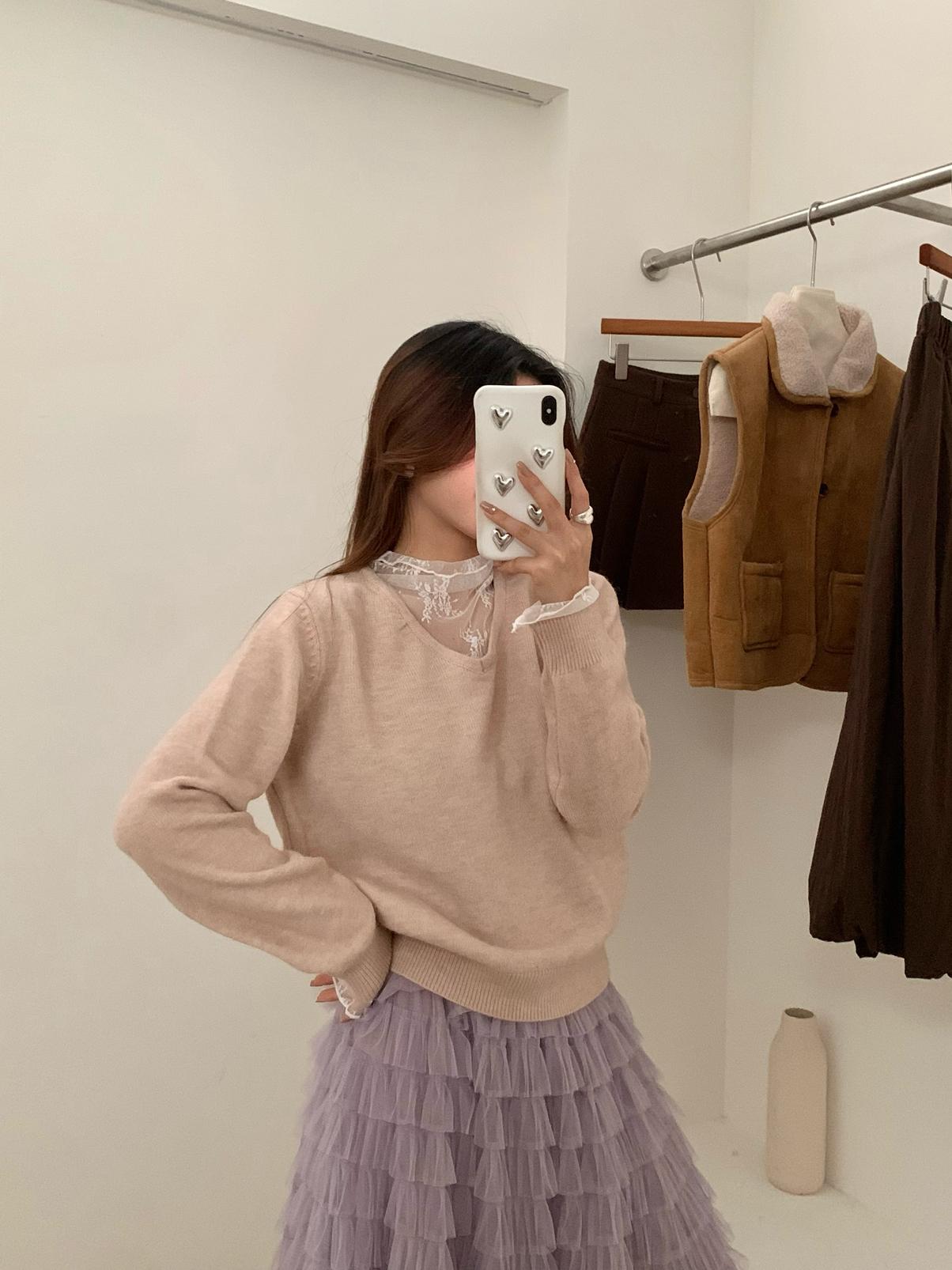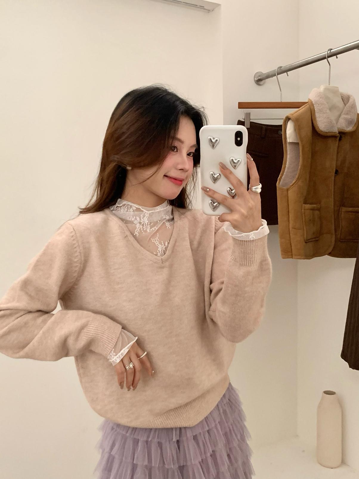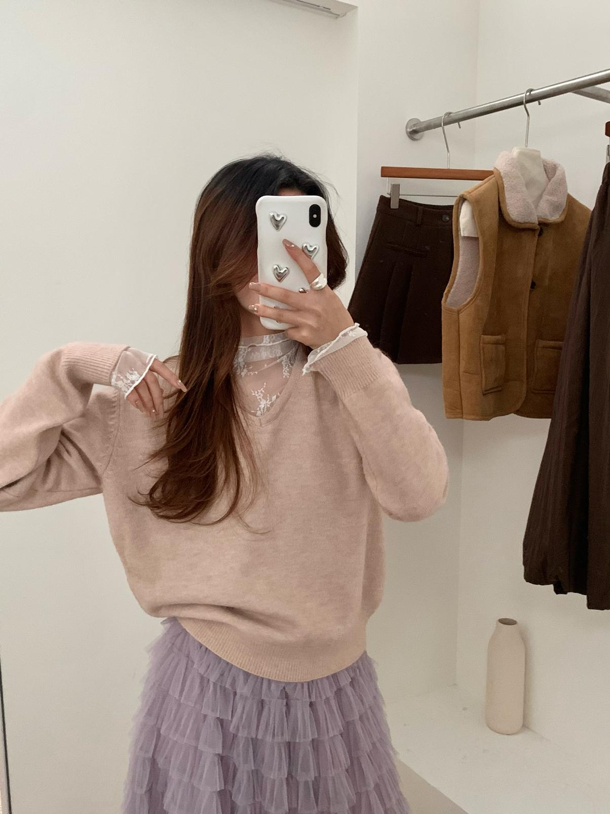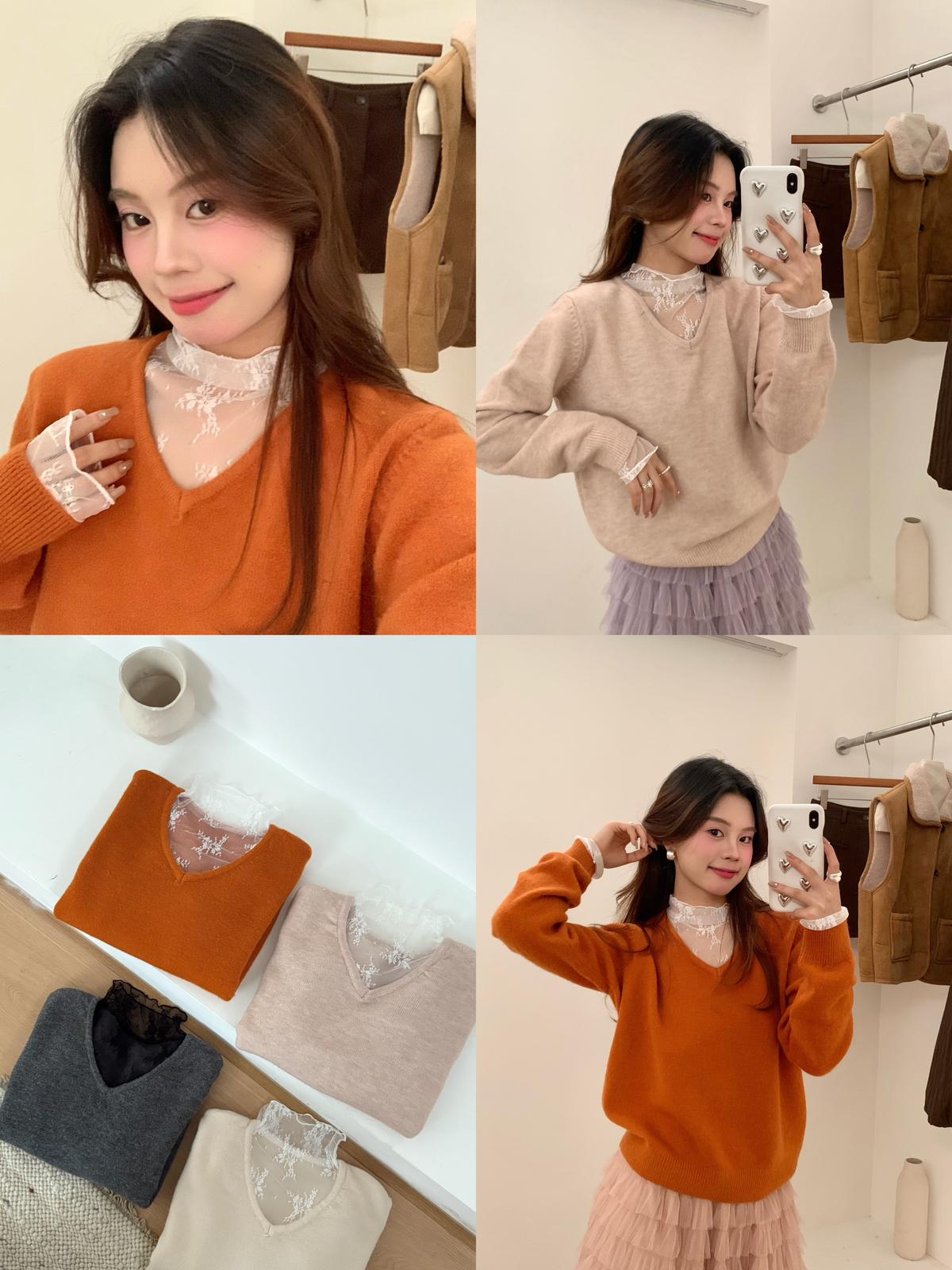 【C7663】氣質簡約花邊領針織衫(含4%羊羔毛)