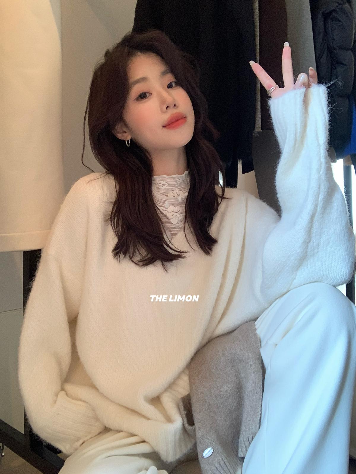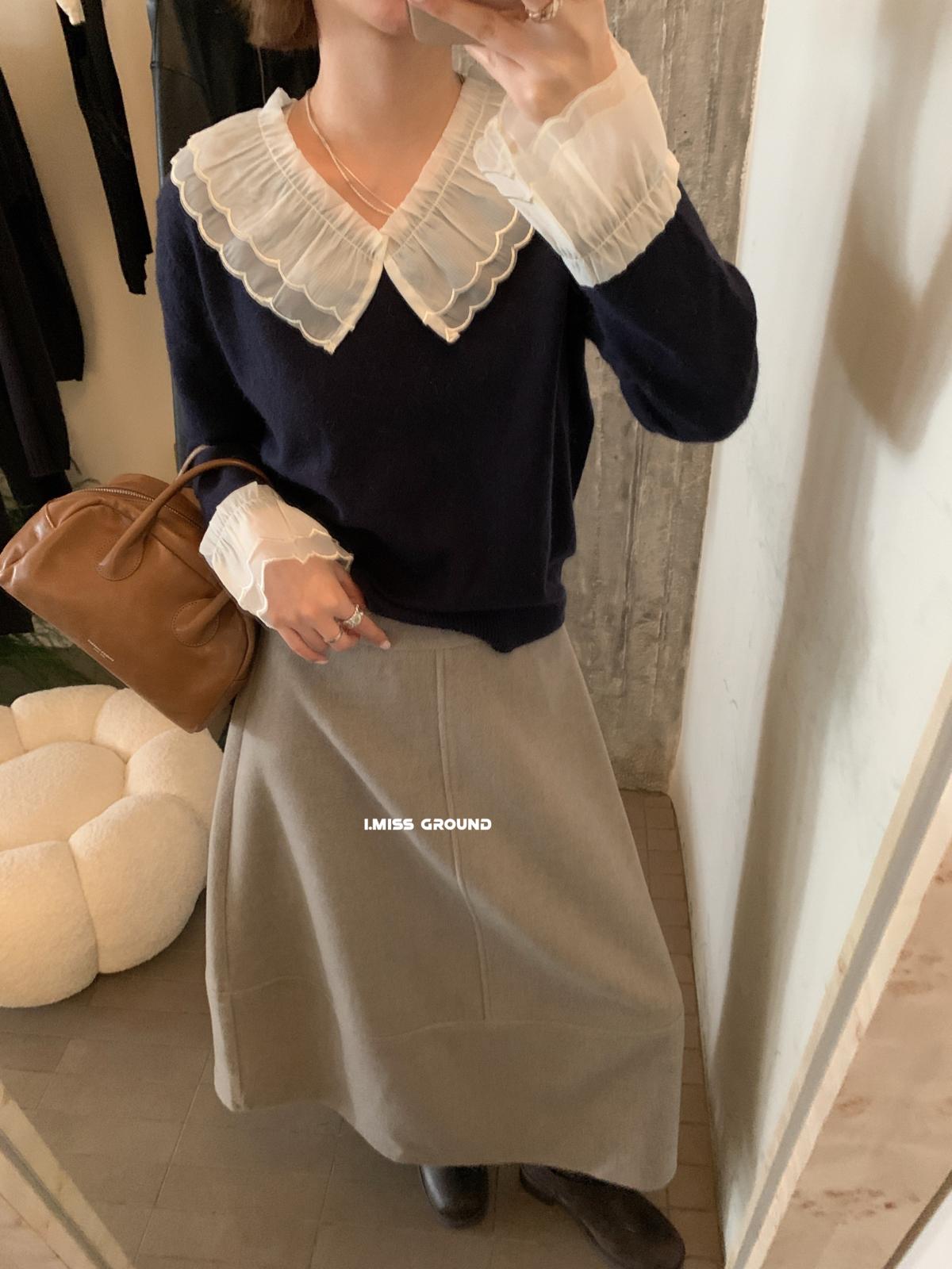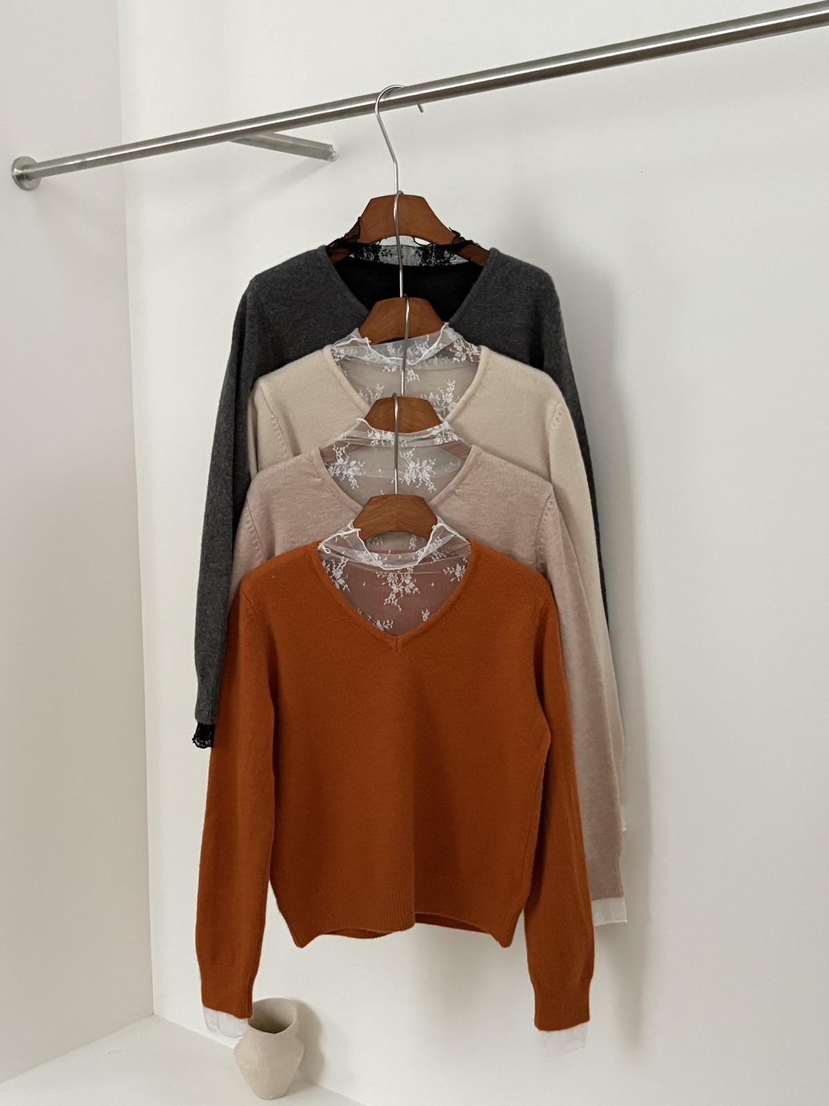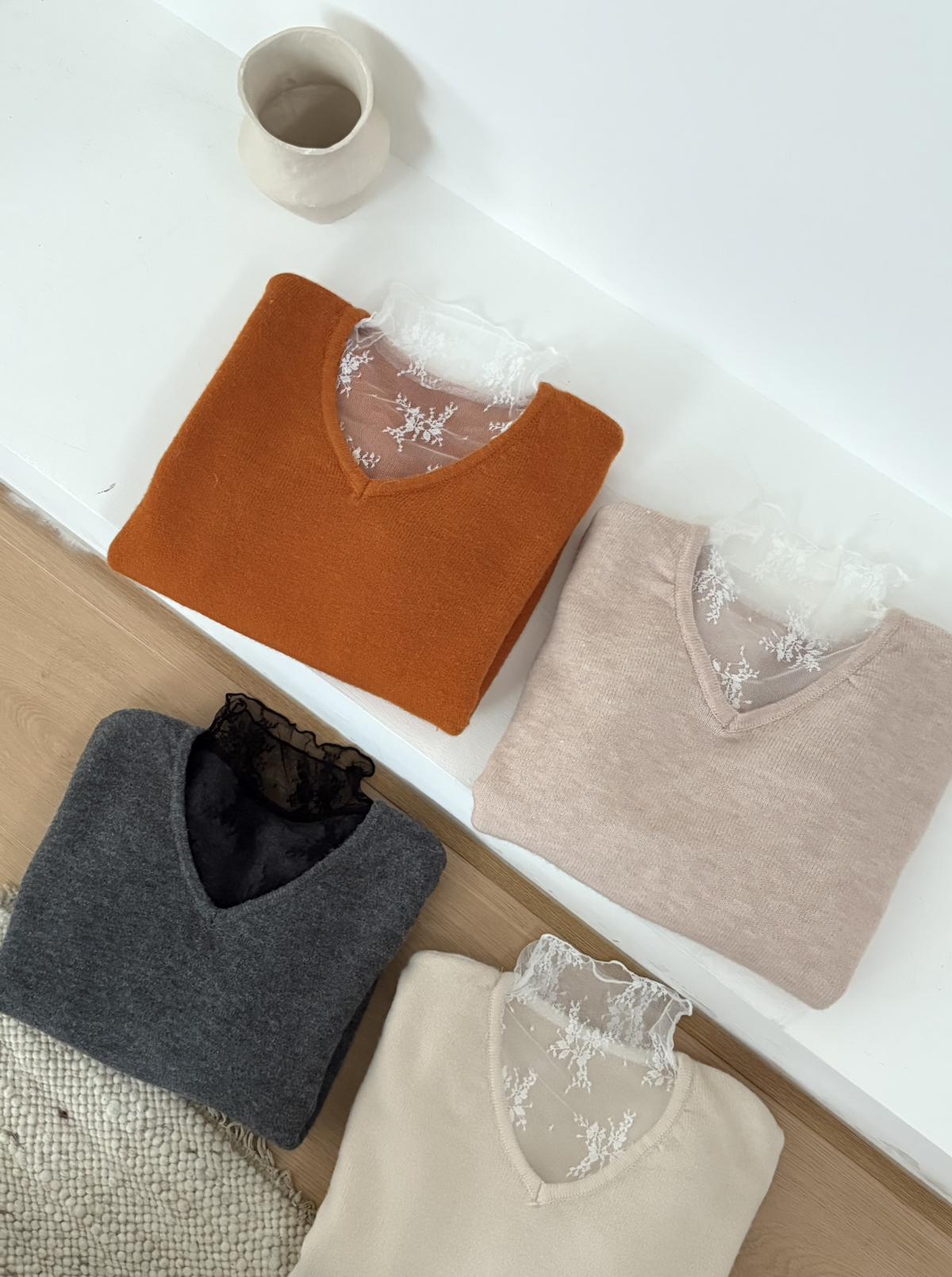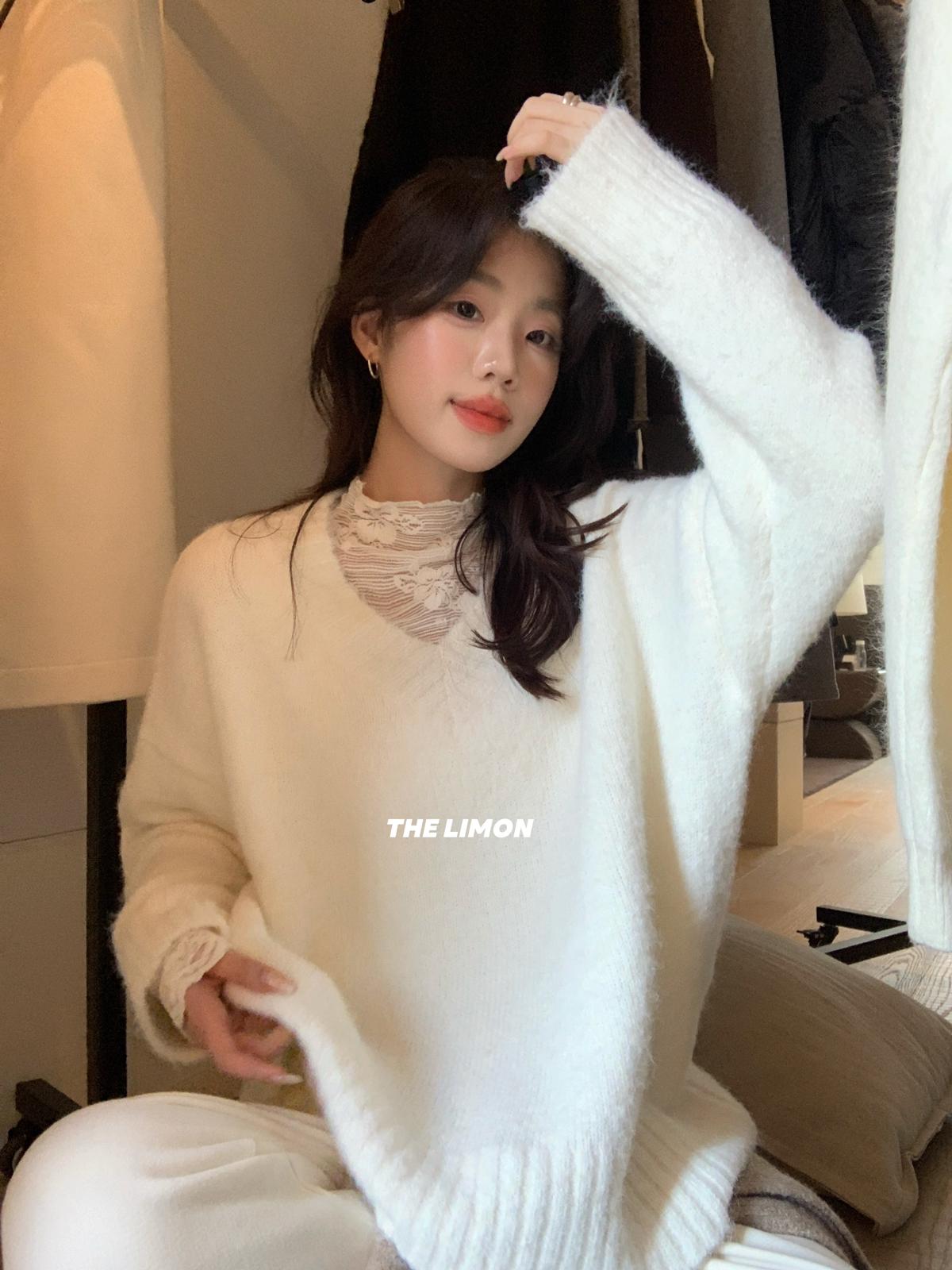 【C7663】氣質簡約花邊領針織衫(含4%羊羔毛)