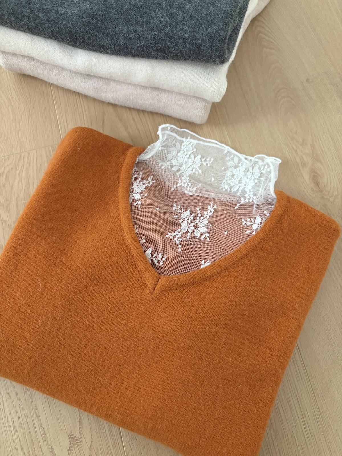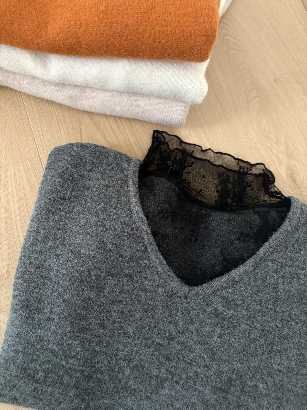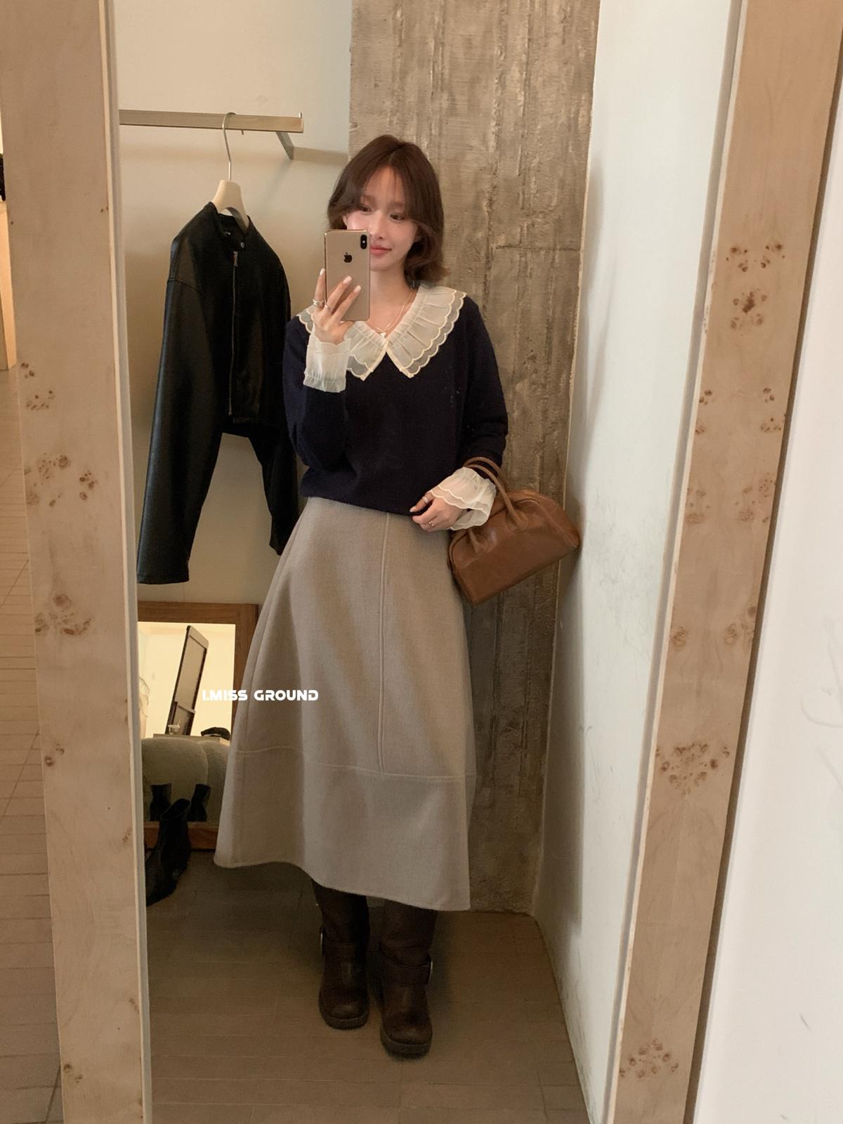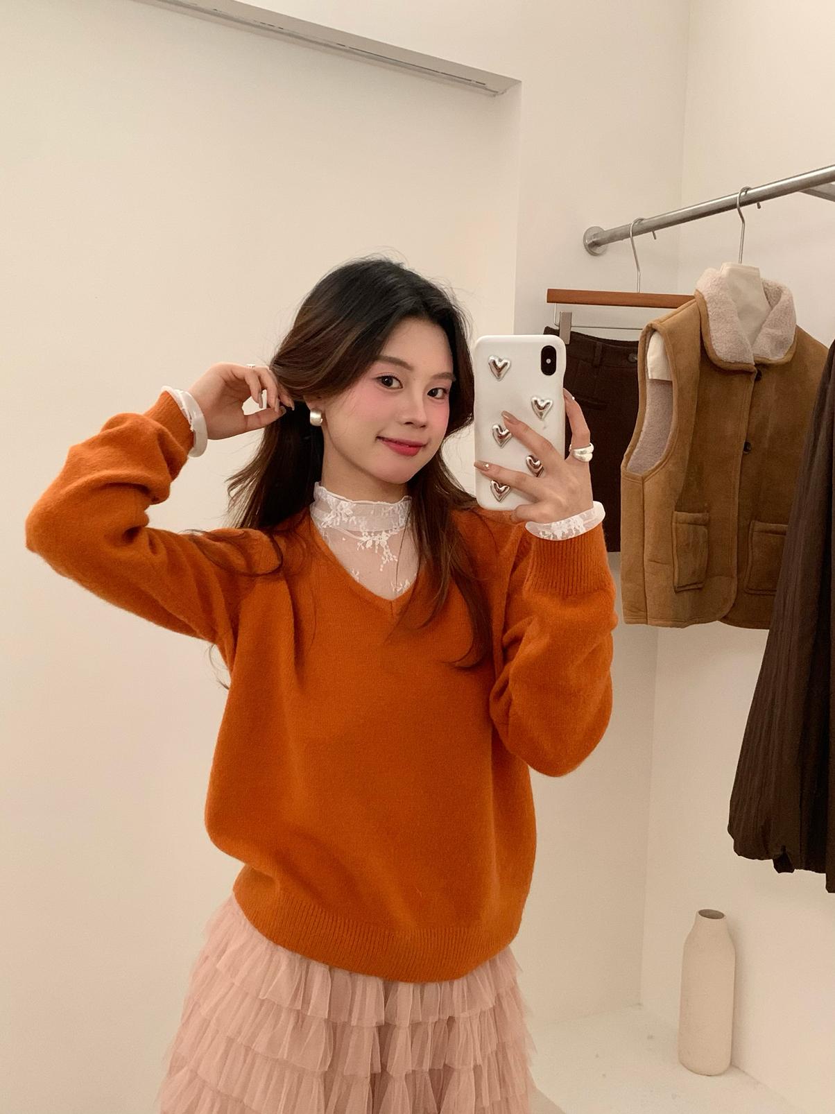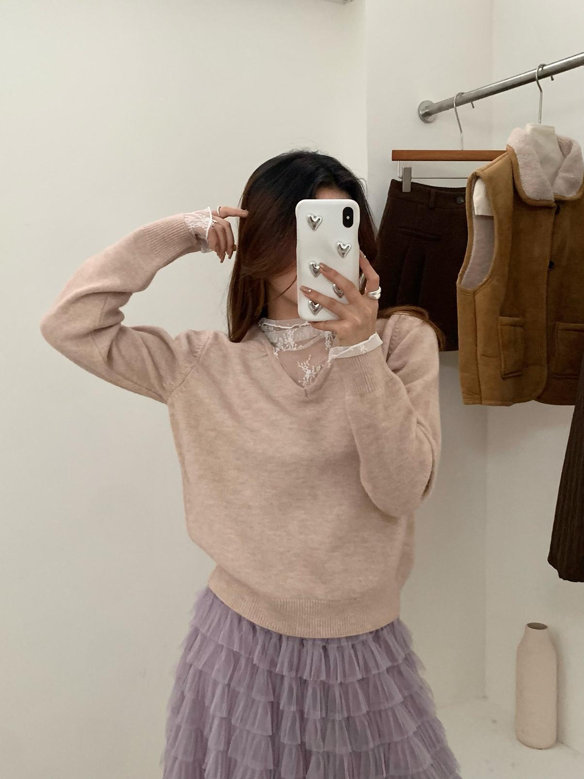 【C7663】氣質簡約花邊領針織衫(含4%羊羔毛)
