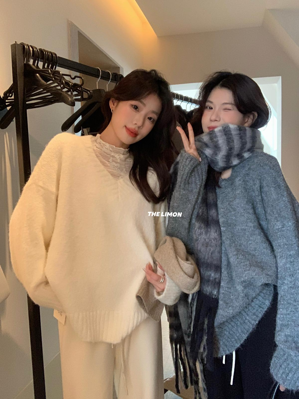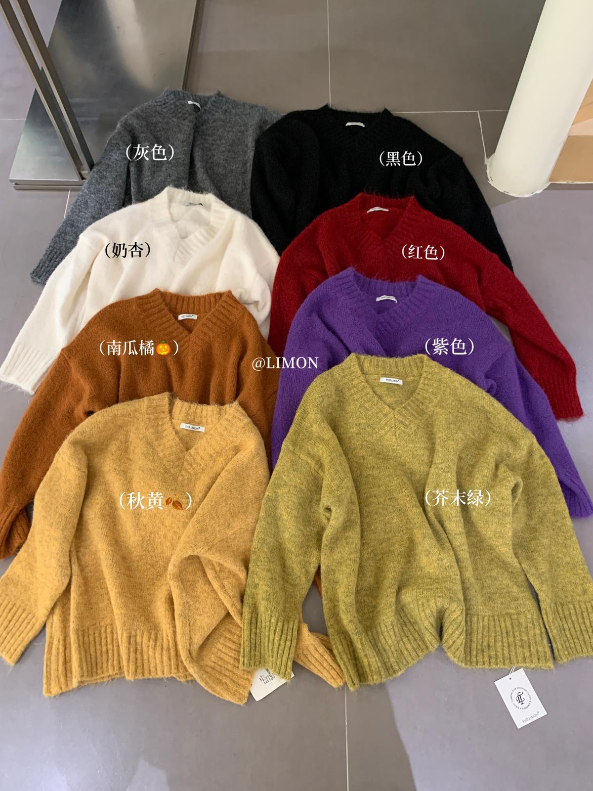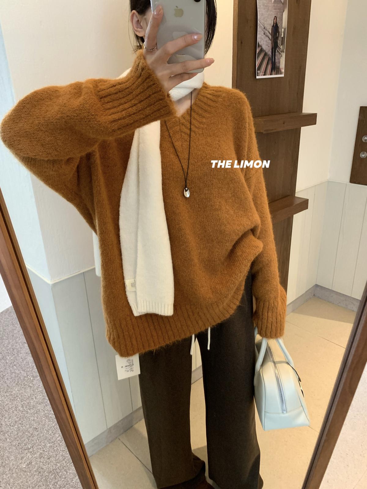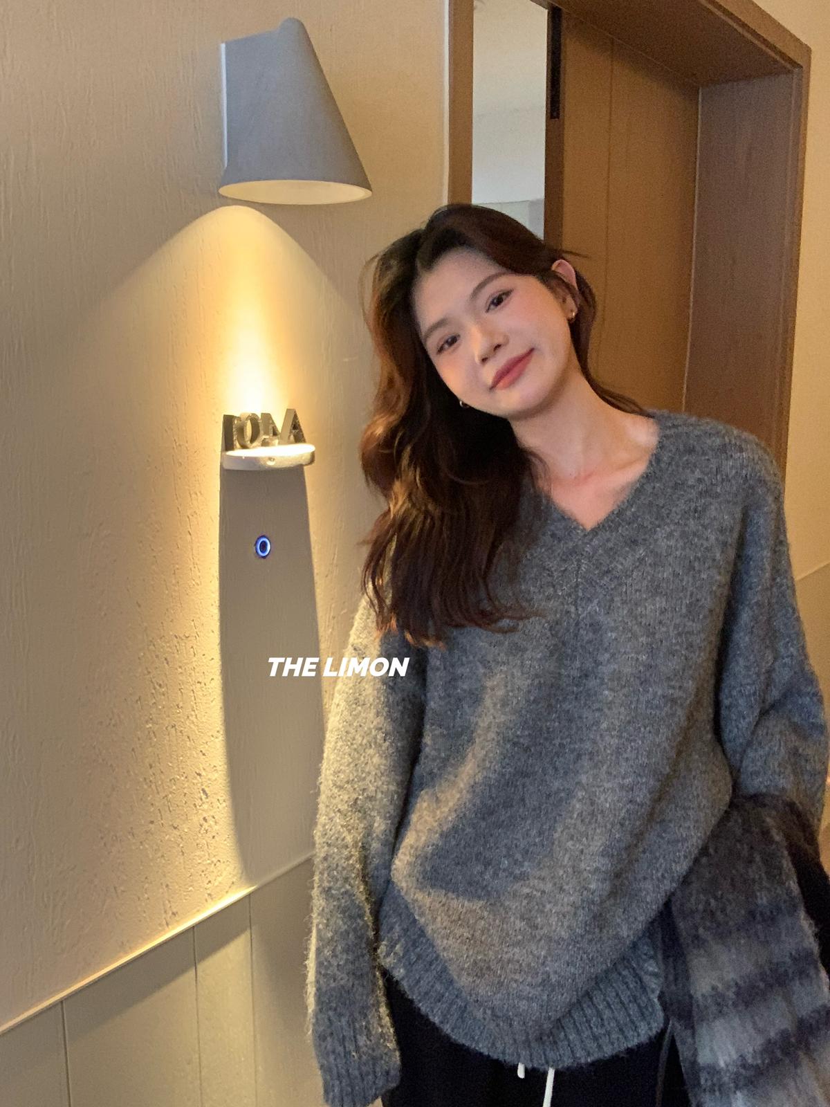 【C7678】奶fufu寬鬆慵懶百搭V領保暖毛衣(含8%羊毛)