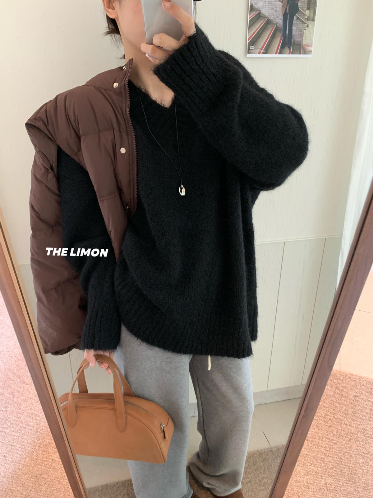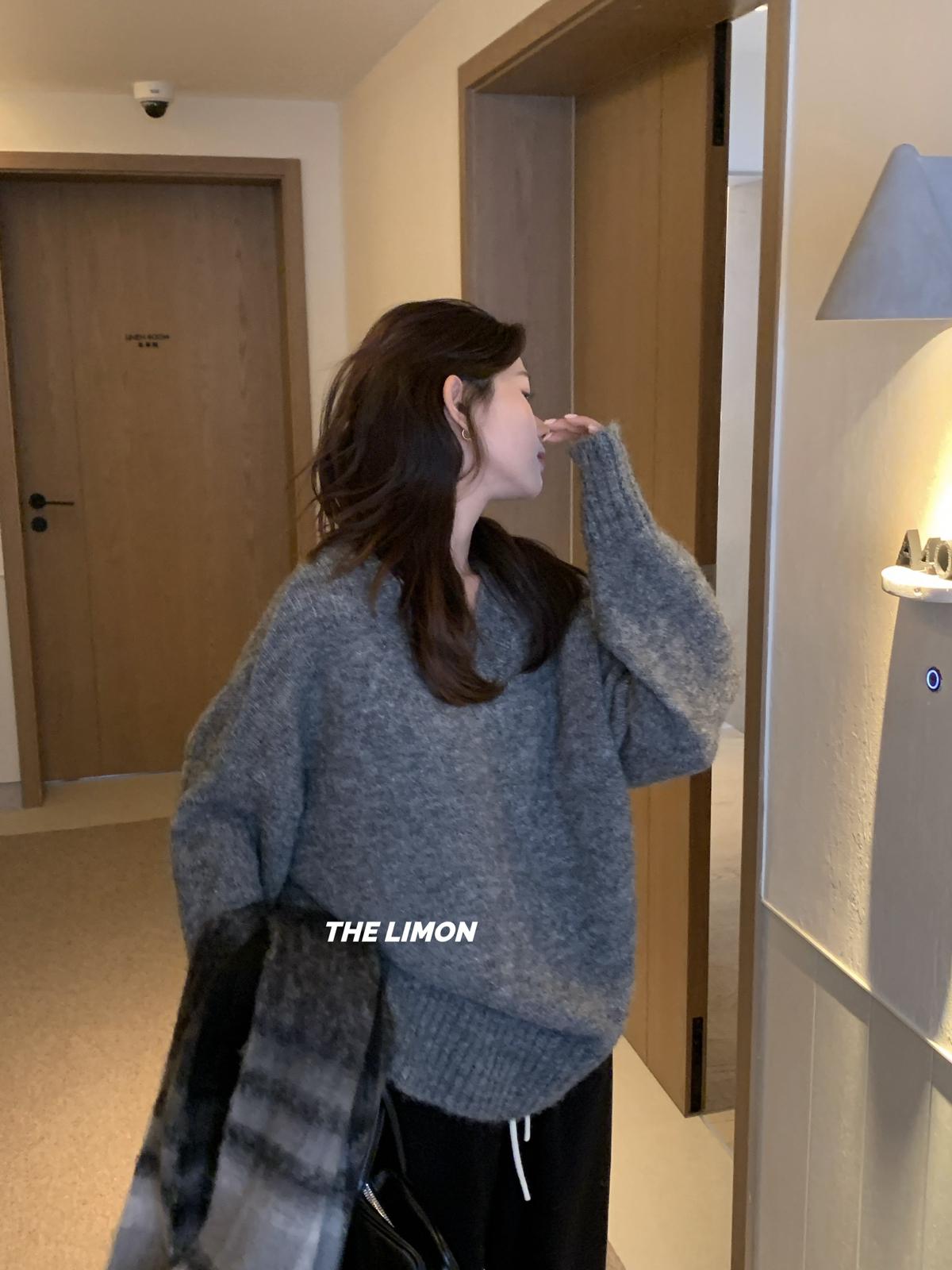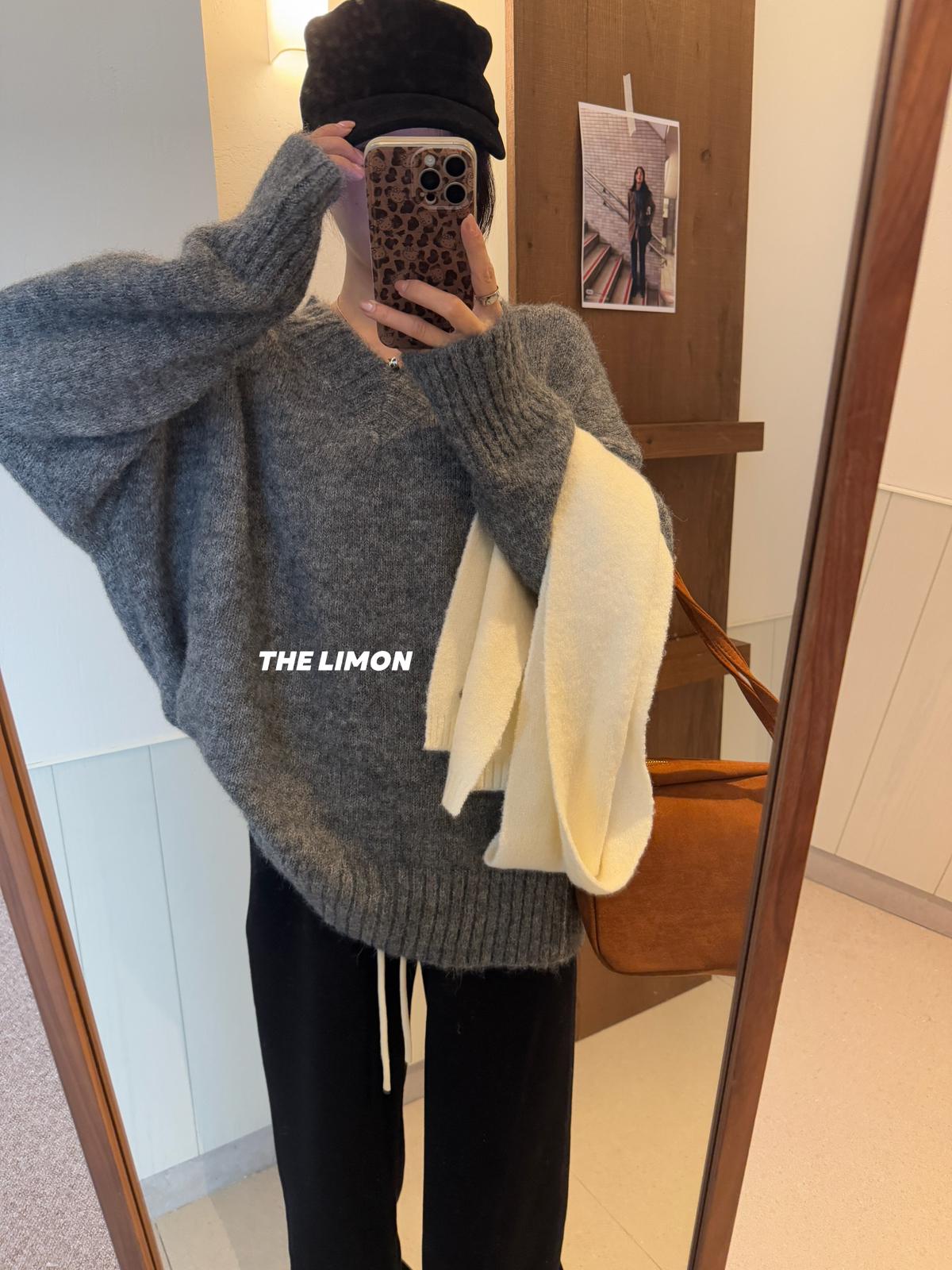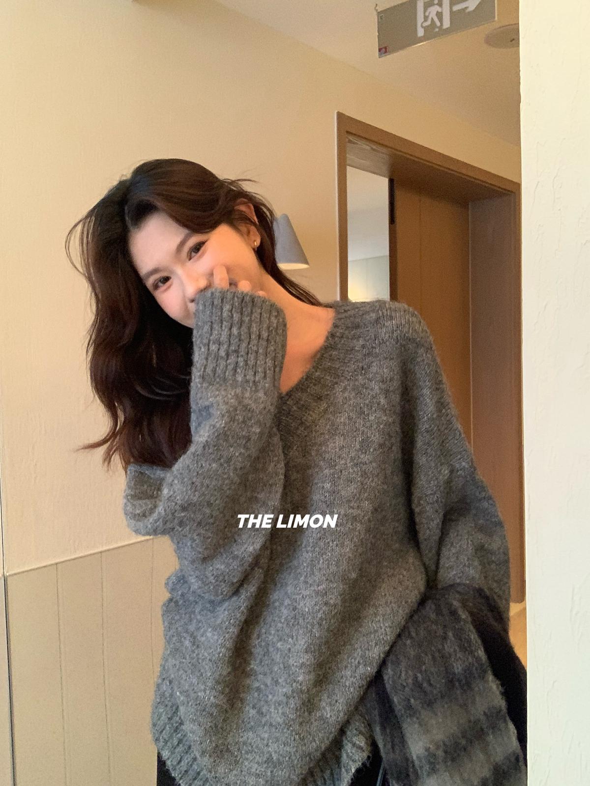 【C7678】奶fufu寬鬆慵懶百搭V領保暖毛衣(含8%羊毛)