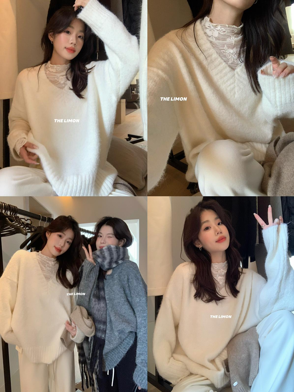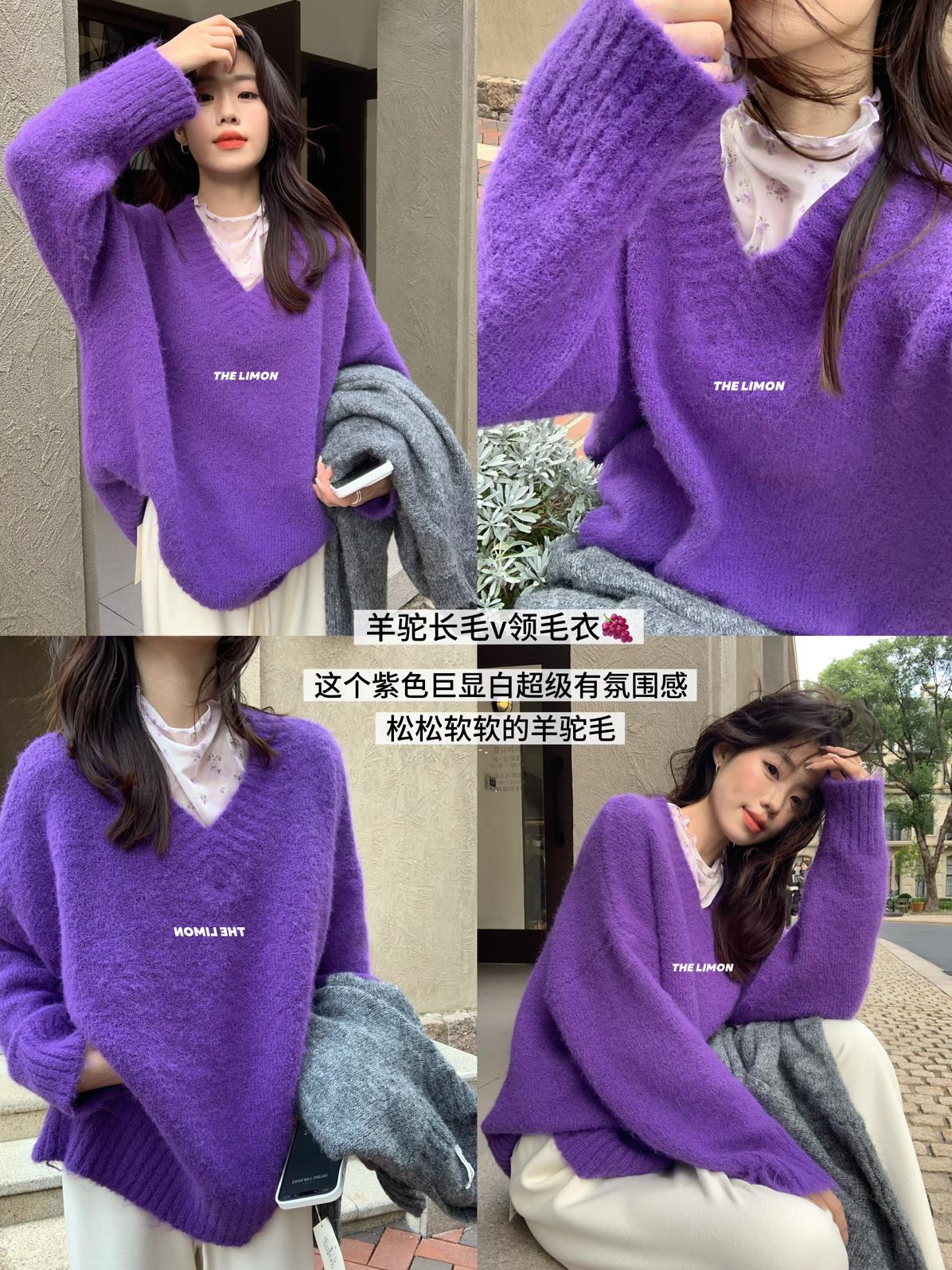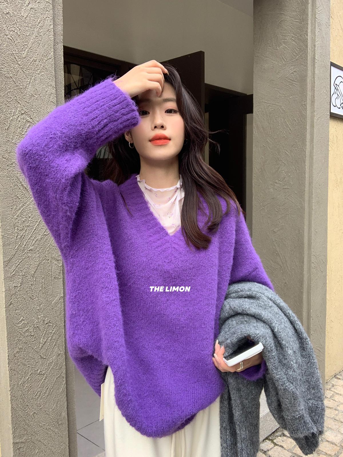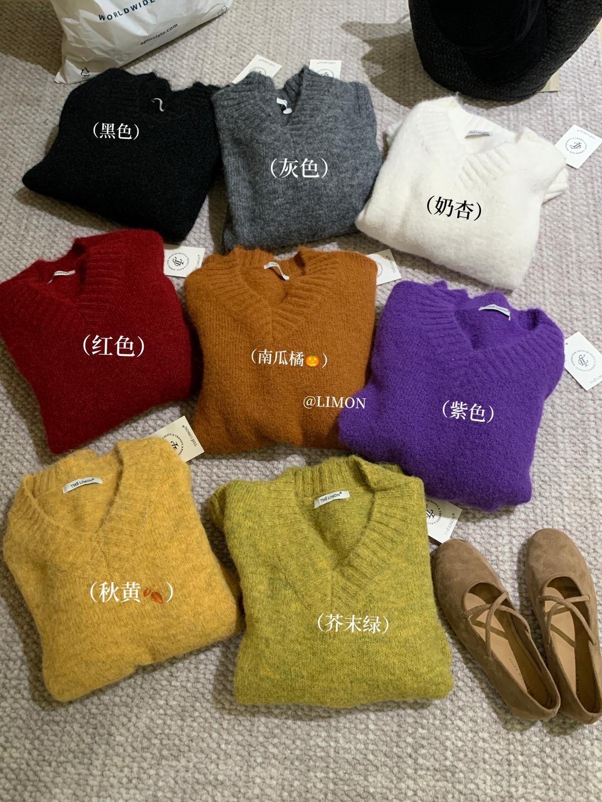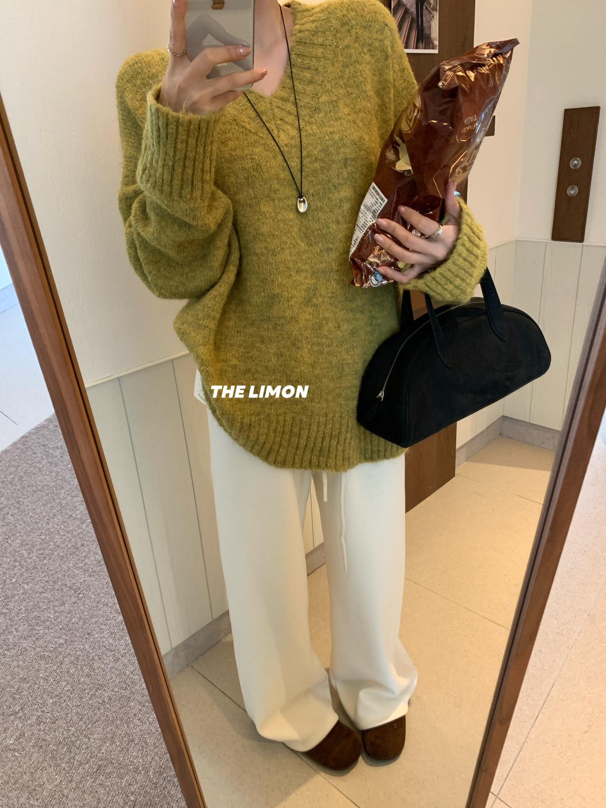 【C7678】奶fufu寬鬆慵懶百搭V領保暖毛衣(含8%羊毛)