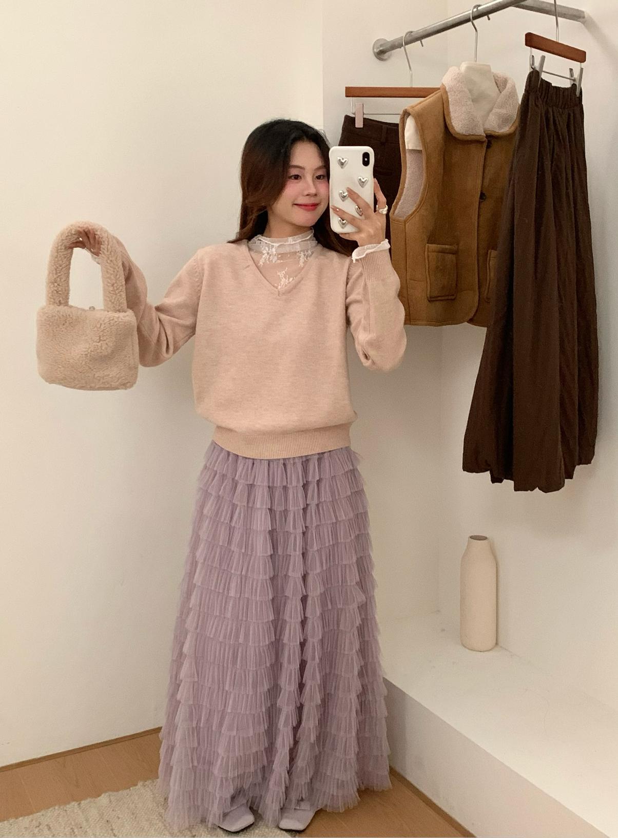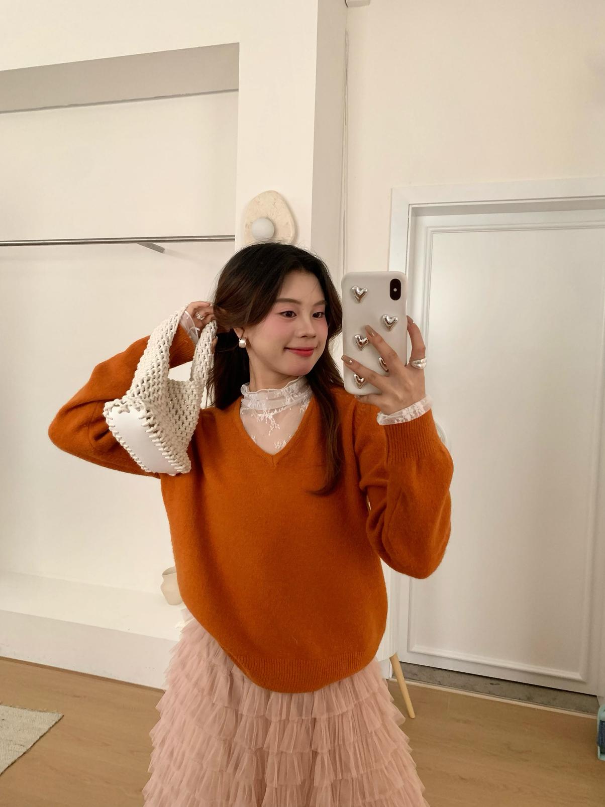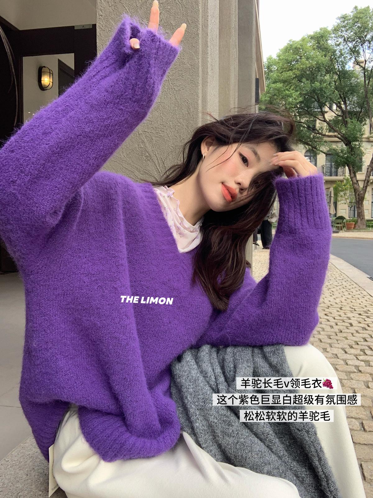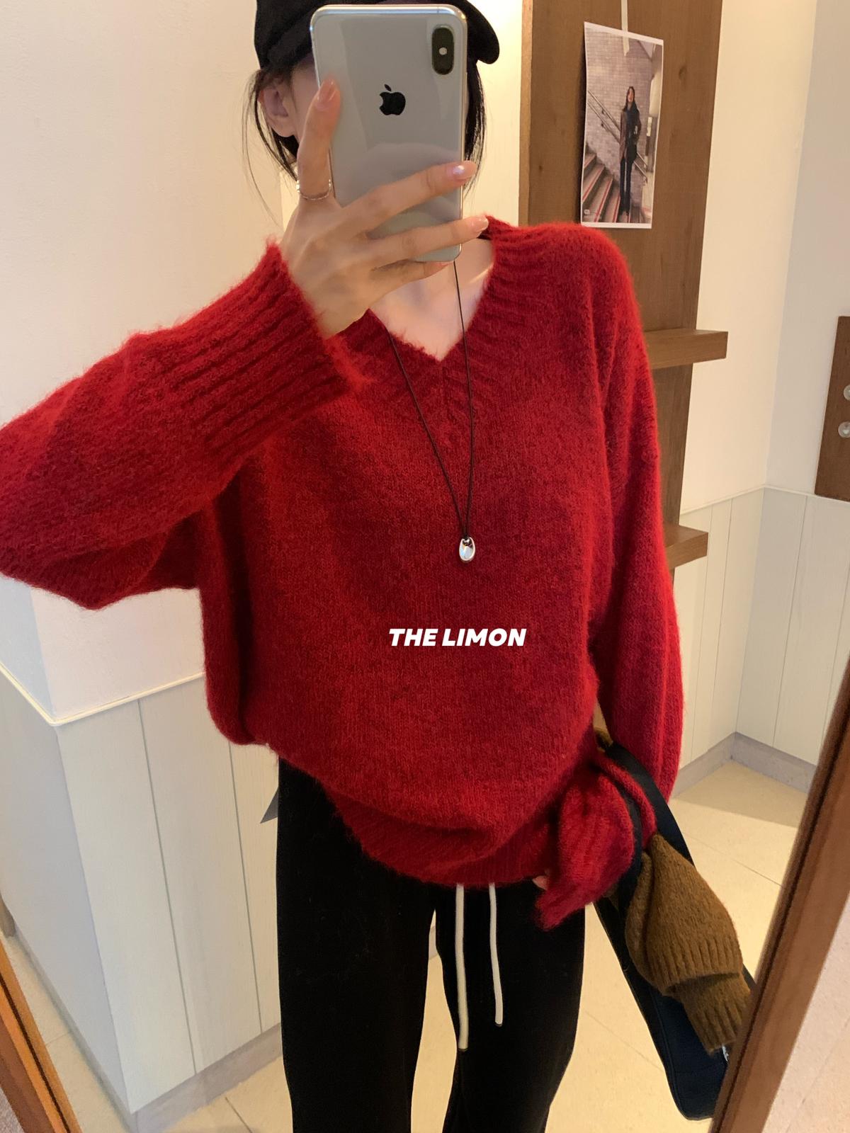 【C7678】奶fufu寬鬆慵懶百搭V領保暖毛衣(含8%羊毛)