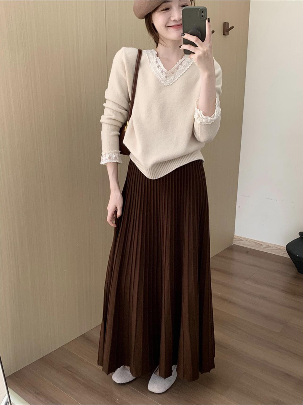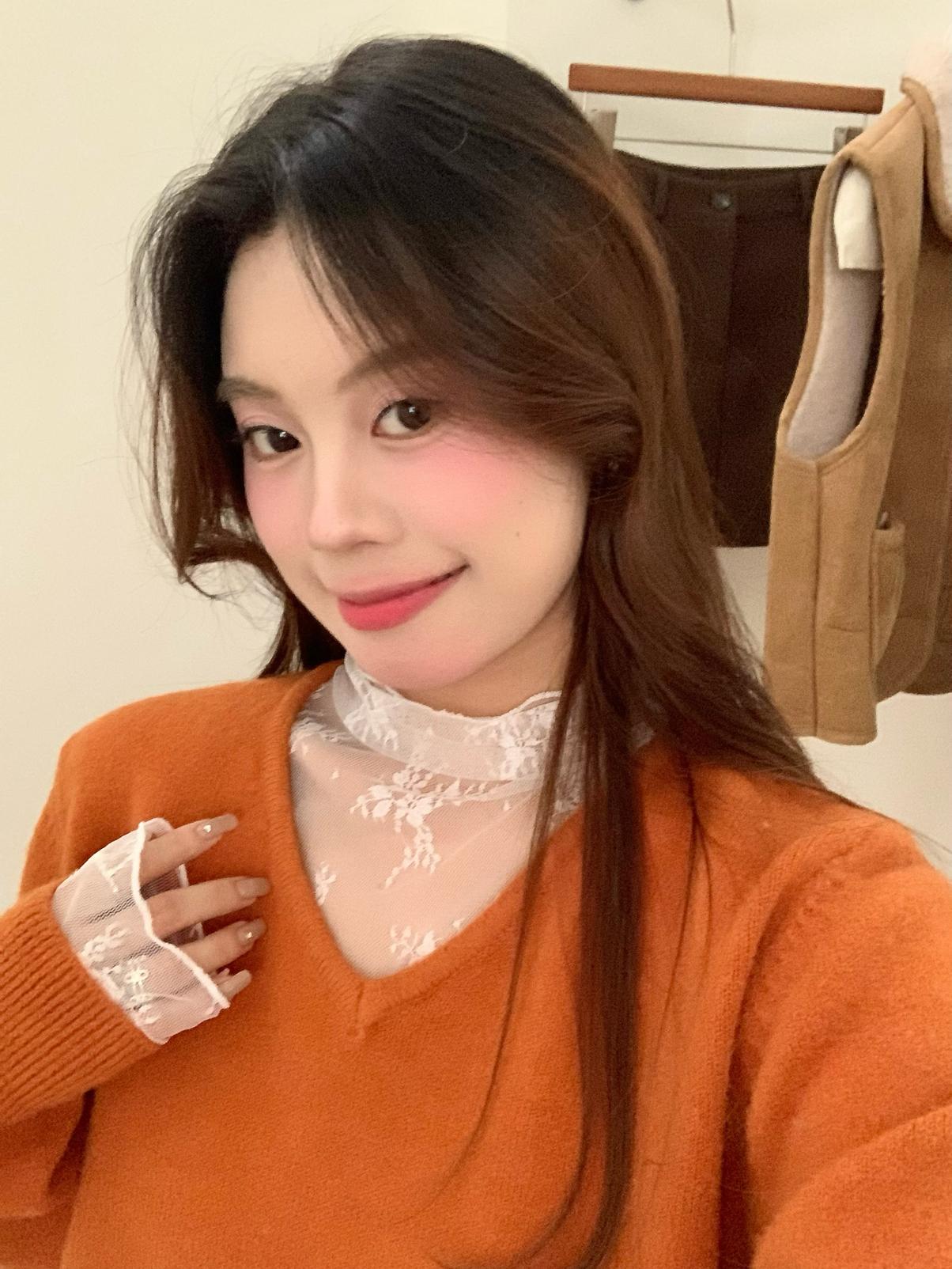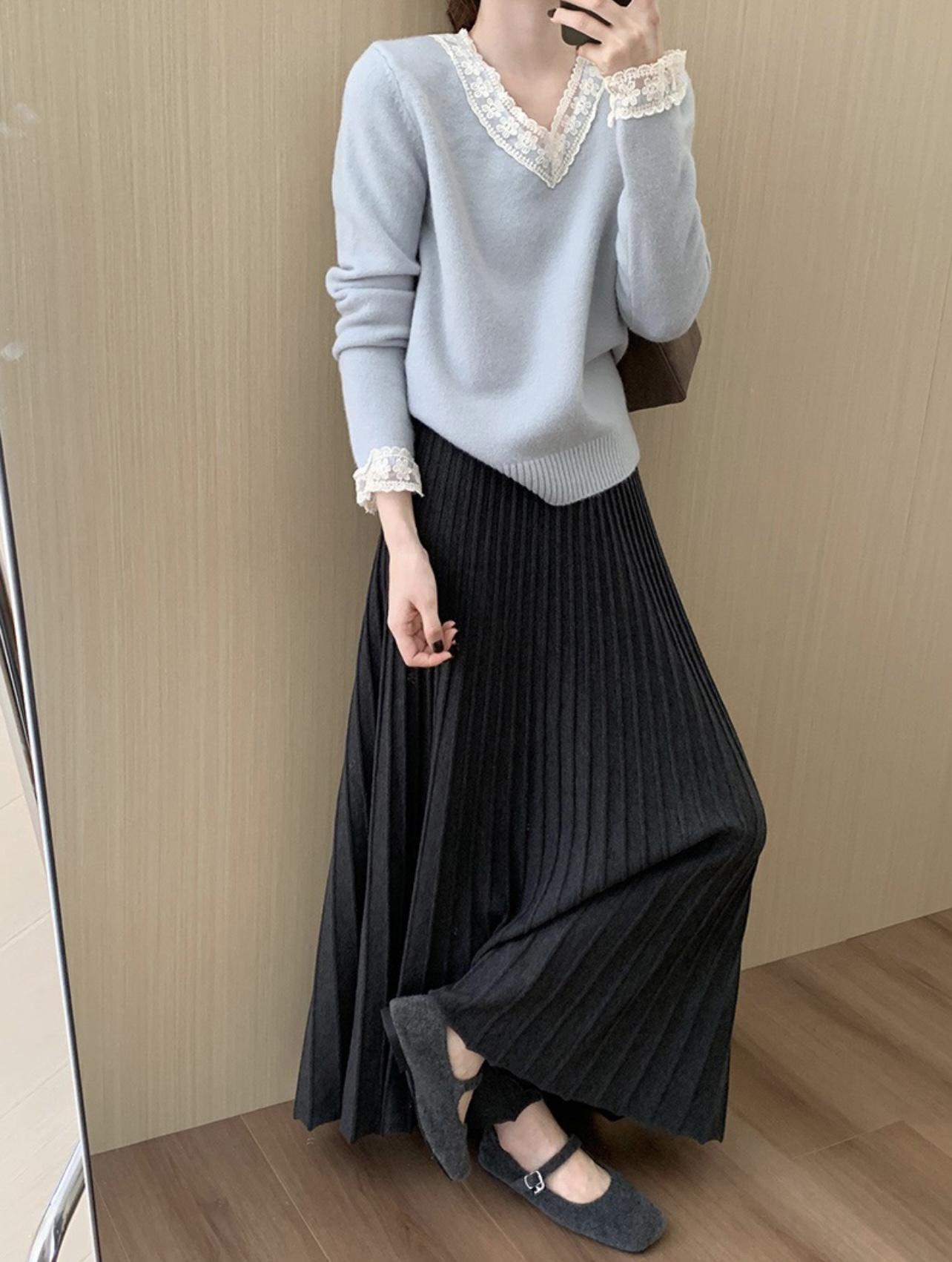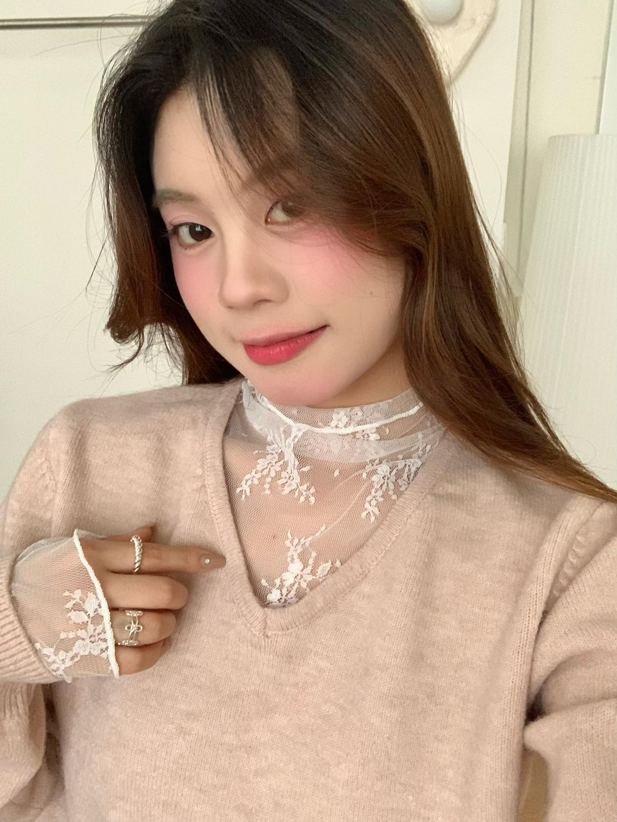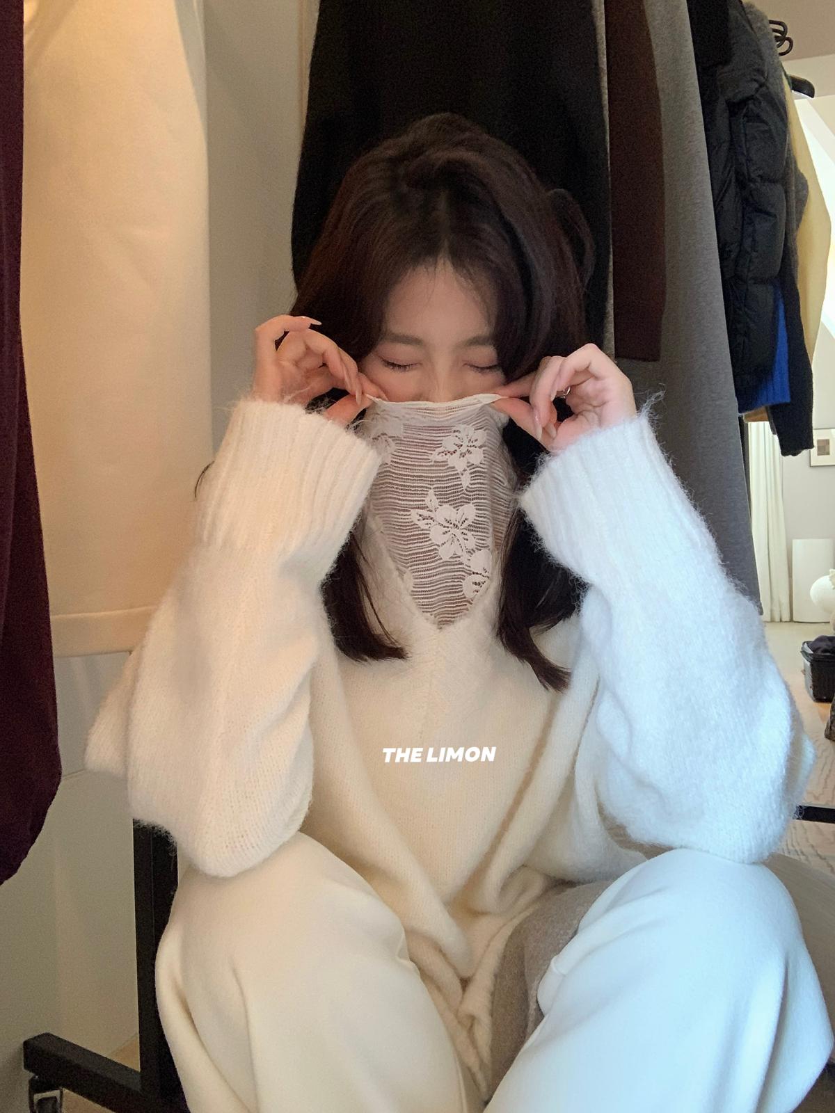 【C7656】2025冬季韓系蕾絲拼接半高領女新款時尚溫柔舒服超百搭顯瘦保暖毛衣