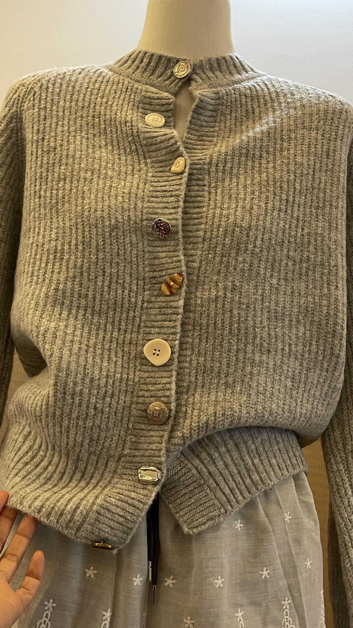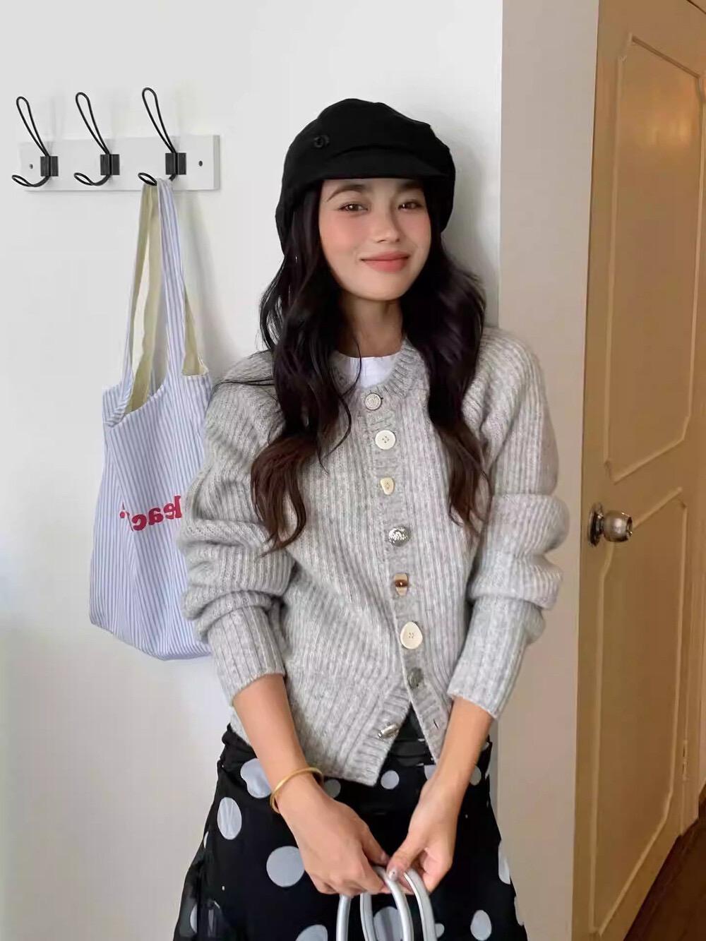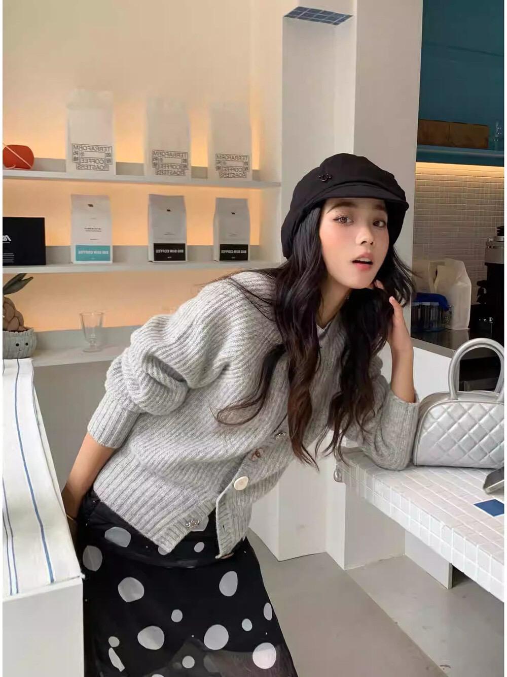 【C7659】韓系圓領異形釦針織保暖毛衣