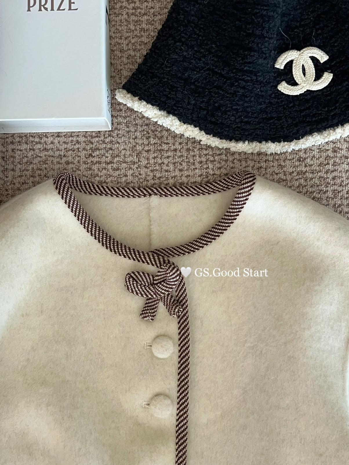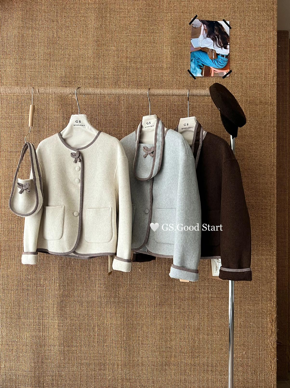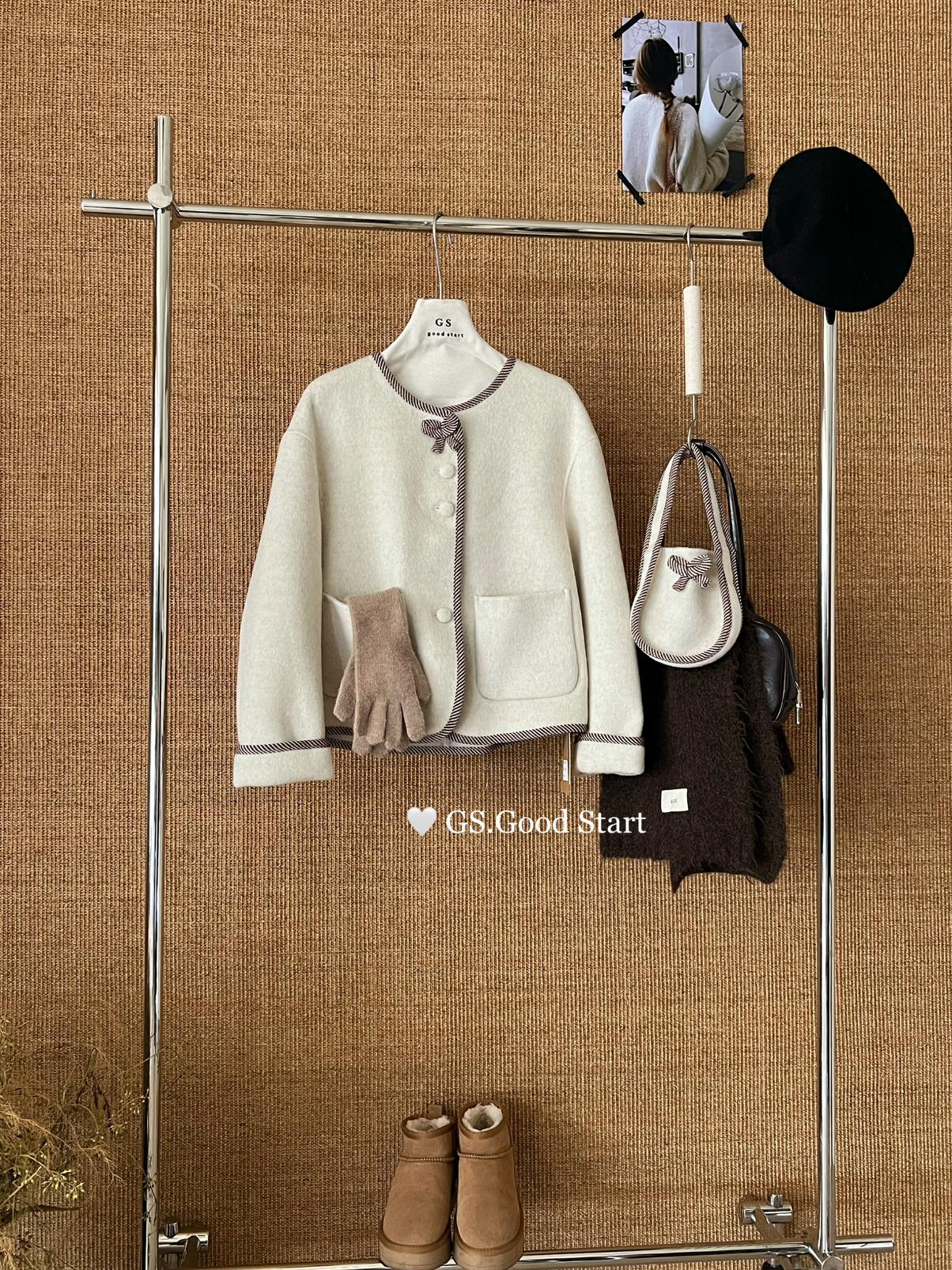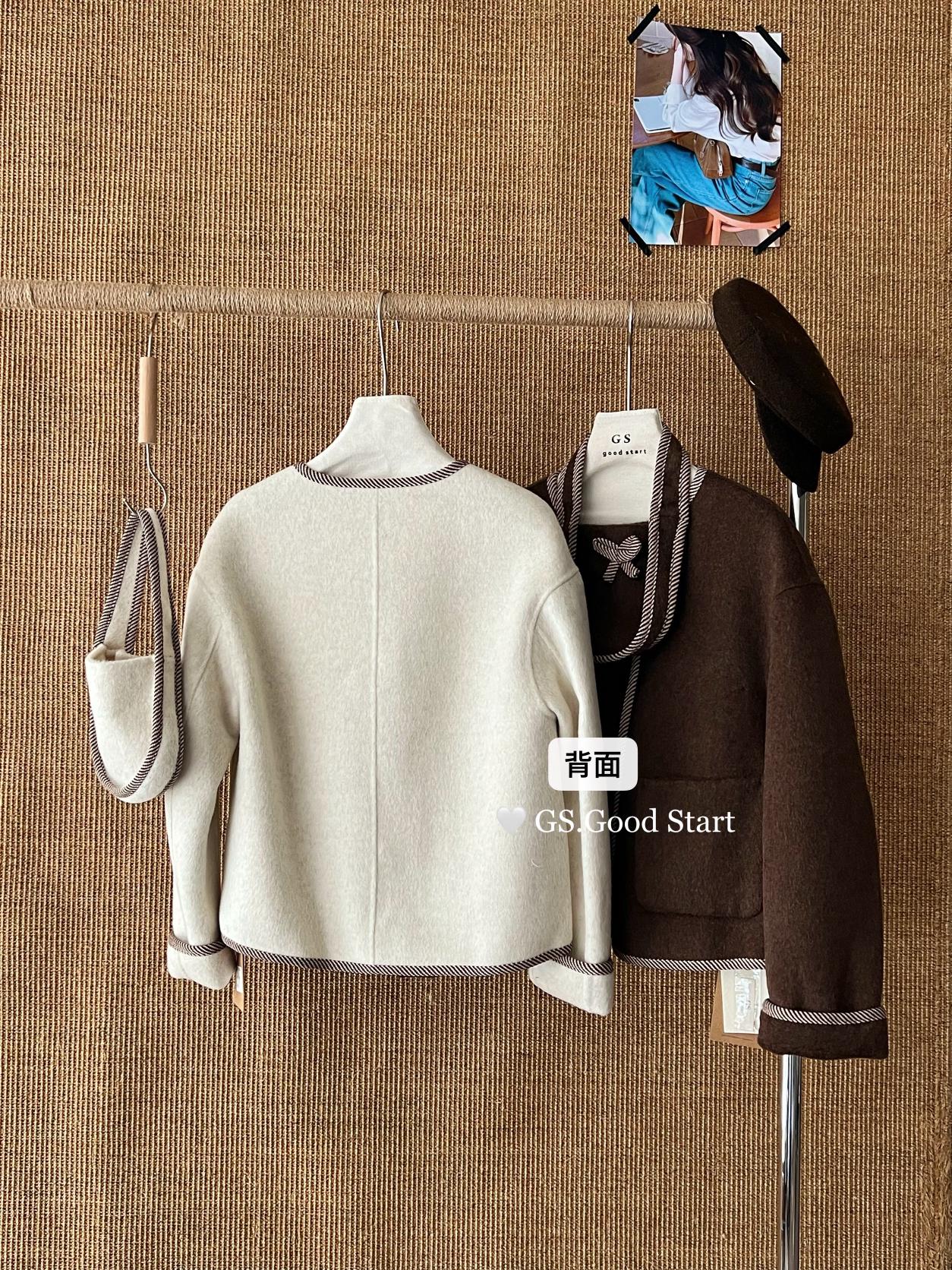 【C7688】按頭安利*短款超提比例!小個子必入!冬季甜美小香風撞色減齡羊毛外套(配包包)(含70.2%綿羊毛)