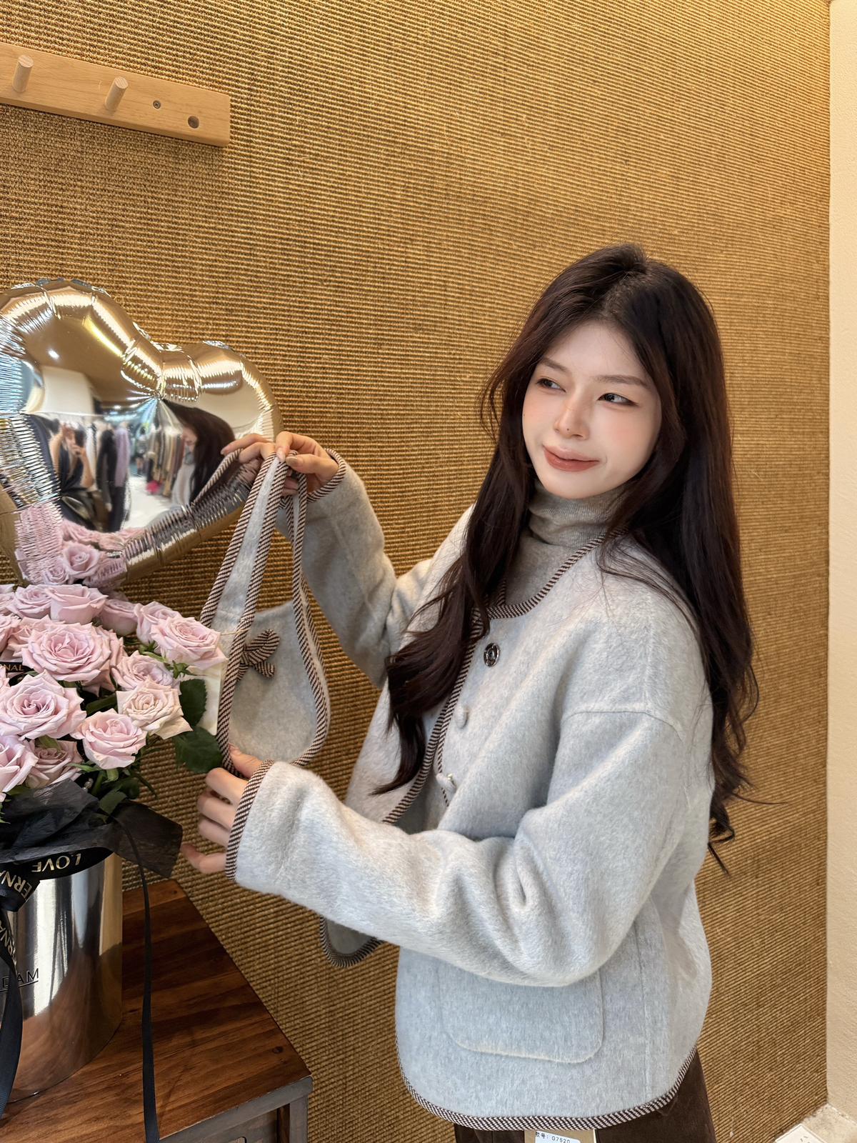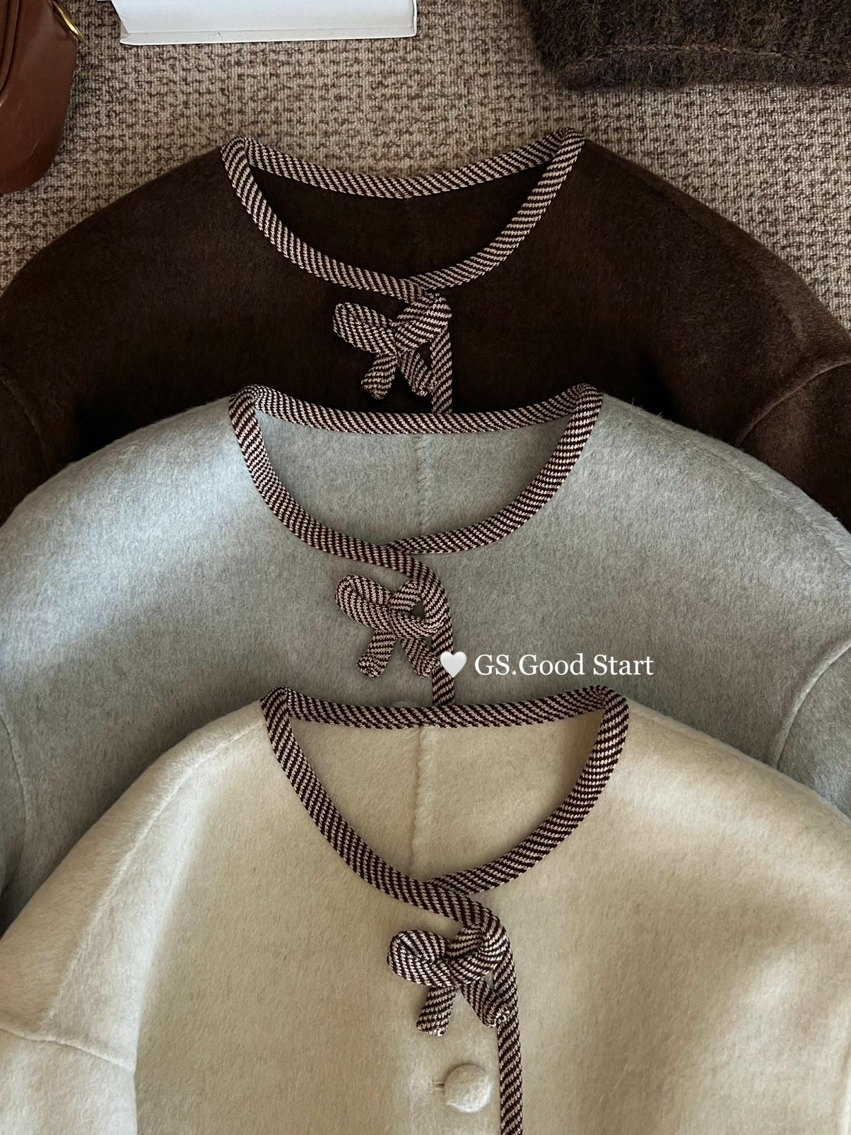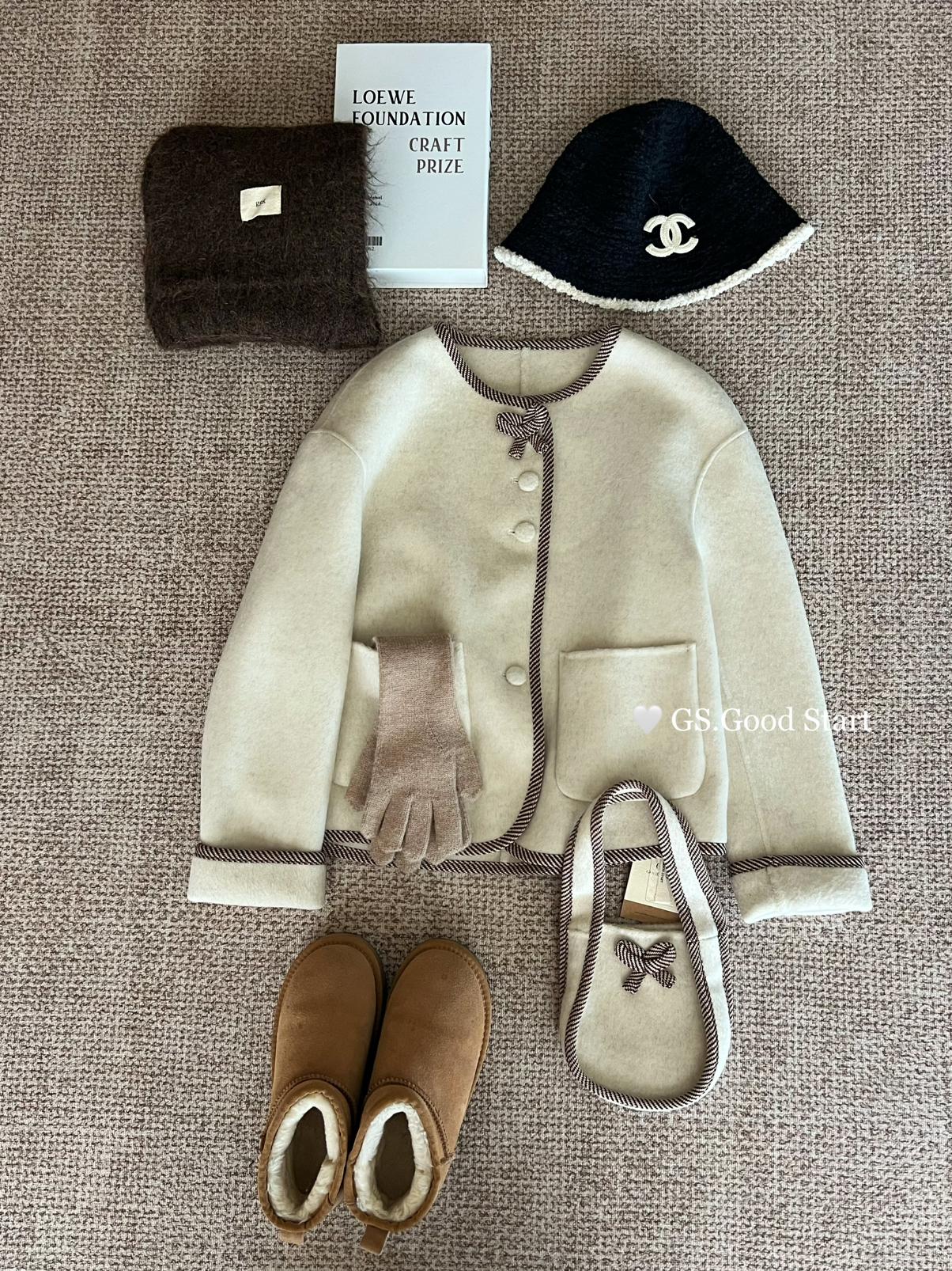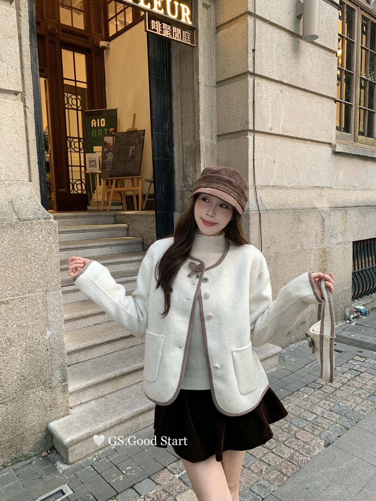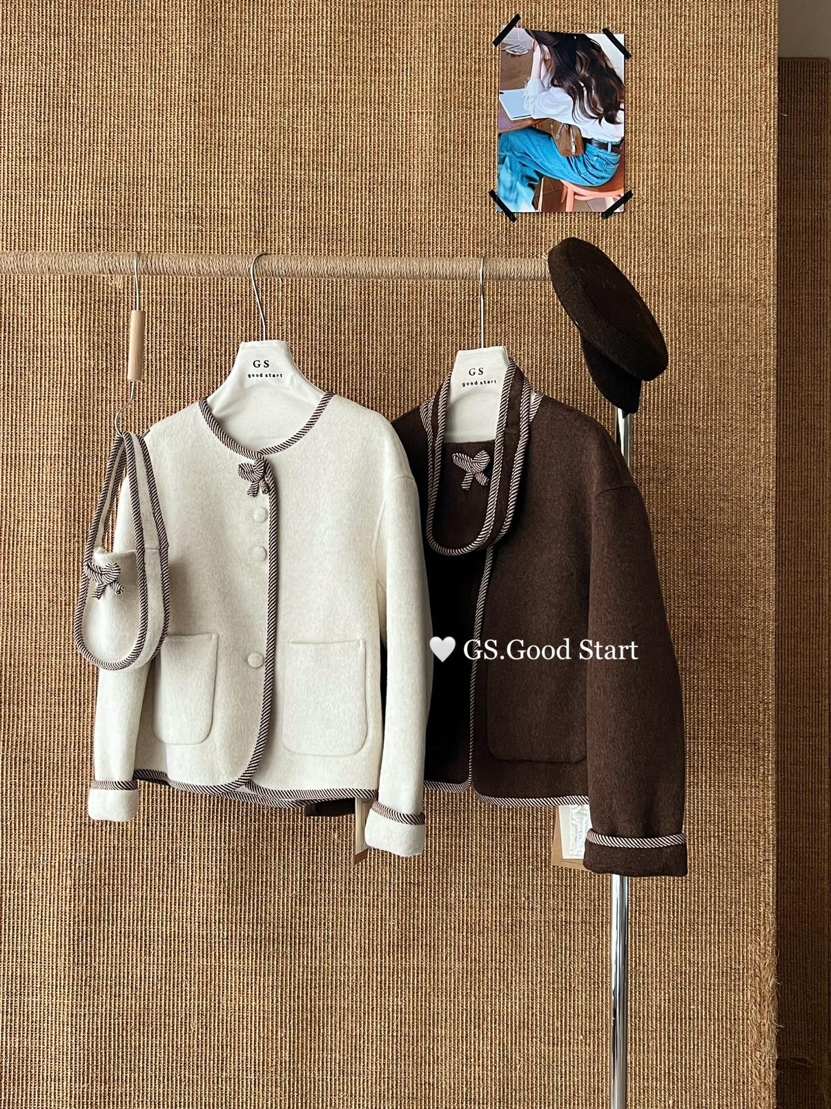 【C7688】按頭安利*短款超提比例!小個子必入!冬季甜美小香風撞色減齡羊毛外套(配包包)(含70.2%綿羊毛)