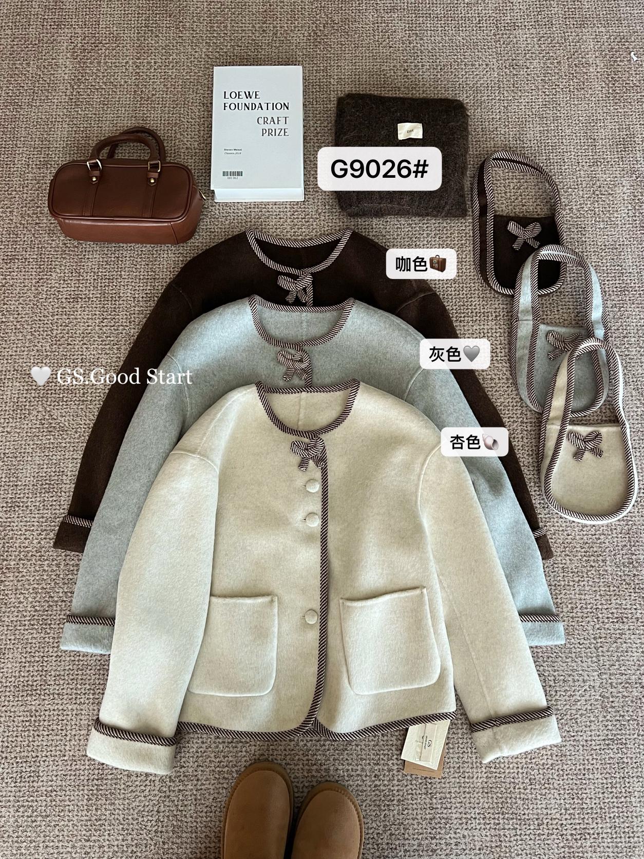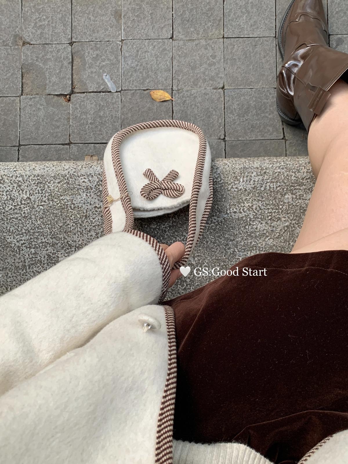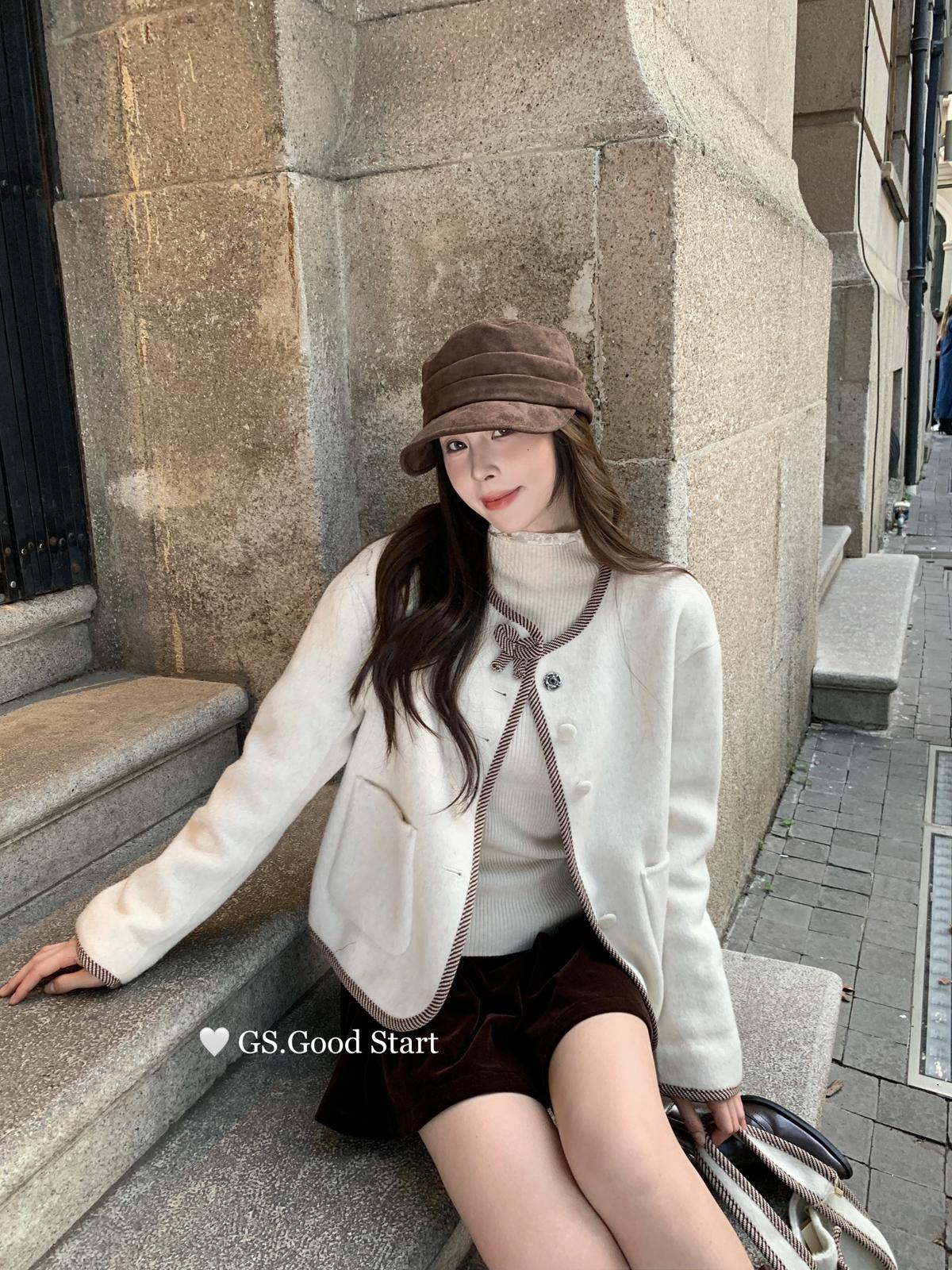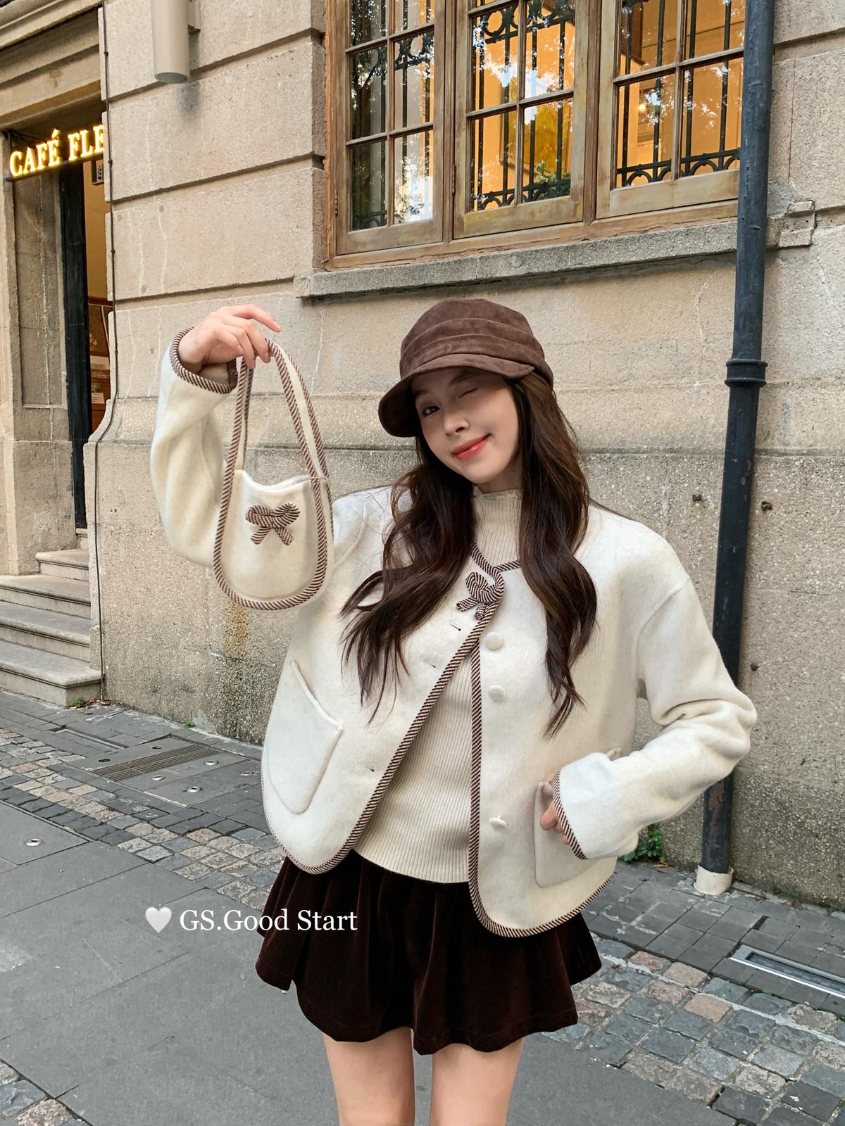 【C7688】按頭安利*短款超提比例!小個子必入!冬季甜美小香風撞色減齡羊毛外套(配包包)(含70.2%綿羊毛)