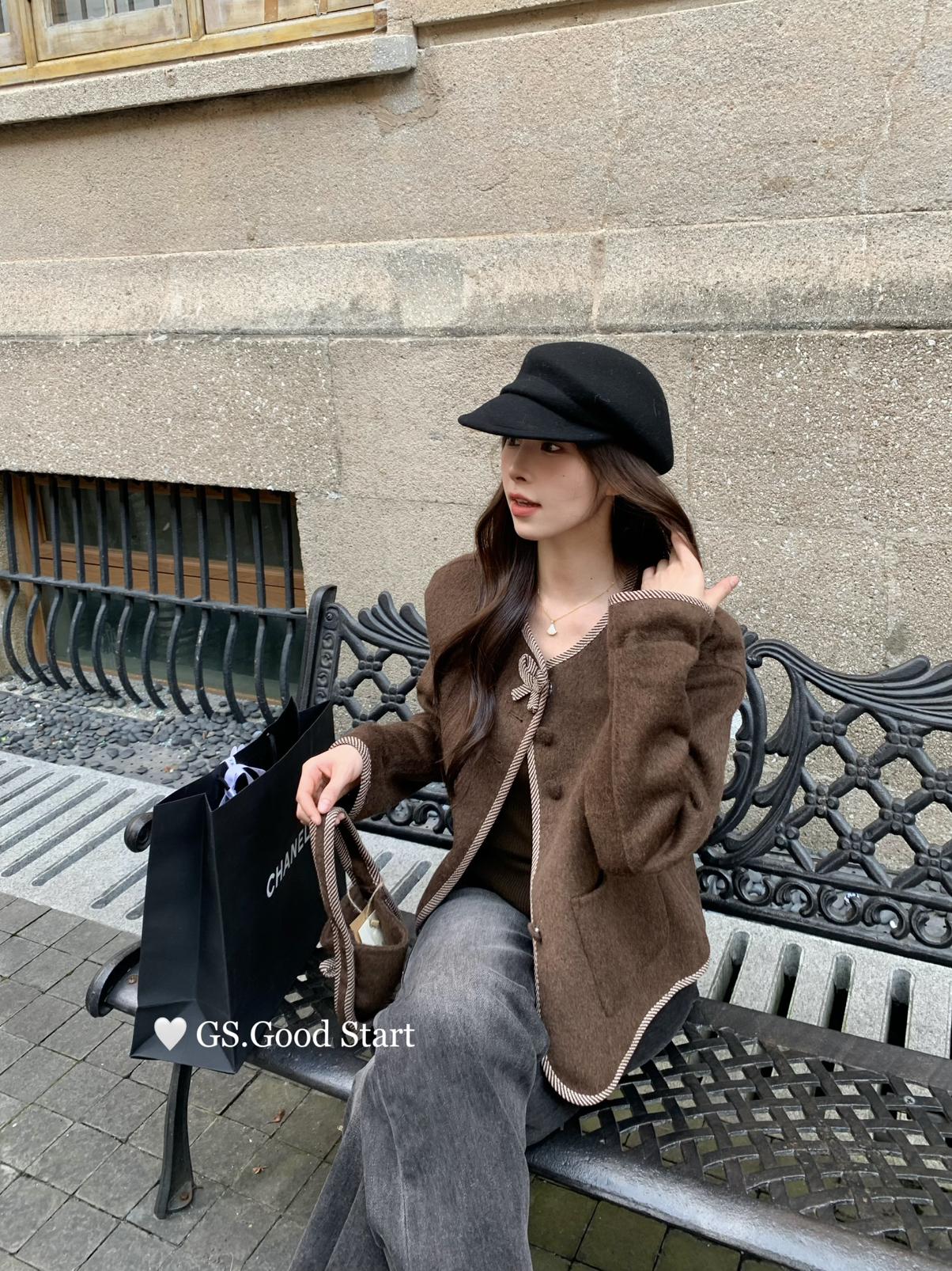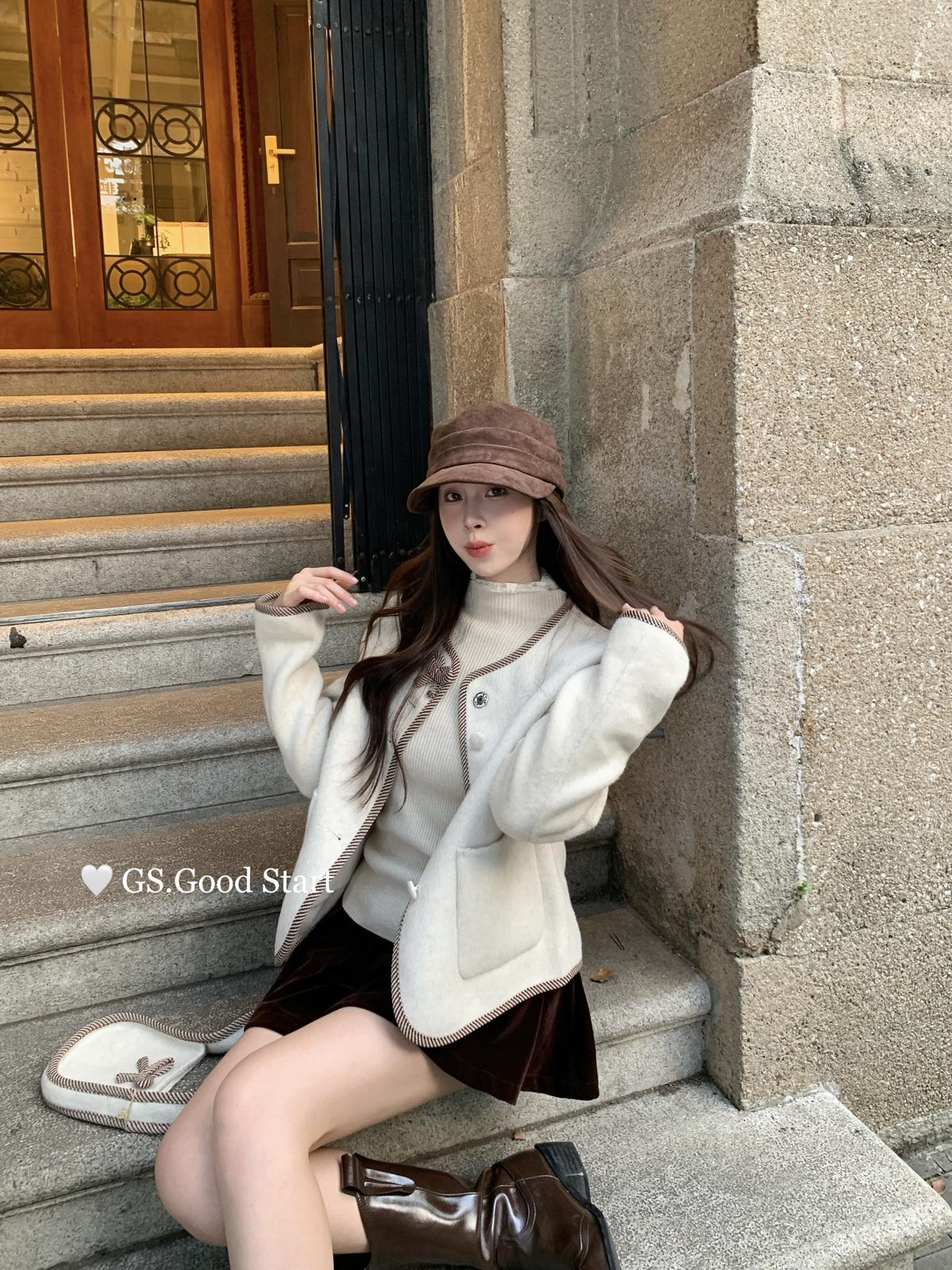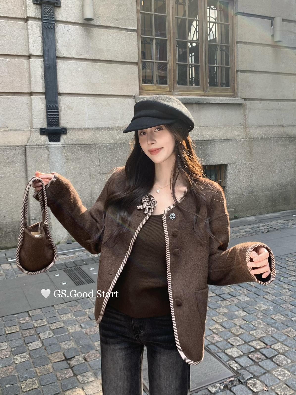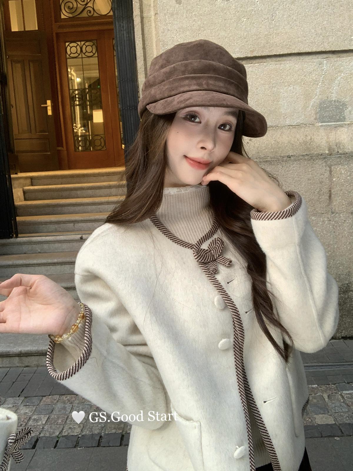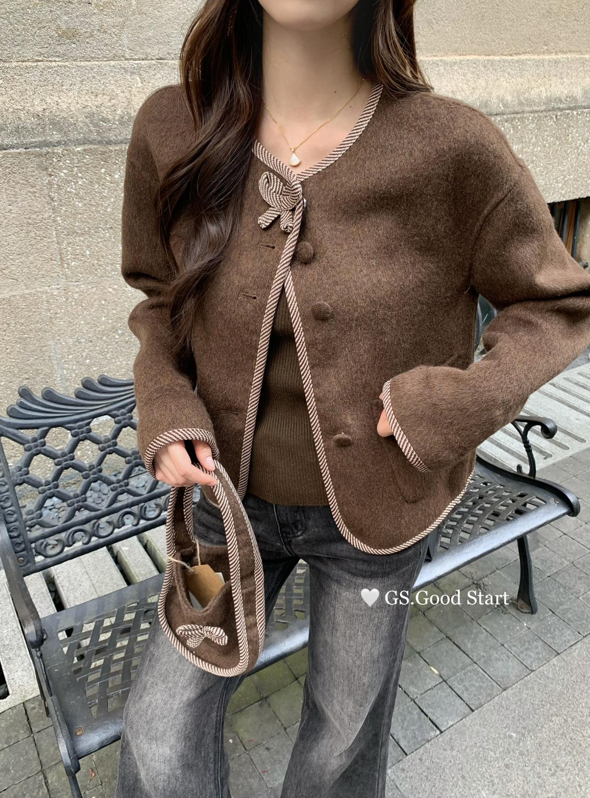 【C7688】按頭安利*短款超提比例!小個子必入!冬季甜美小香風撞色減齡羊毛外套(配包包)(含70.2%綿羊毛)