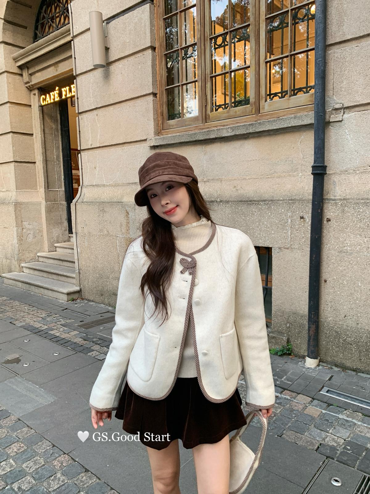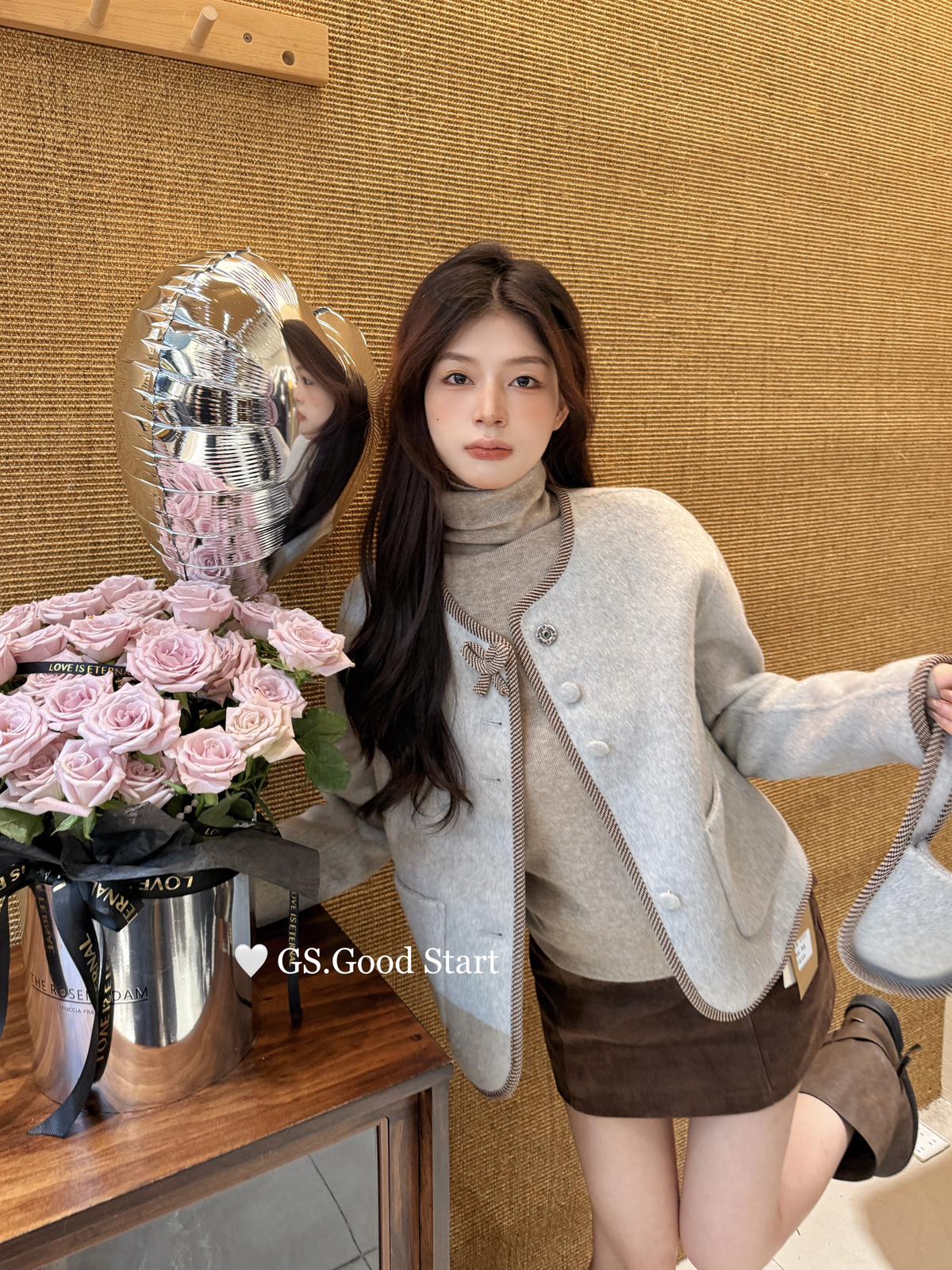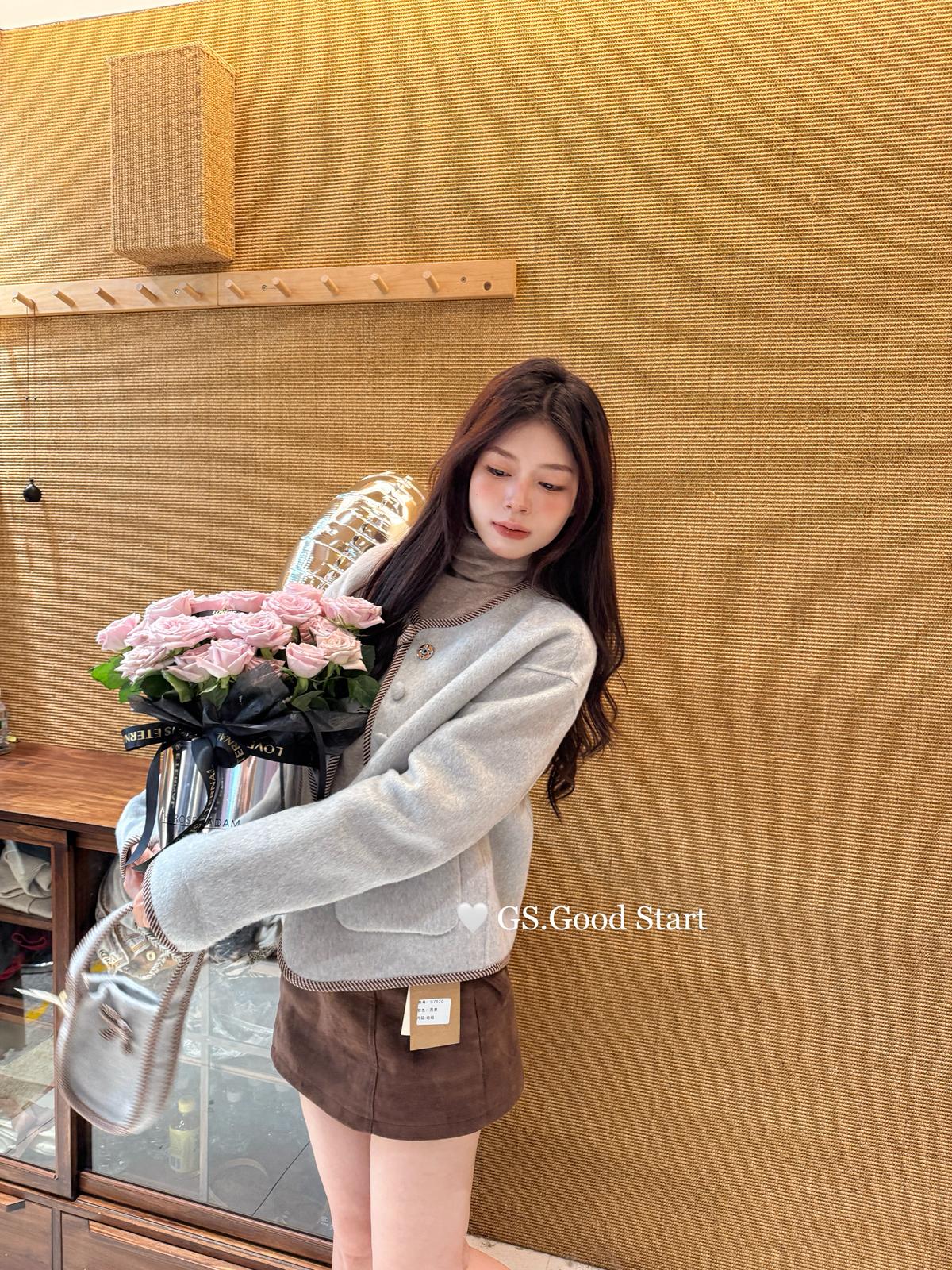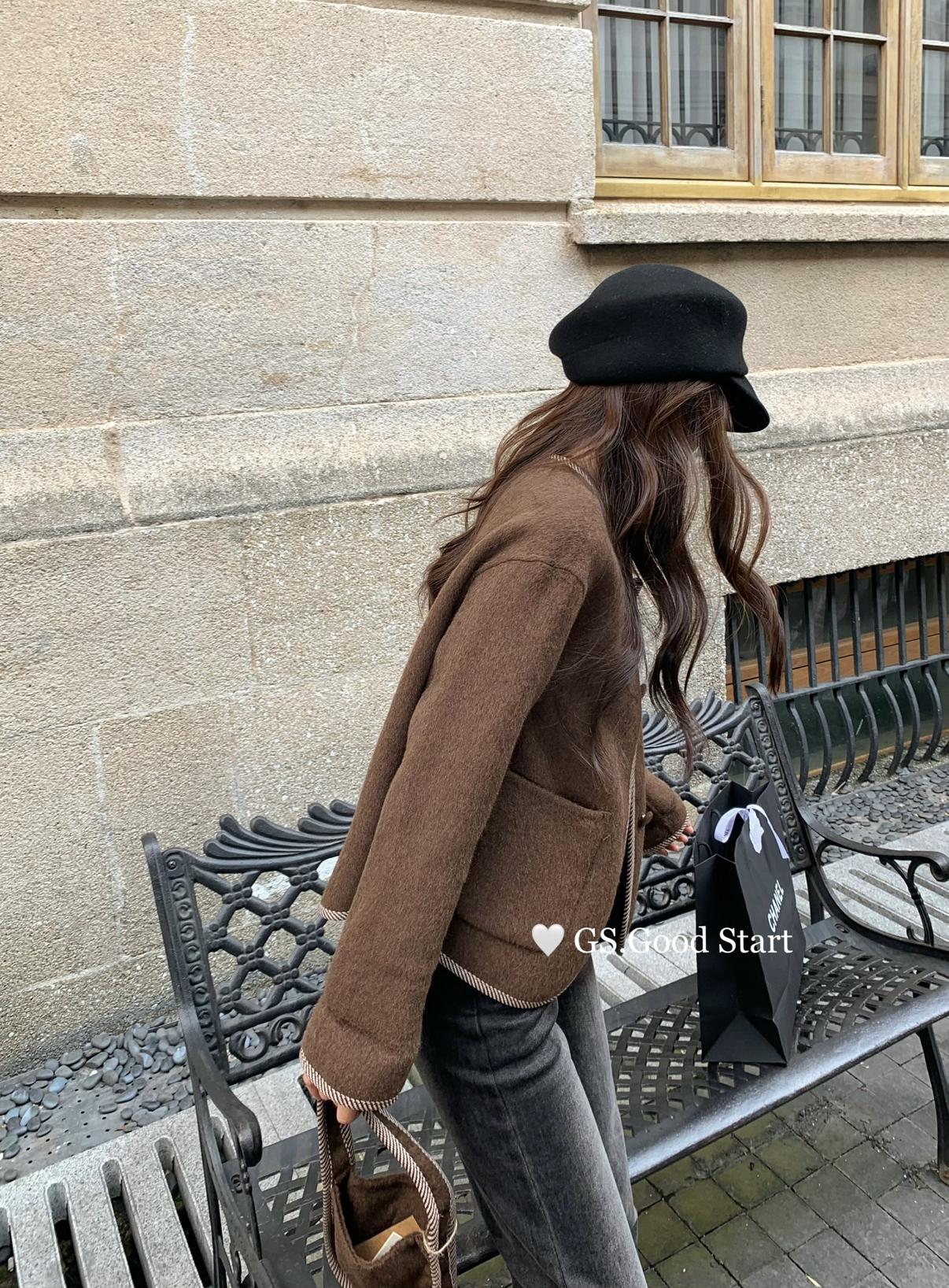 【C7688】按頭安利*短款超提比例!小個子必入!冬季甜美小香風撞色減齡羊毛外套(配包包)(含70.2%綿羊毛)