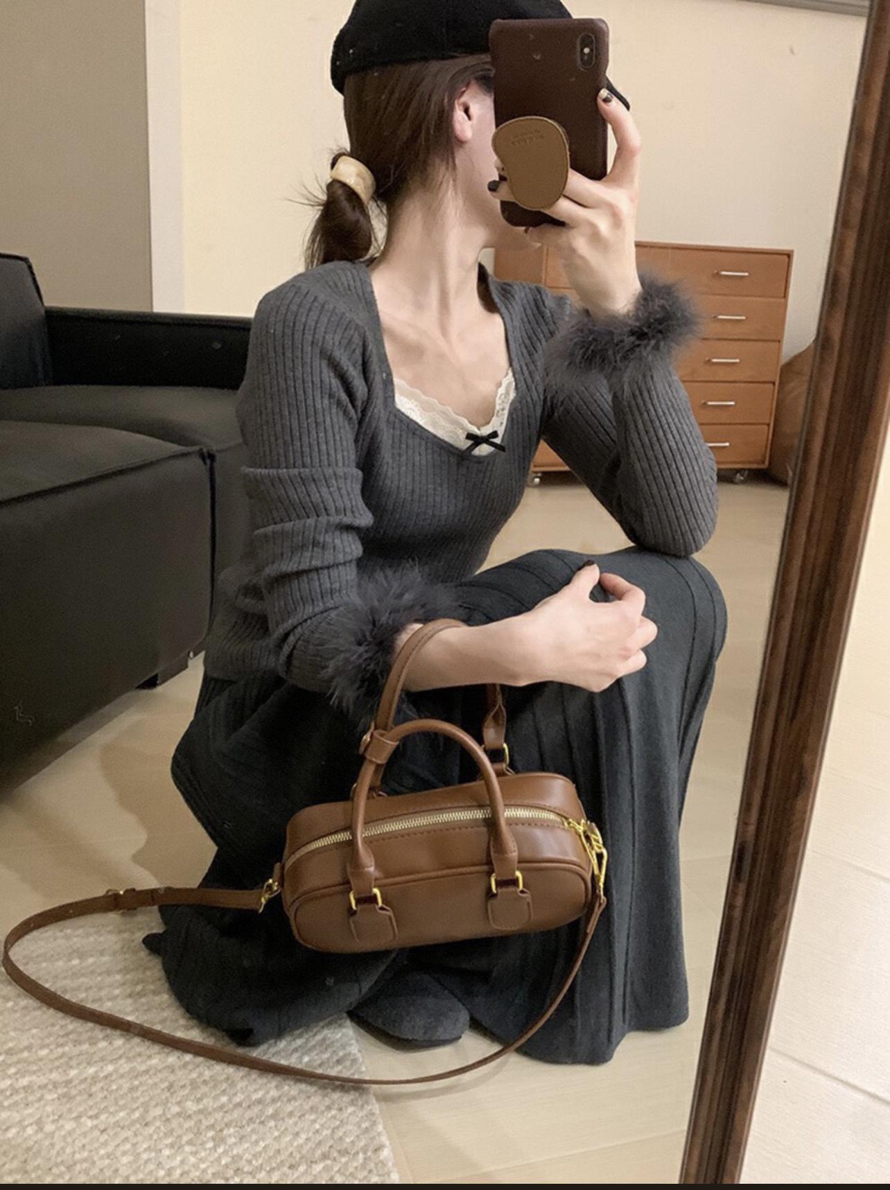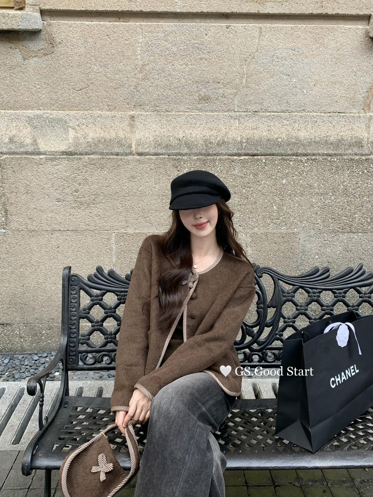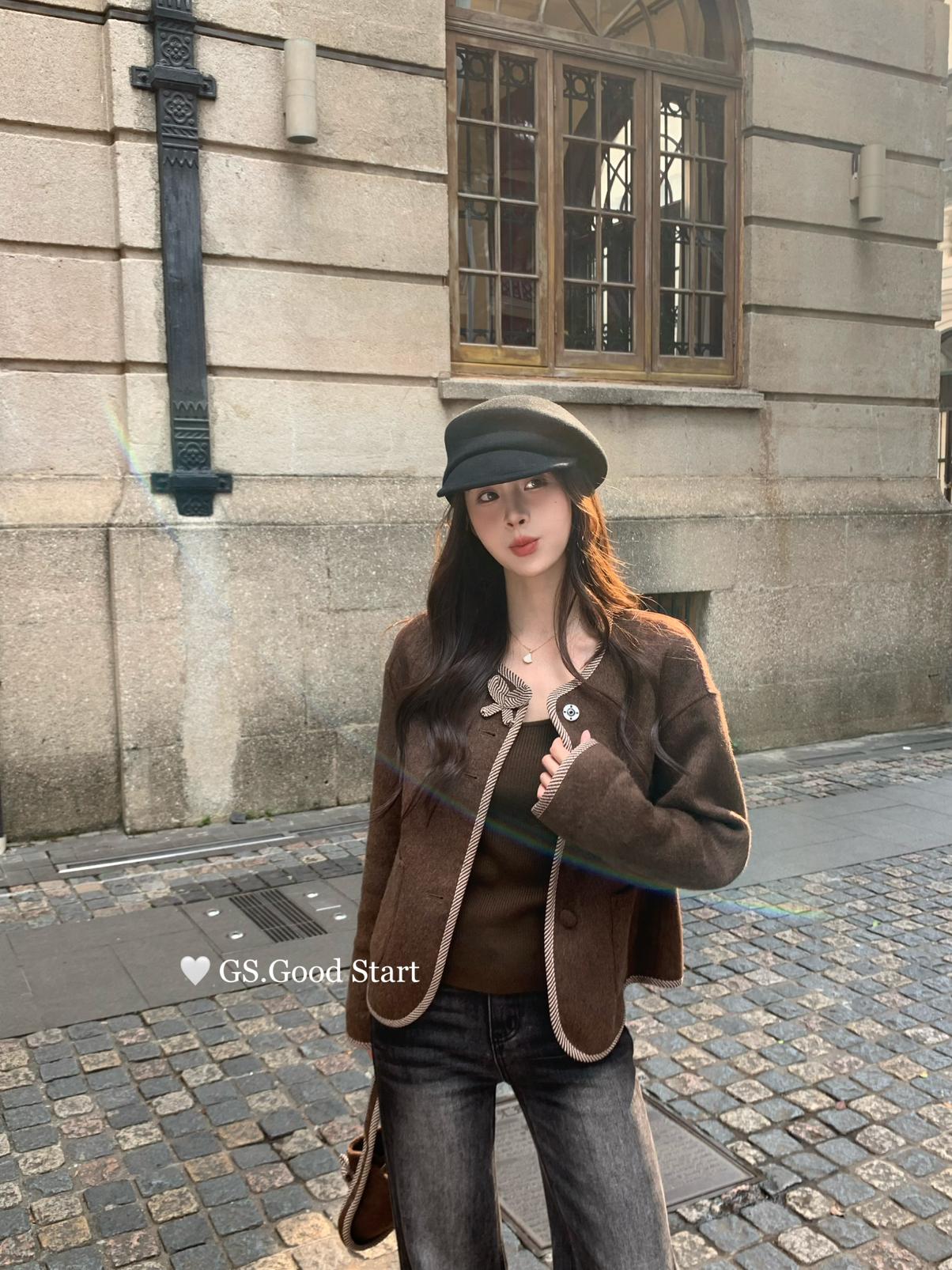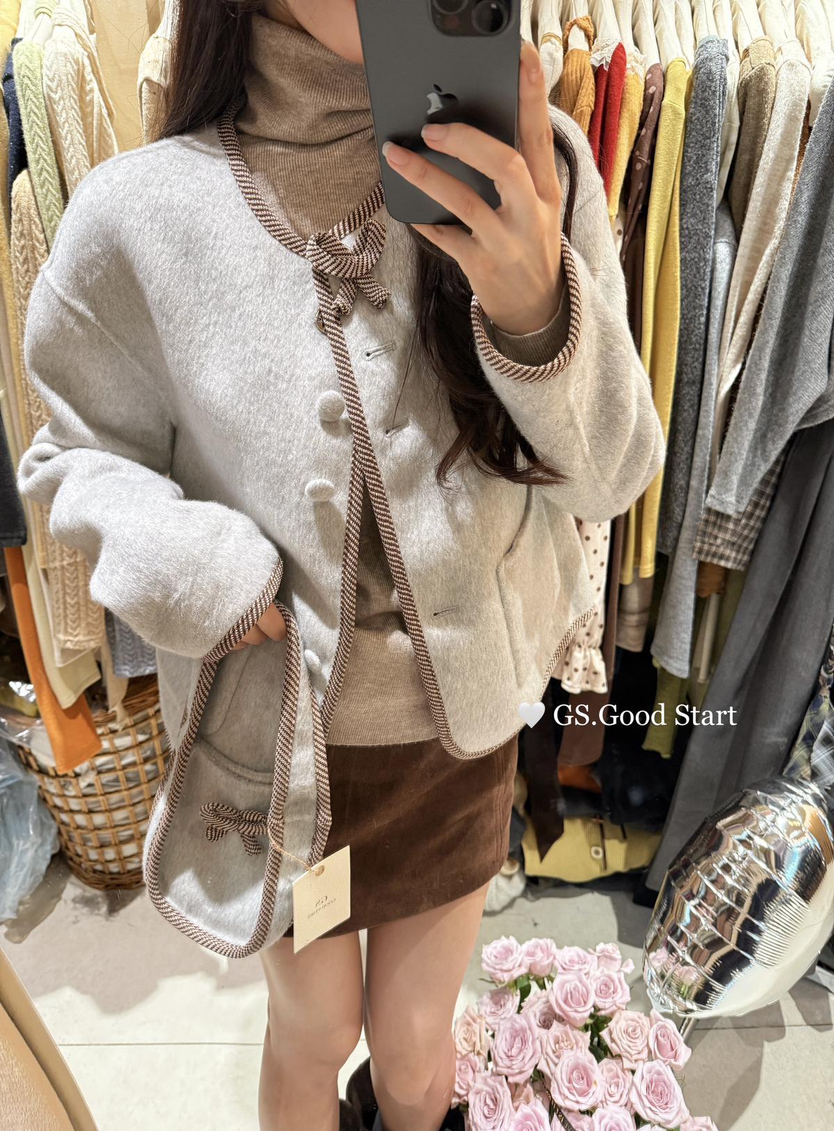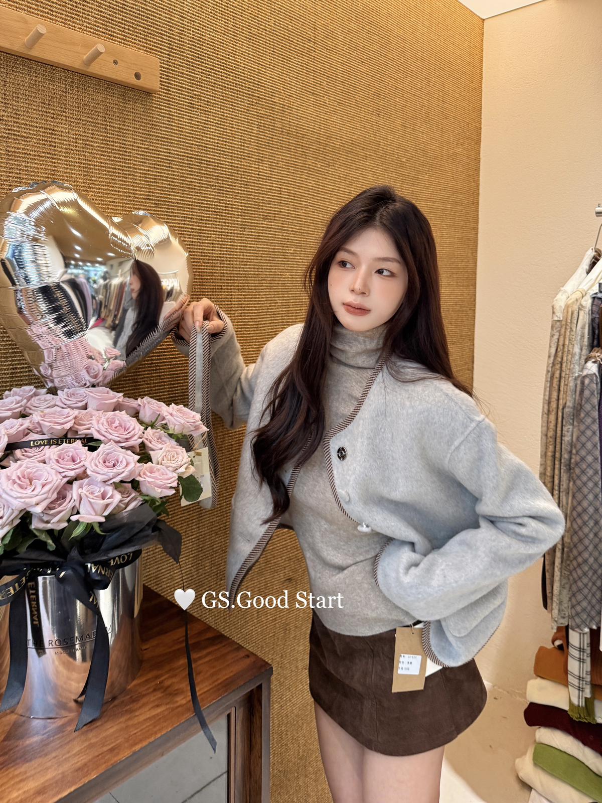 【C7688】按頭安利*短款超提比例!小個子必入!冬季甜美小香風撞色減齡羊毛外套(配包包)(含70.2%綿羊毛)