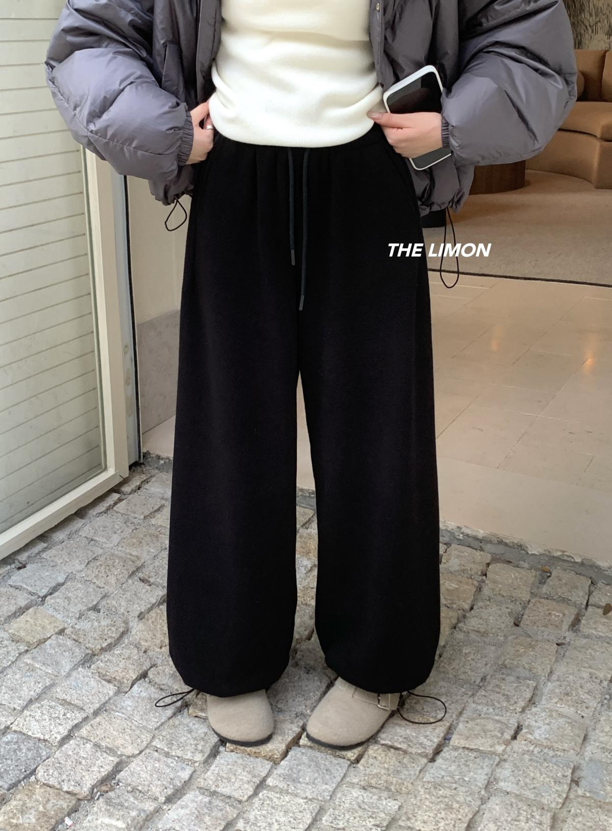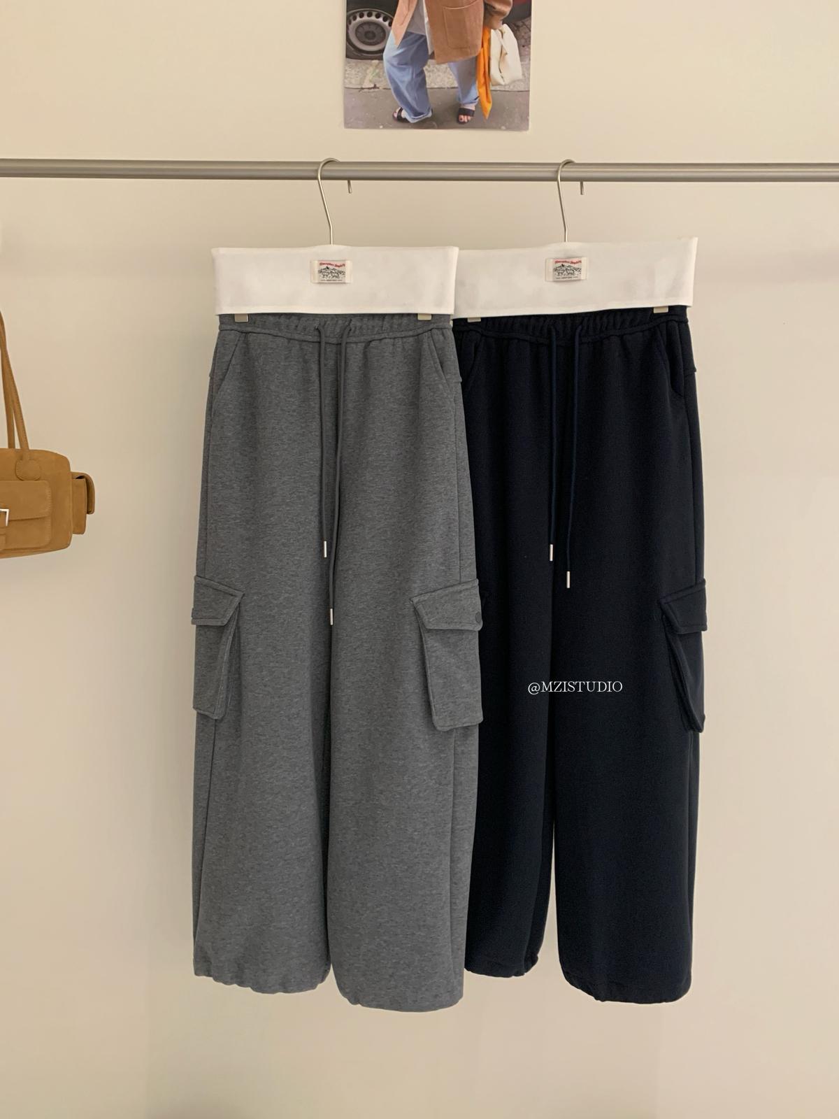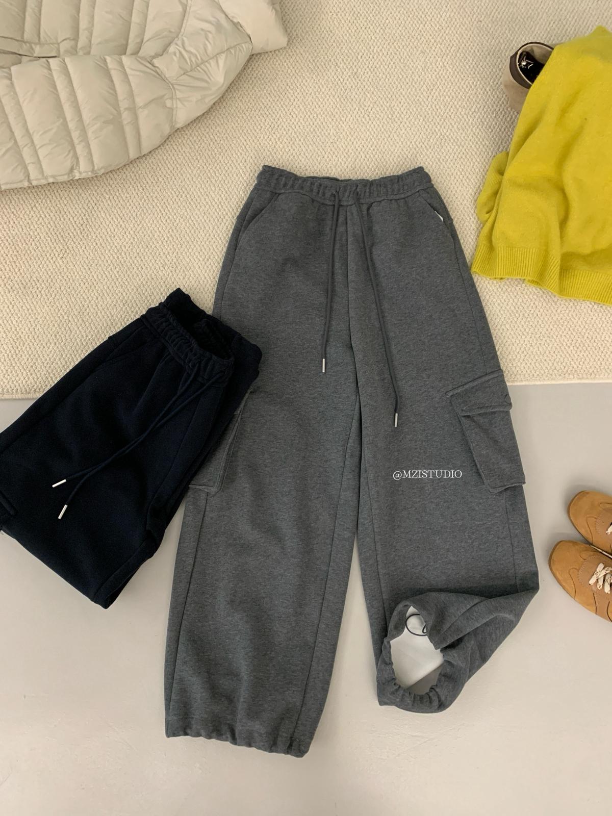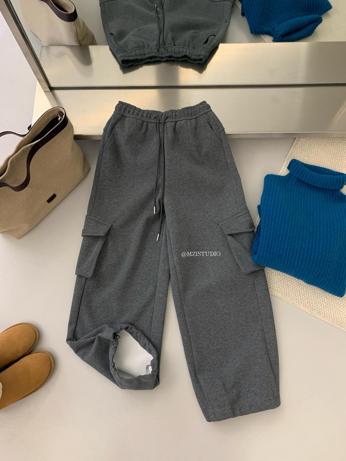 【C7682】冬日鬆弛答案韓系加絨大口袋抽繩高腰隨性寬鬆工裝闊腿休閒褲