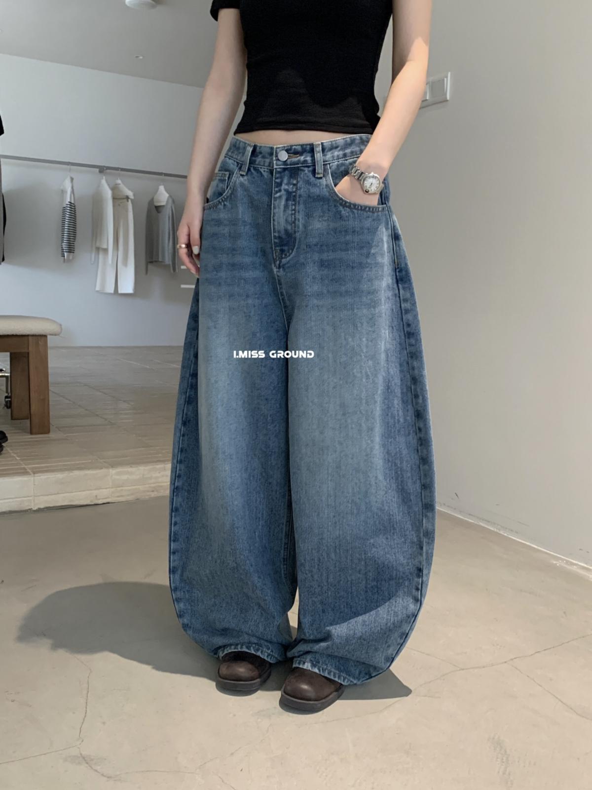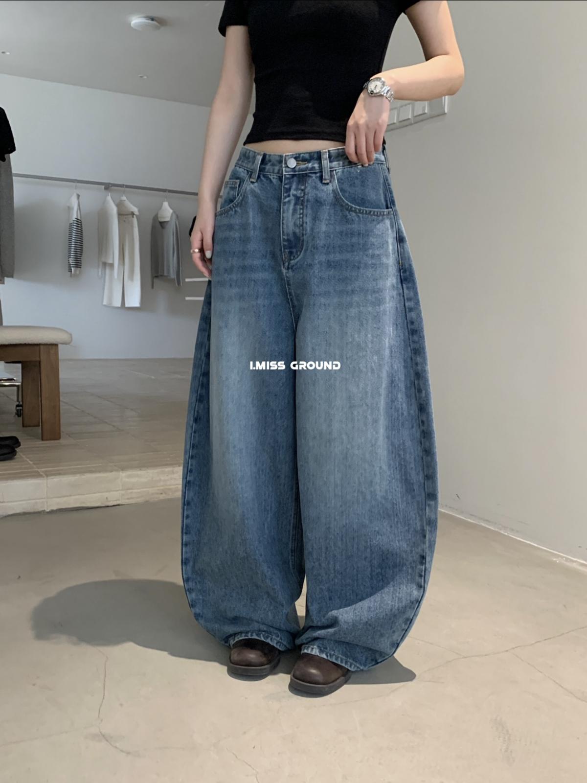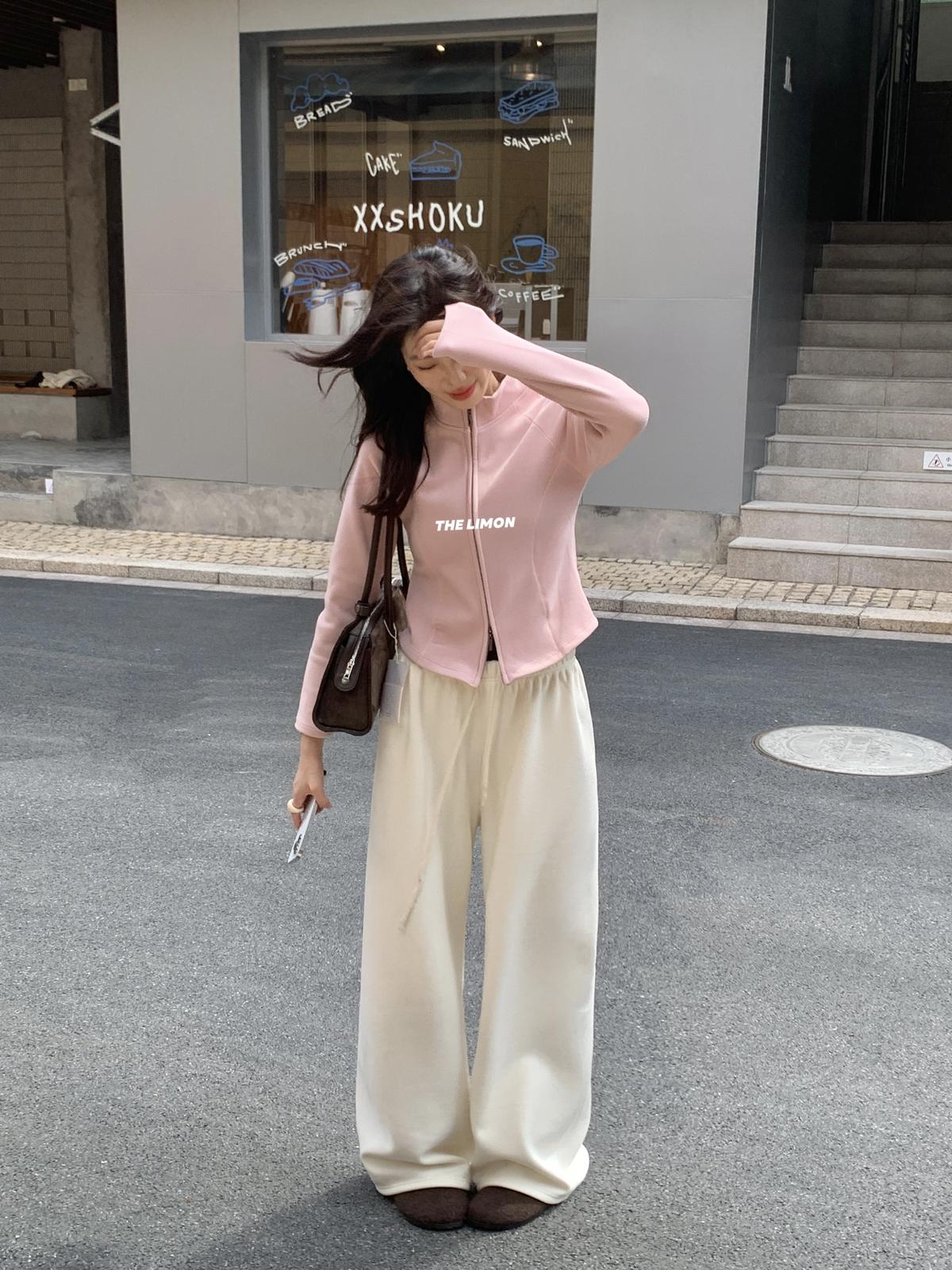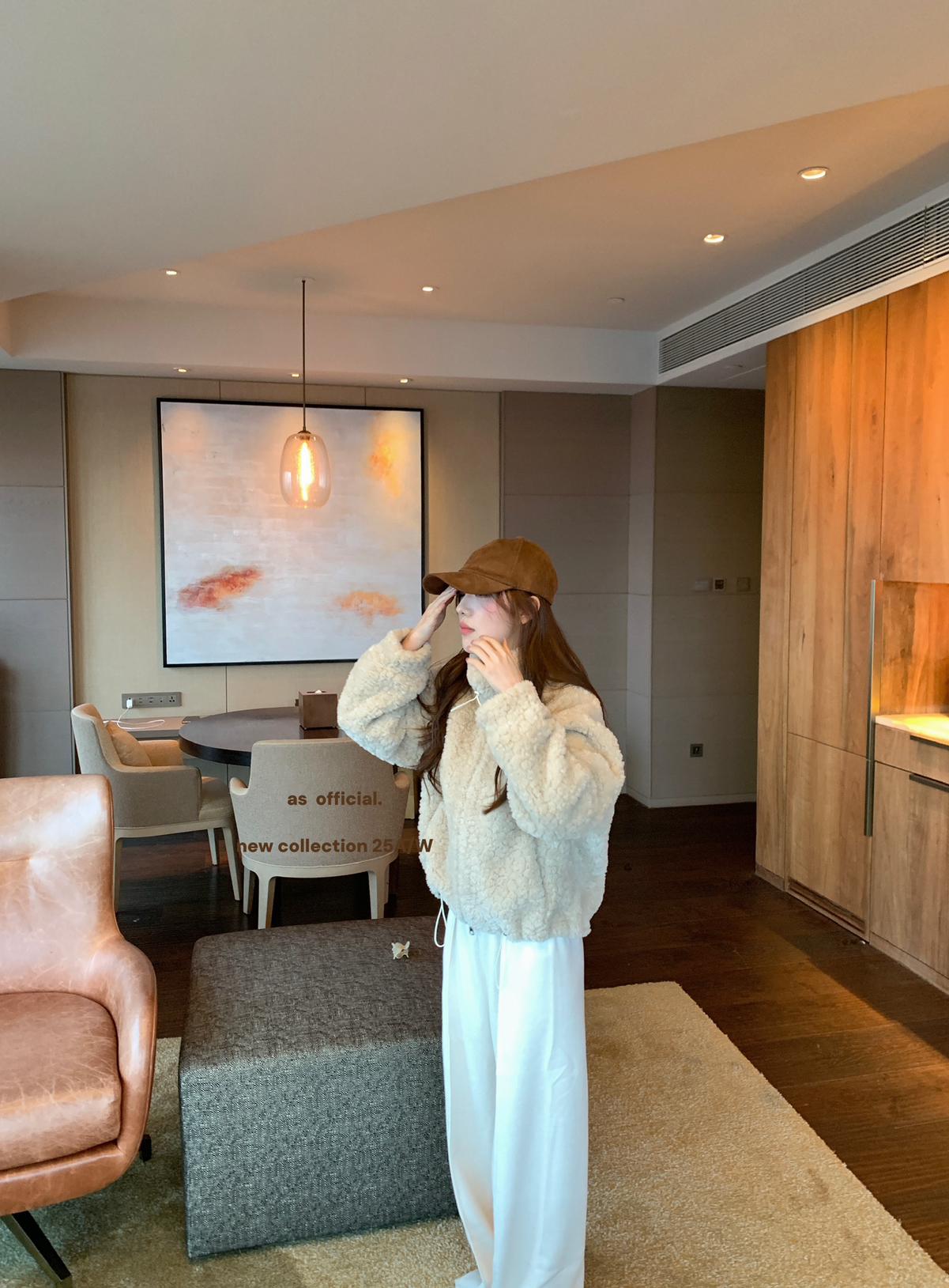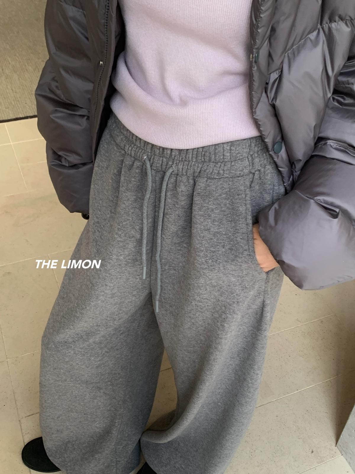 【C7682】冬日鬆弛答案韓系加絨大口袋抽繩高腰隨性寬鬆工裝闊腿休閒褲