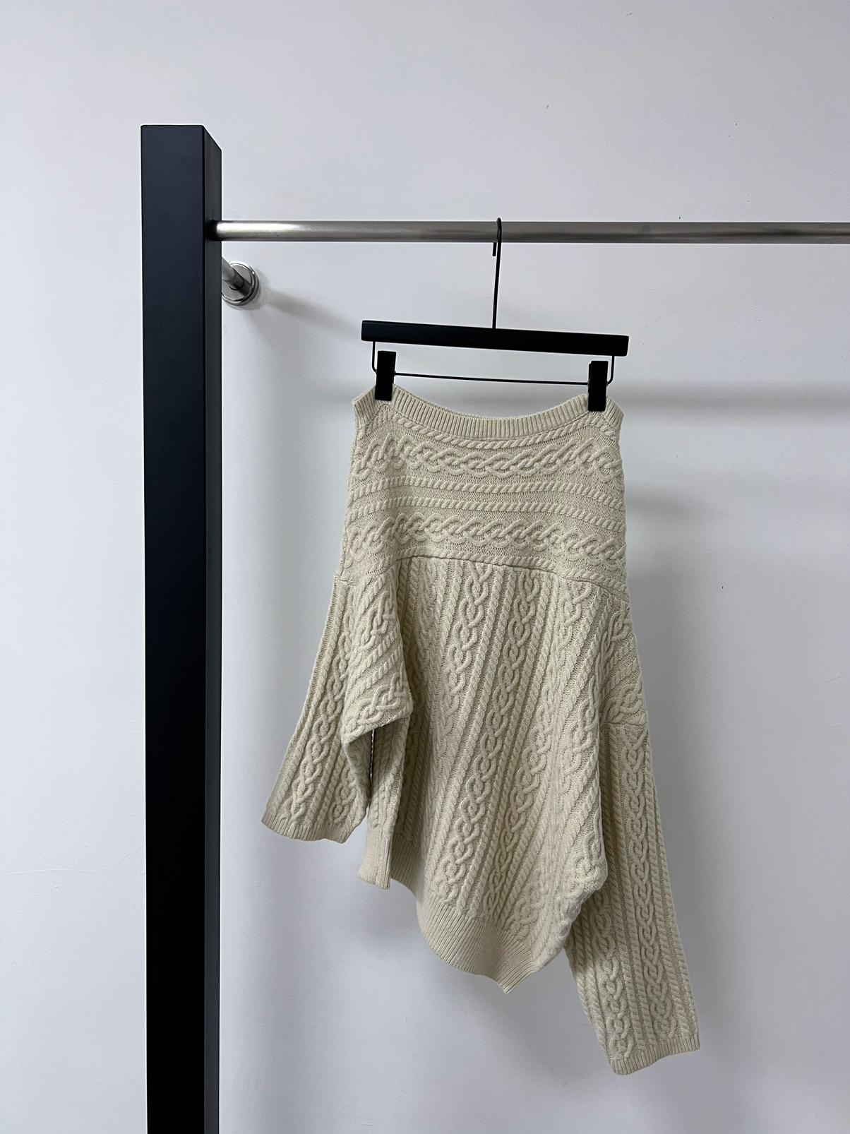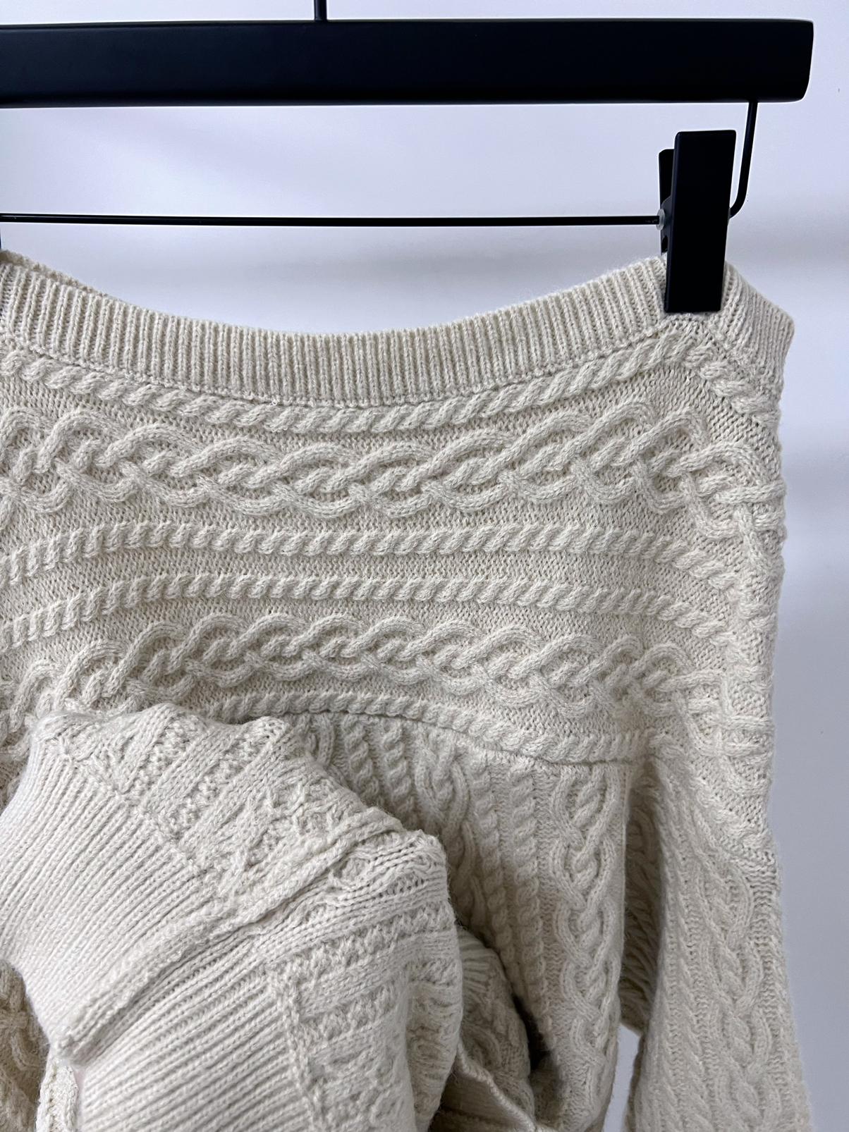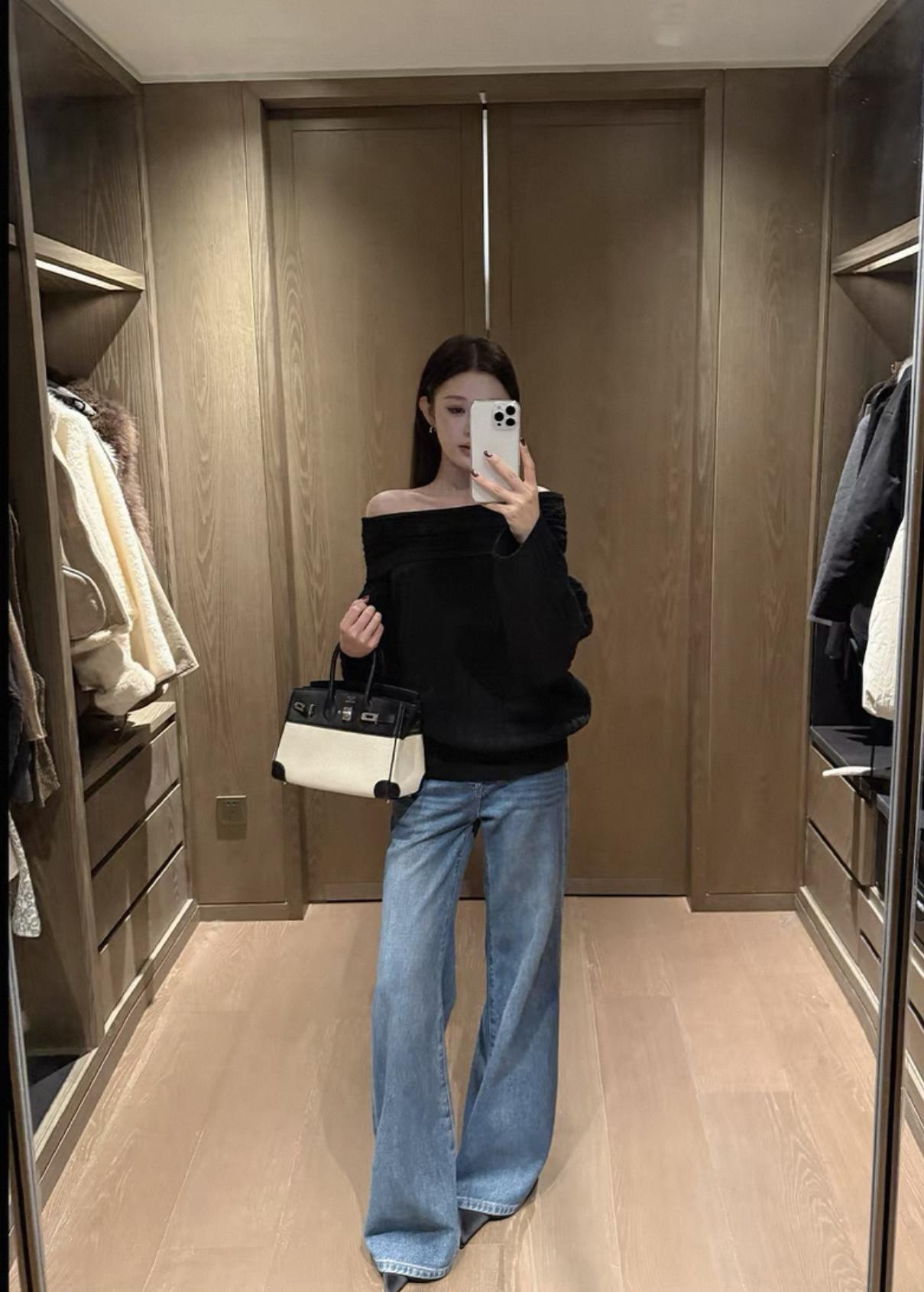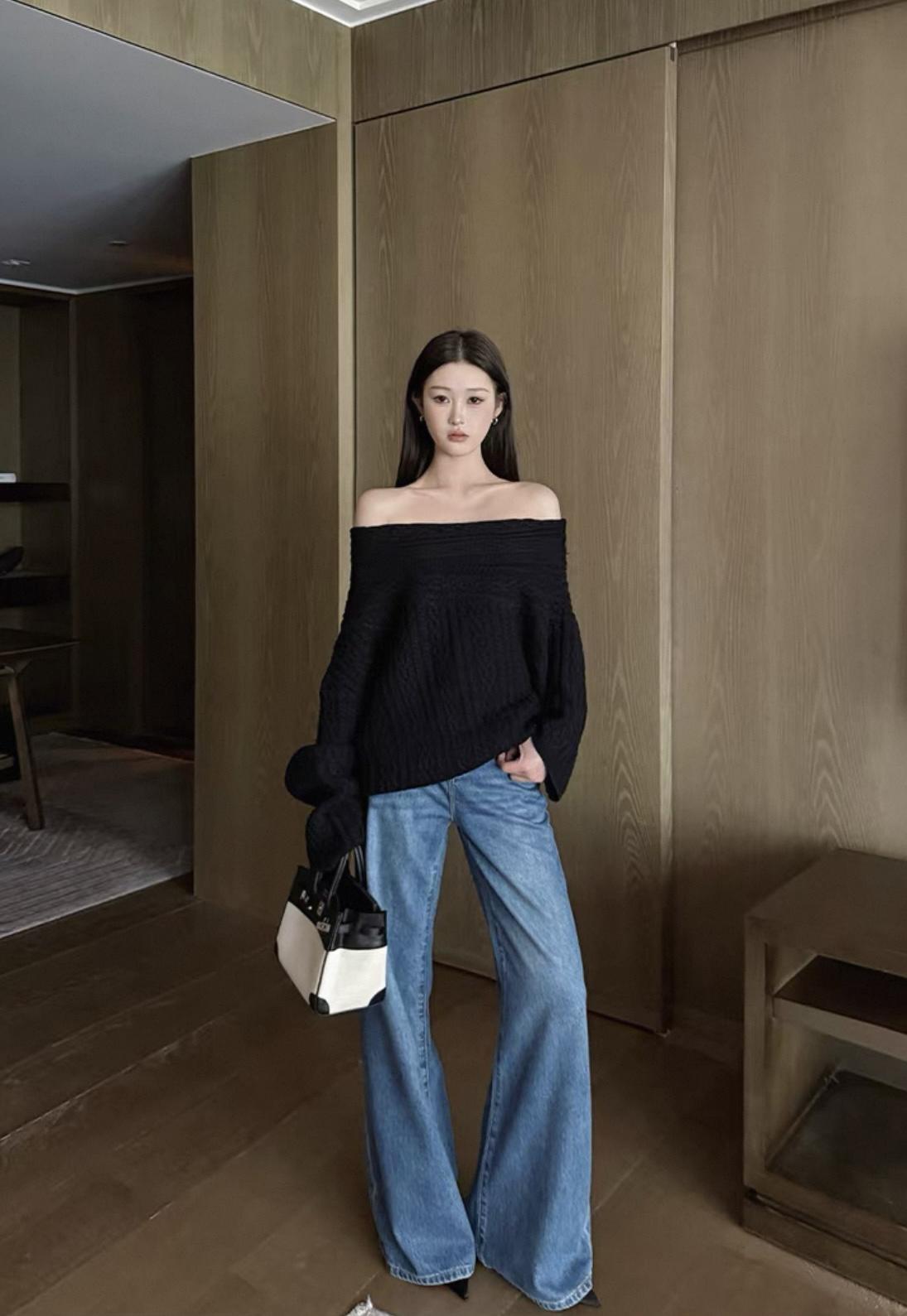【C7668】洋氣百搭純色慵懶鬆弛一字領露肩提花肌理感寬鬆加厚長袖針織保暖毛衣