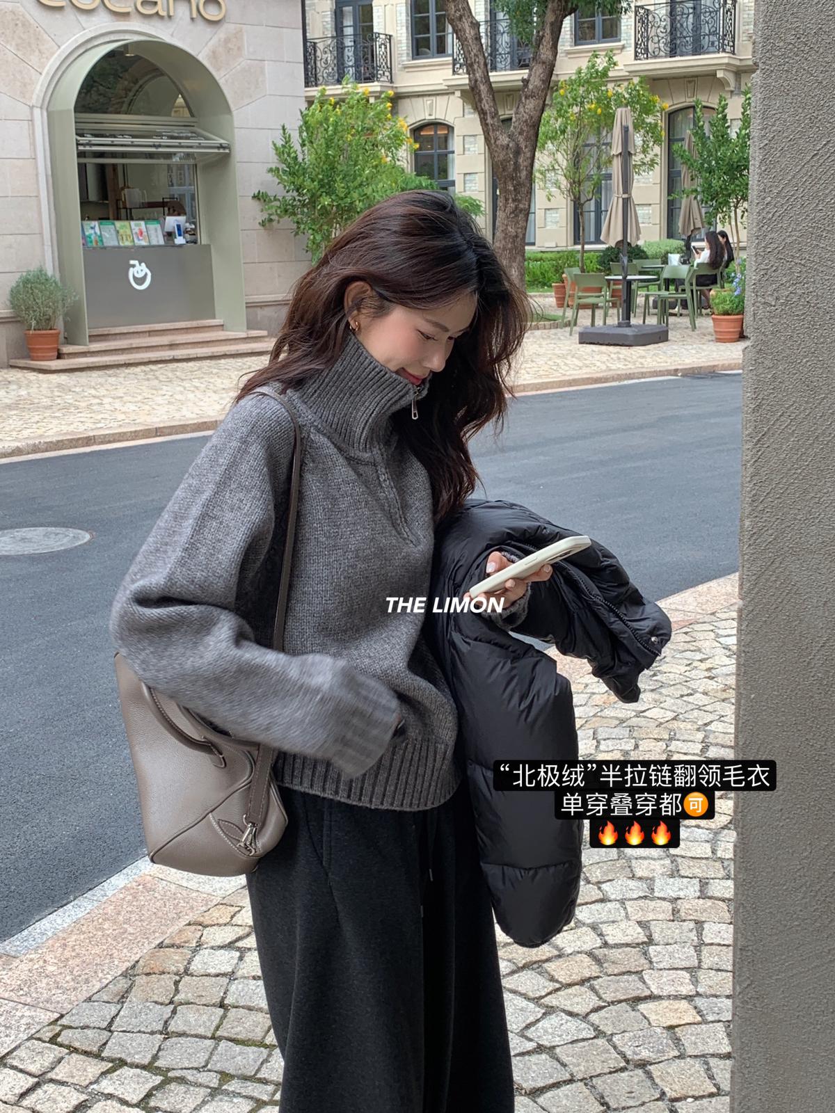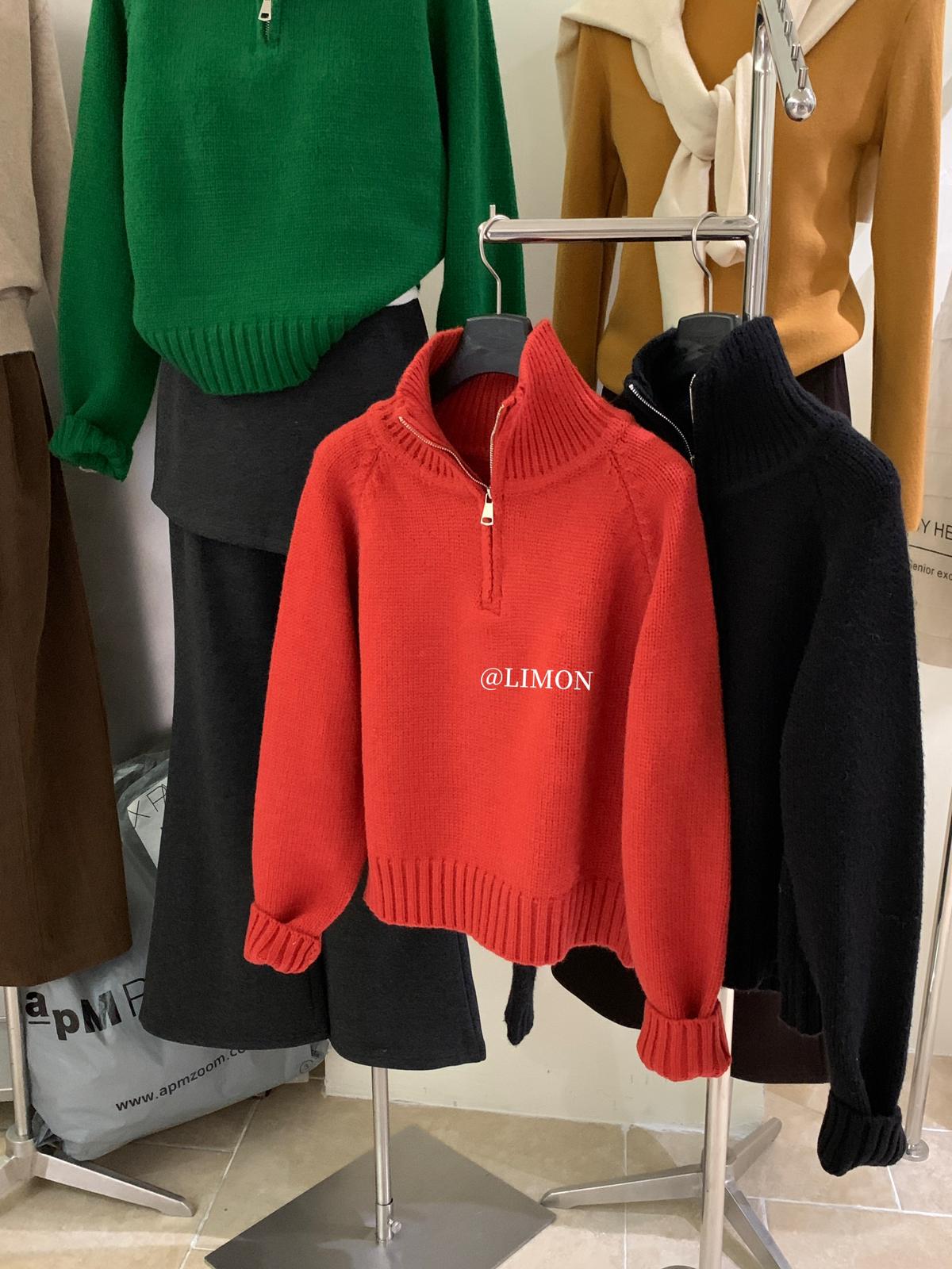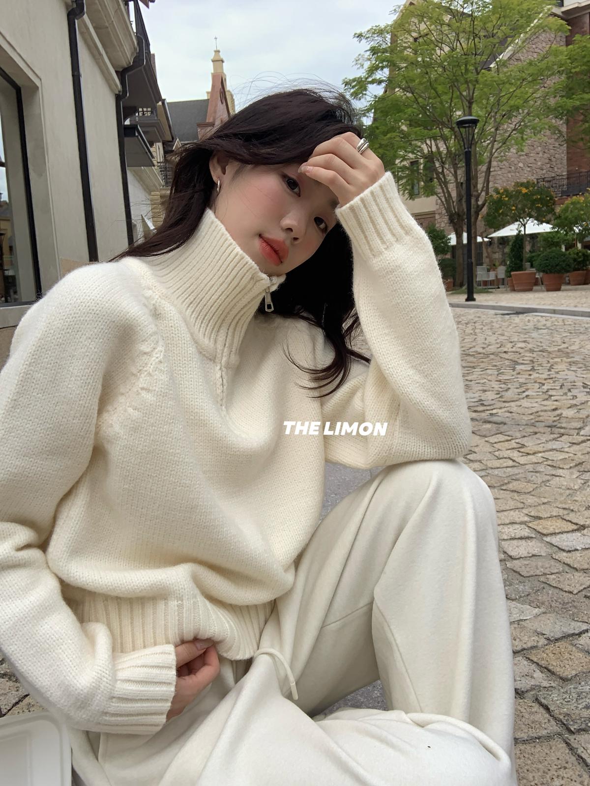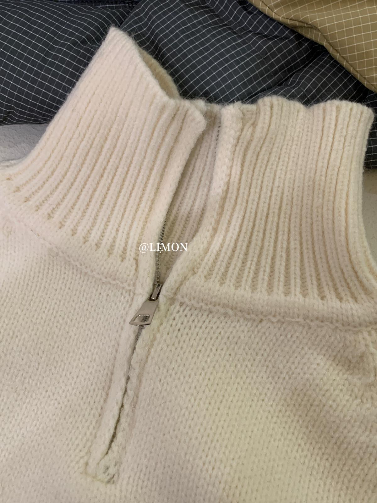 【C7673】韓系百搭半拉鍊純色套頭保暖毛衣