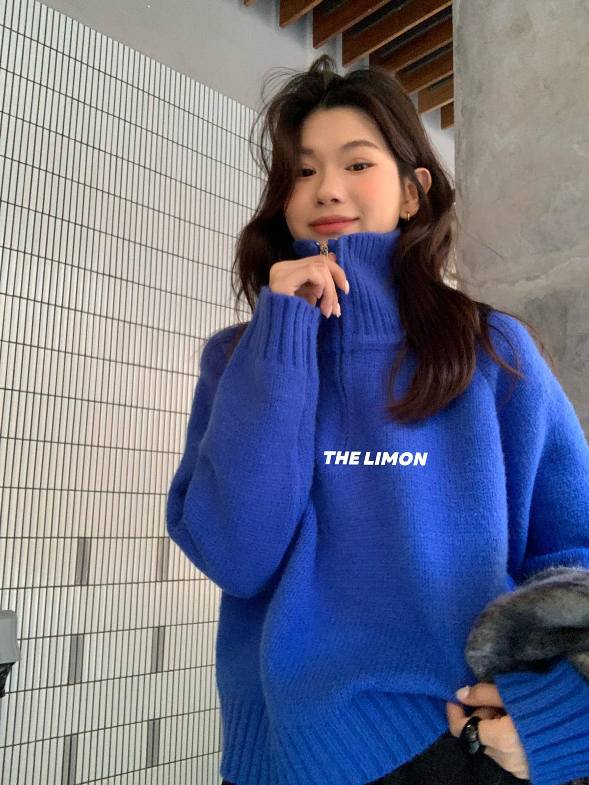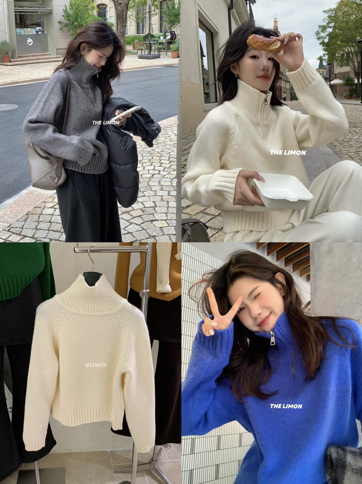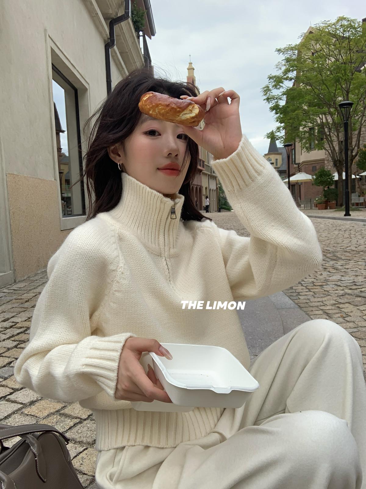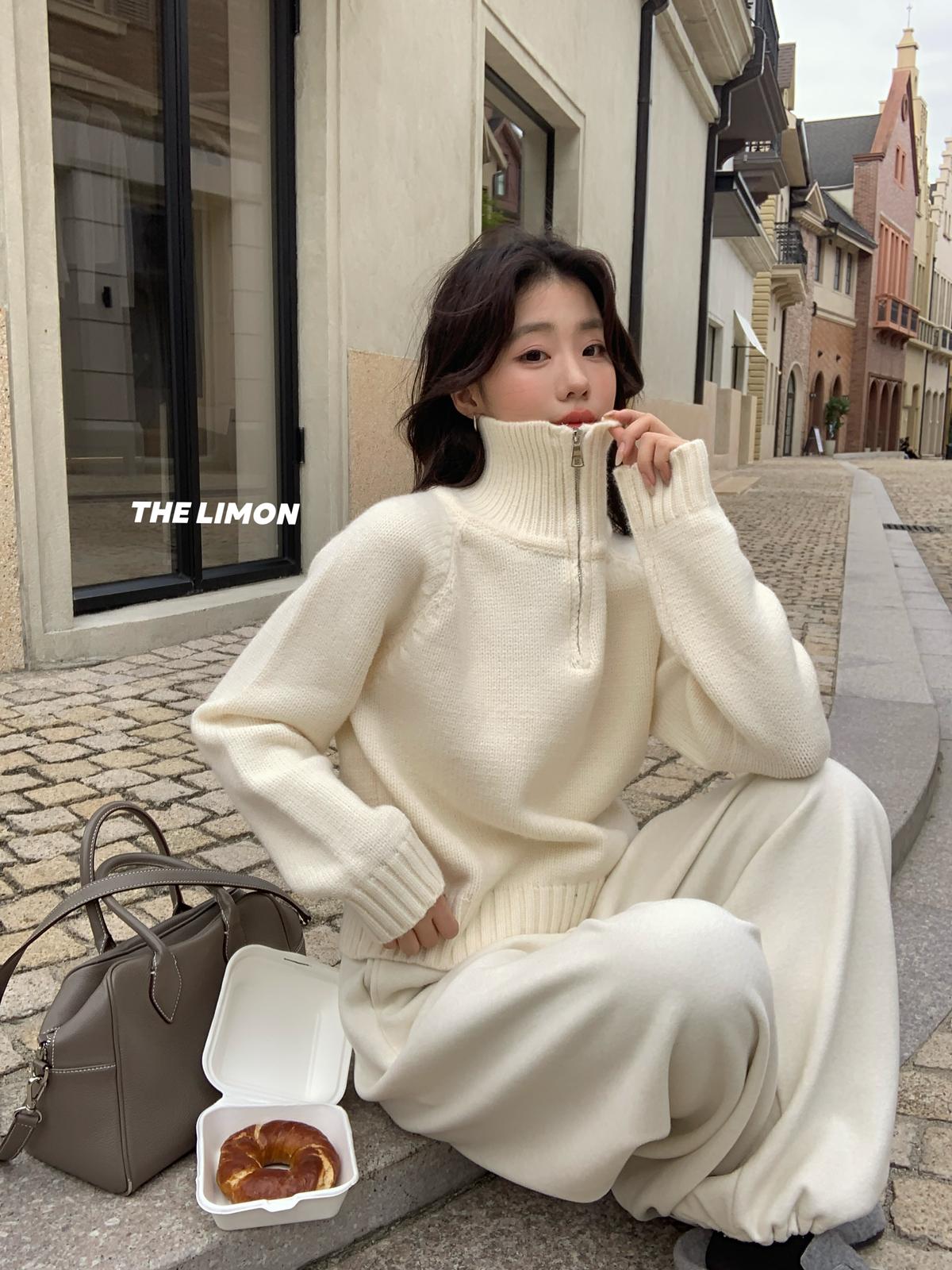 【C7673】韓系百搭半拉鍊純色套頭保暖毛衣