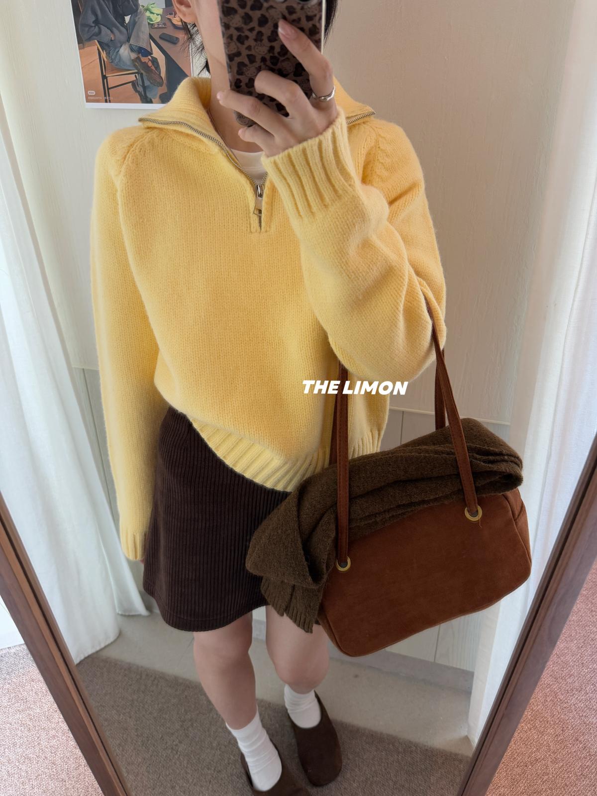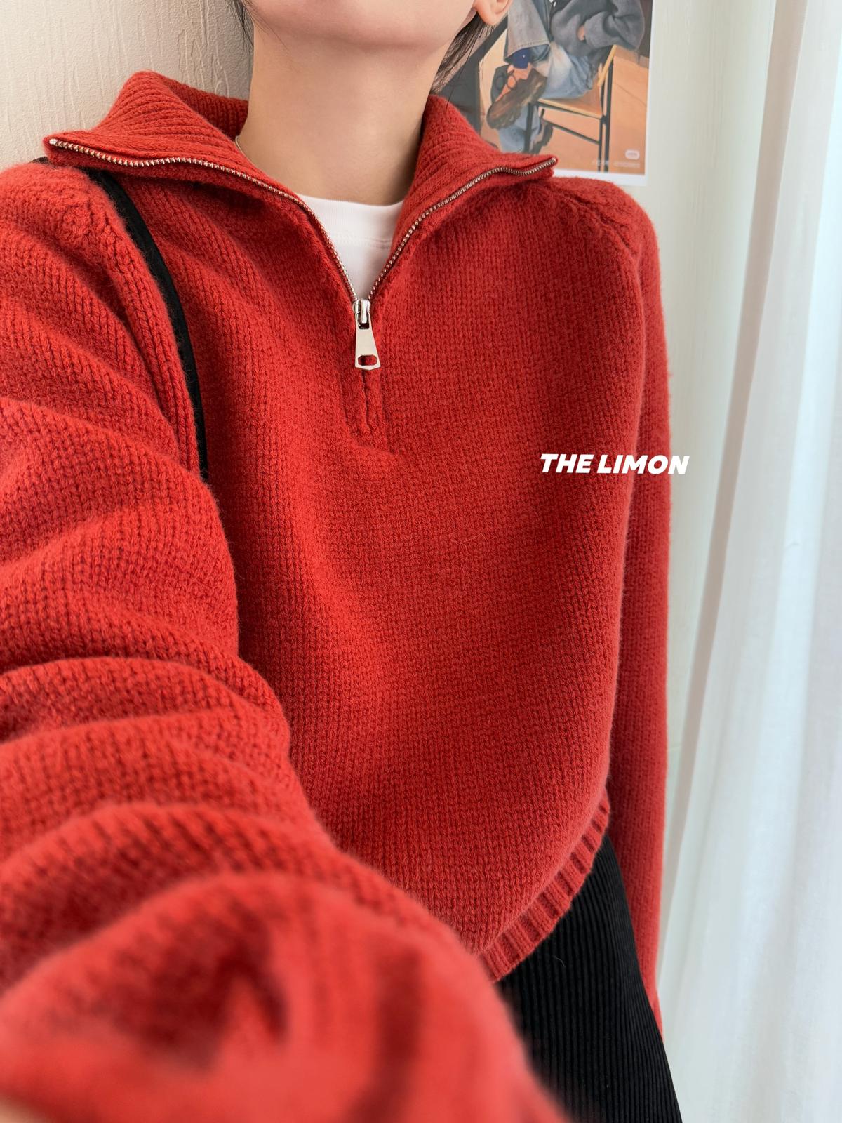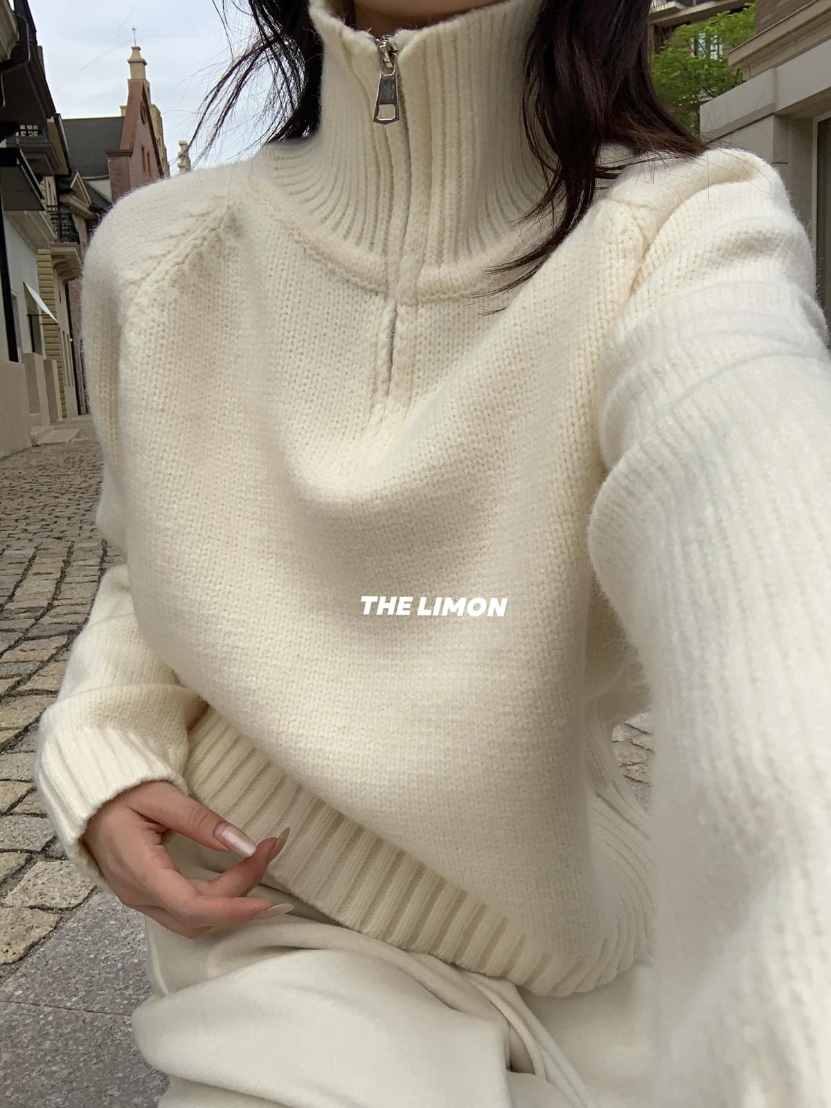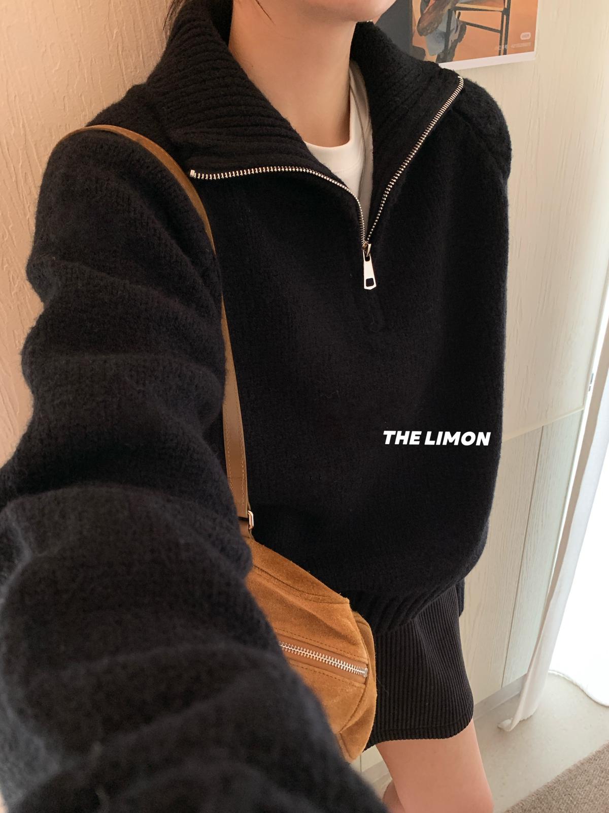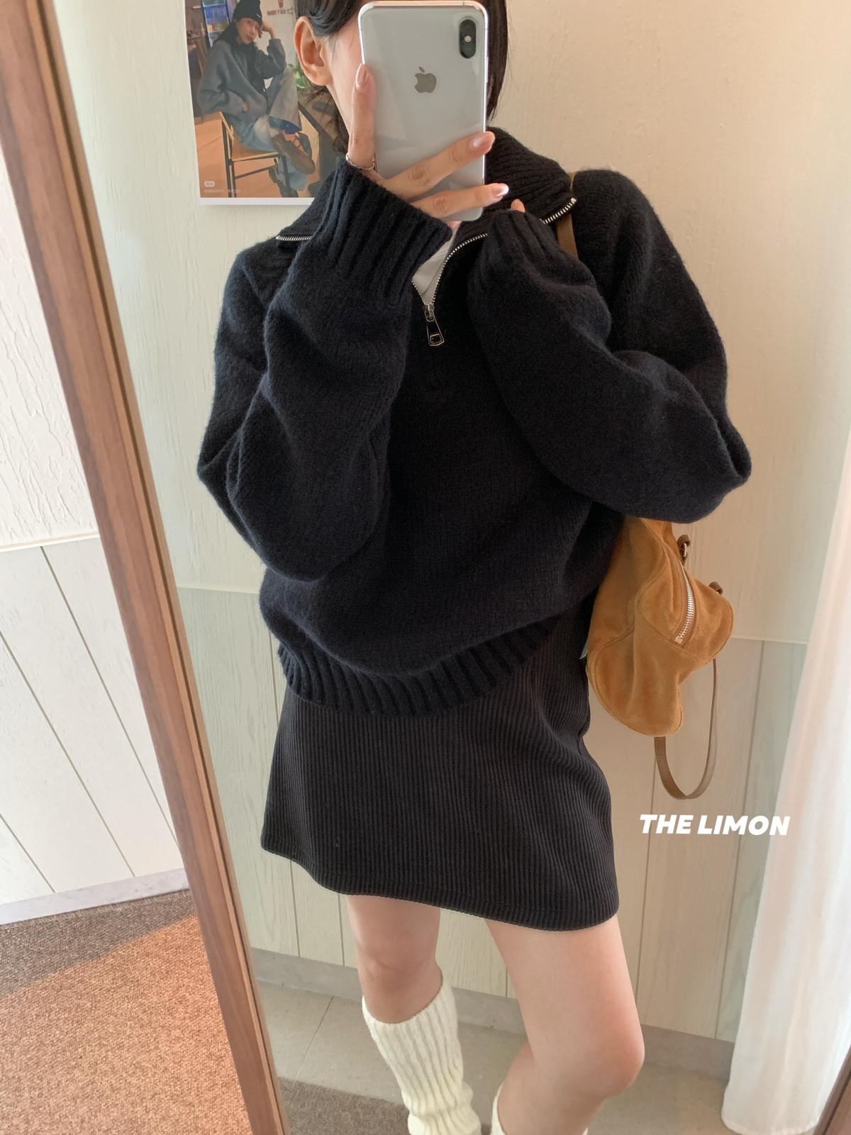 【C7673】韓系百搭半拉鍊純色套頭保暖毛衣