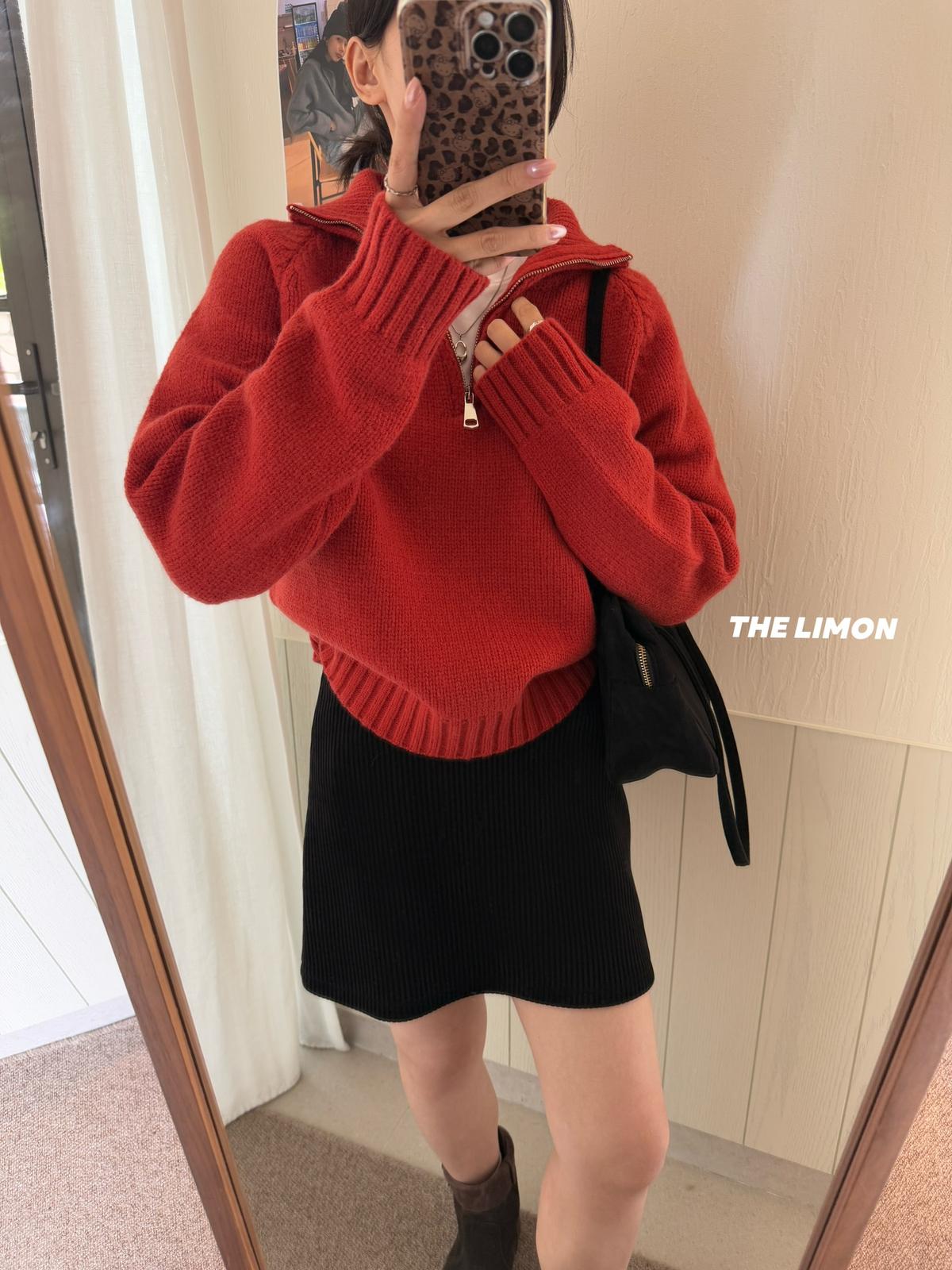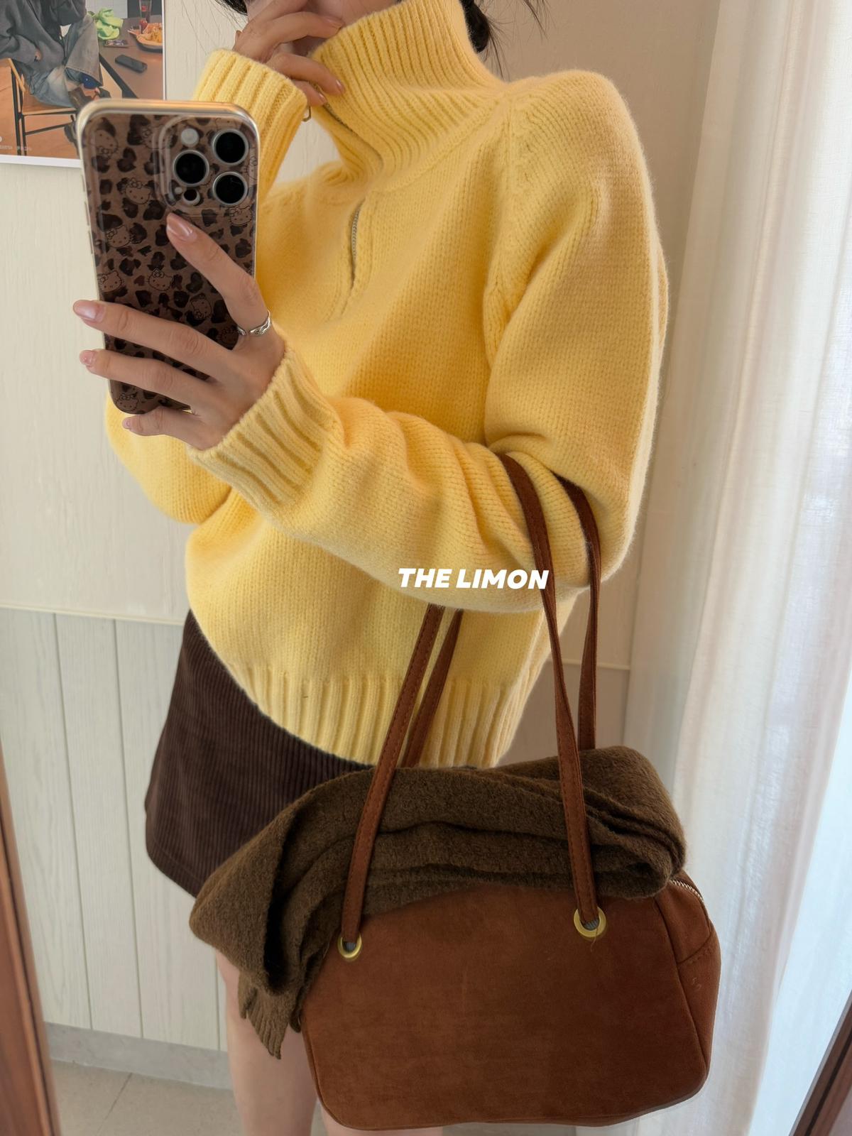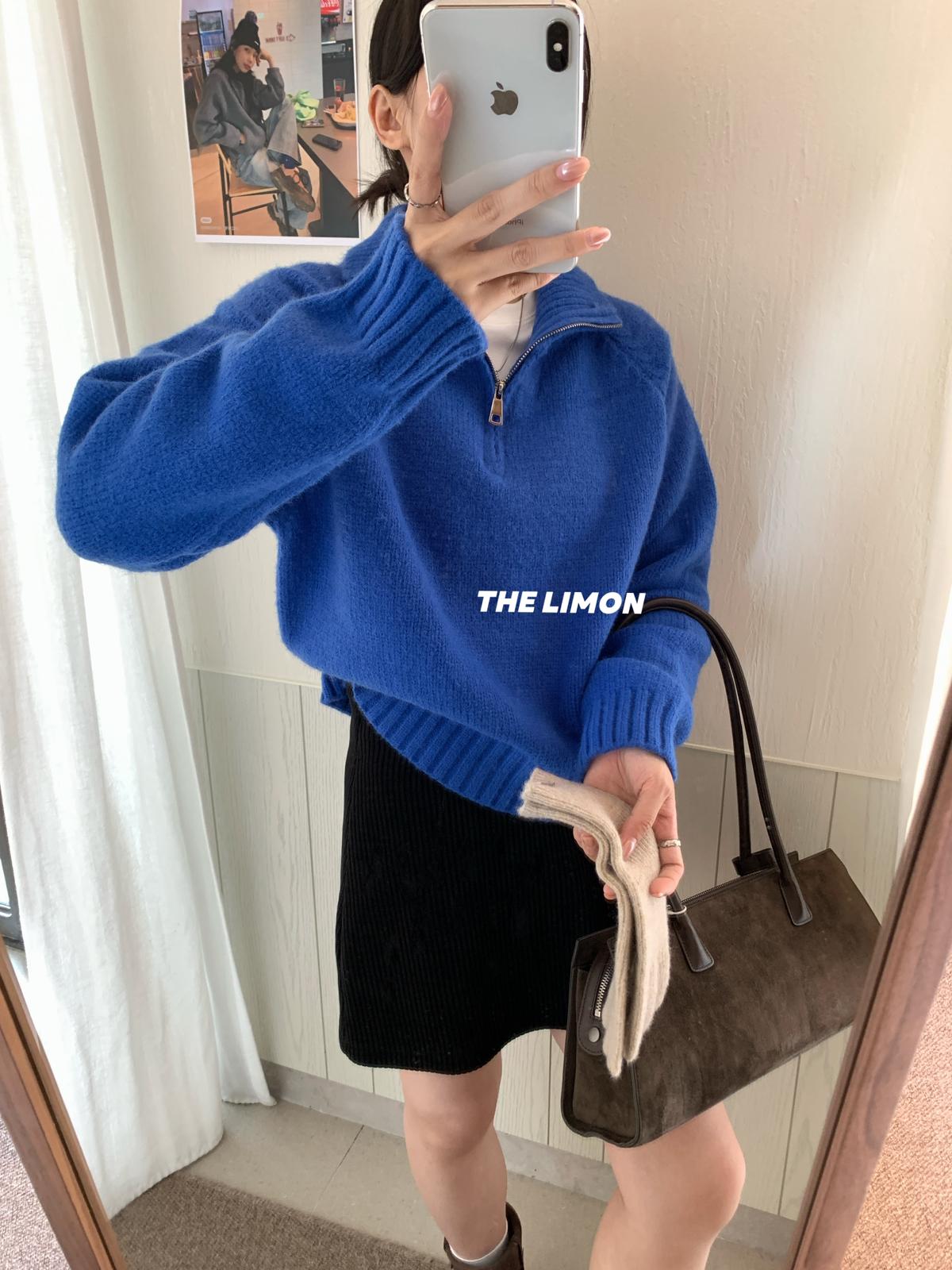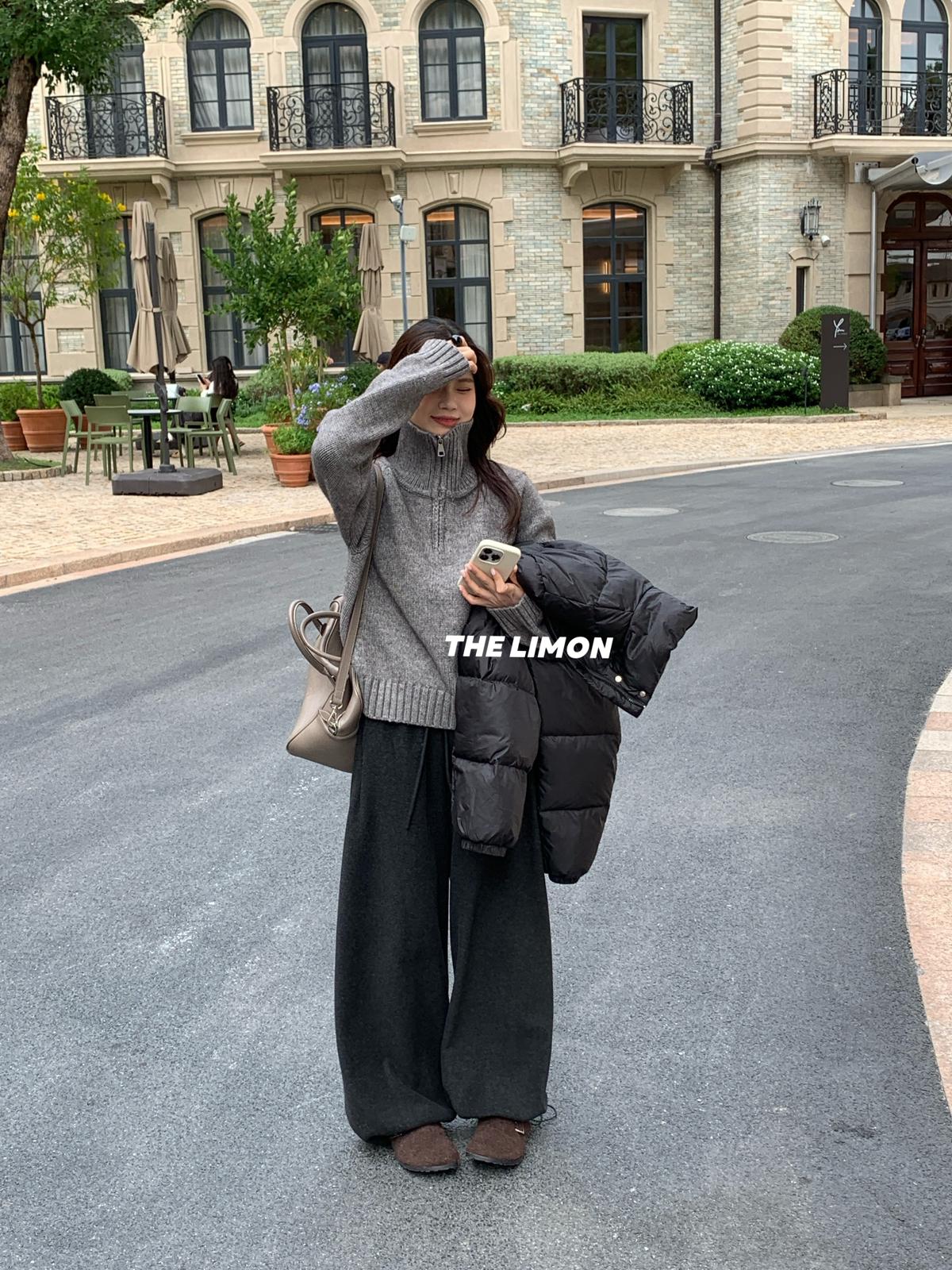【C7673】韓系百搭半拉鍊純色套頭保暖毛衣
