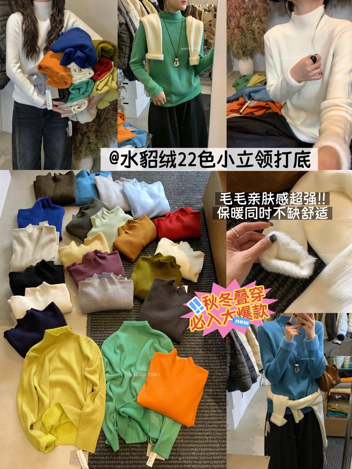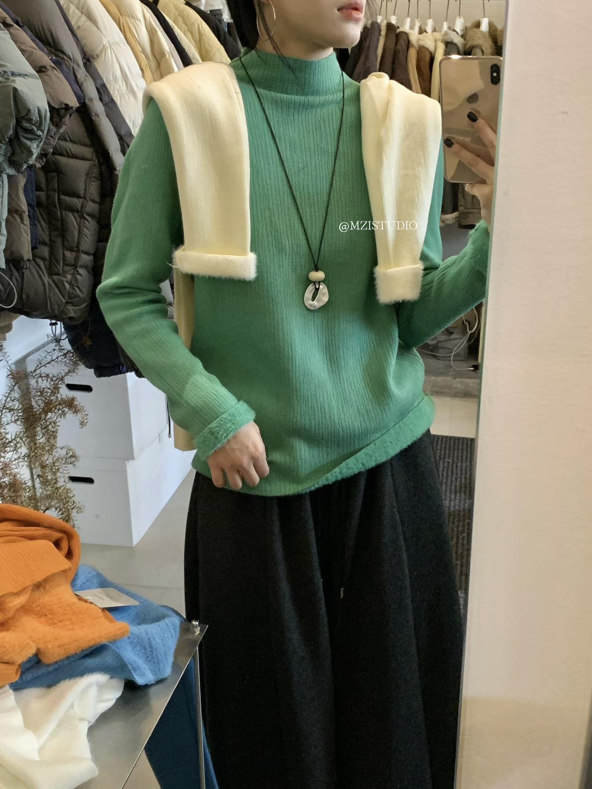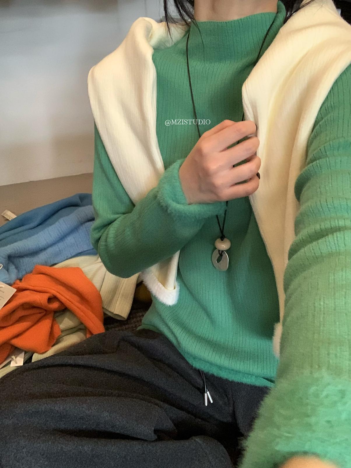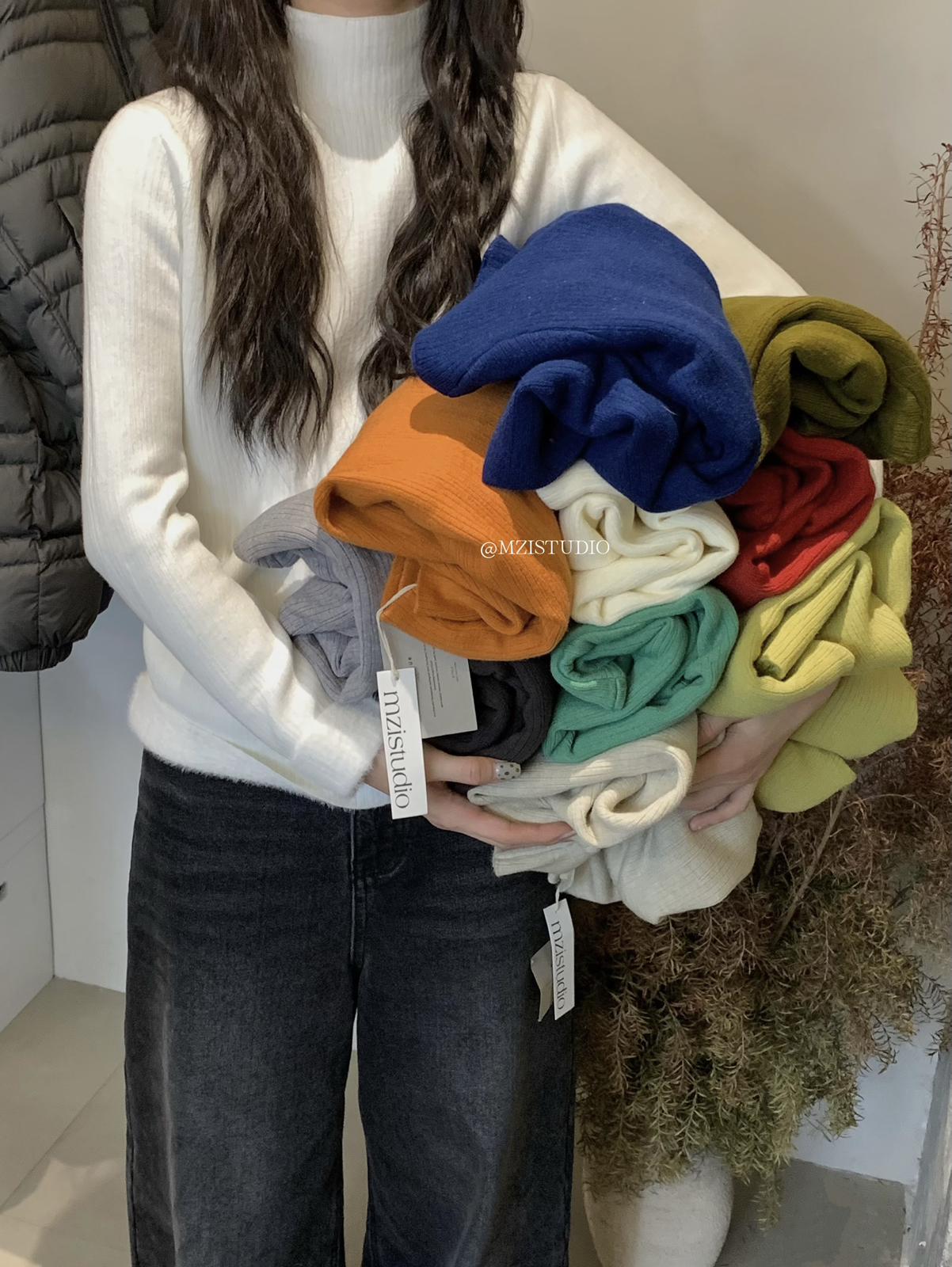 【C7684】水貂絨冬季衣櫥必備單品加絨韓標基礎淨色多巴胺高領針織打底衫