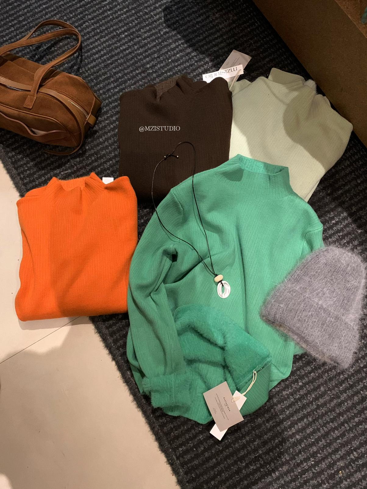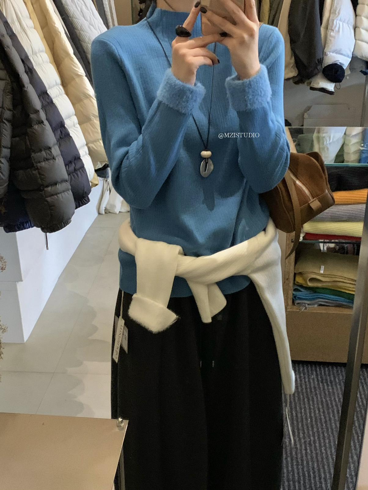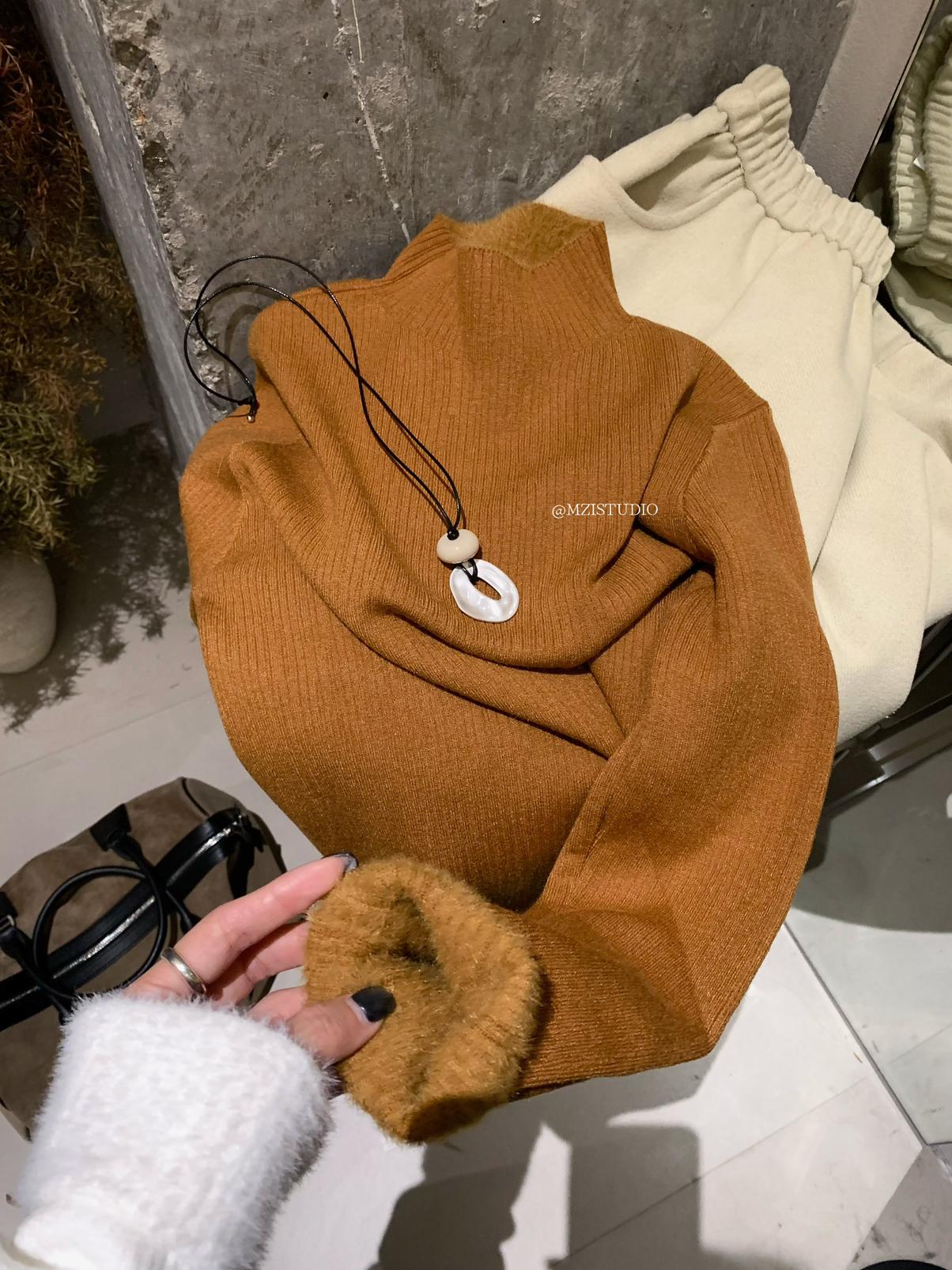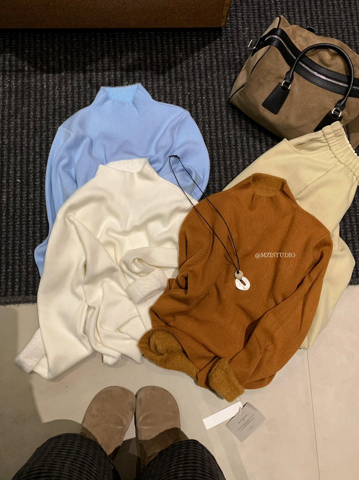 【C7684】水貂絨冬季衣櫥必備單品加絨韓標基礎淨色多巴胺高領針織打底衫